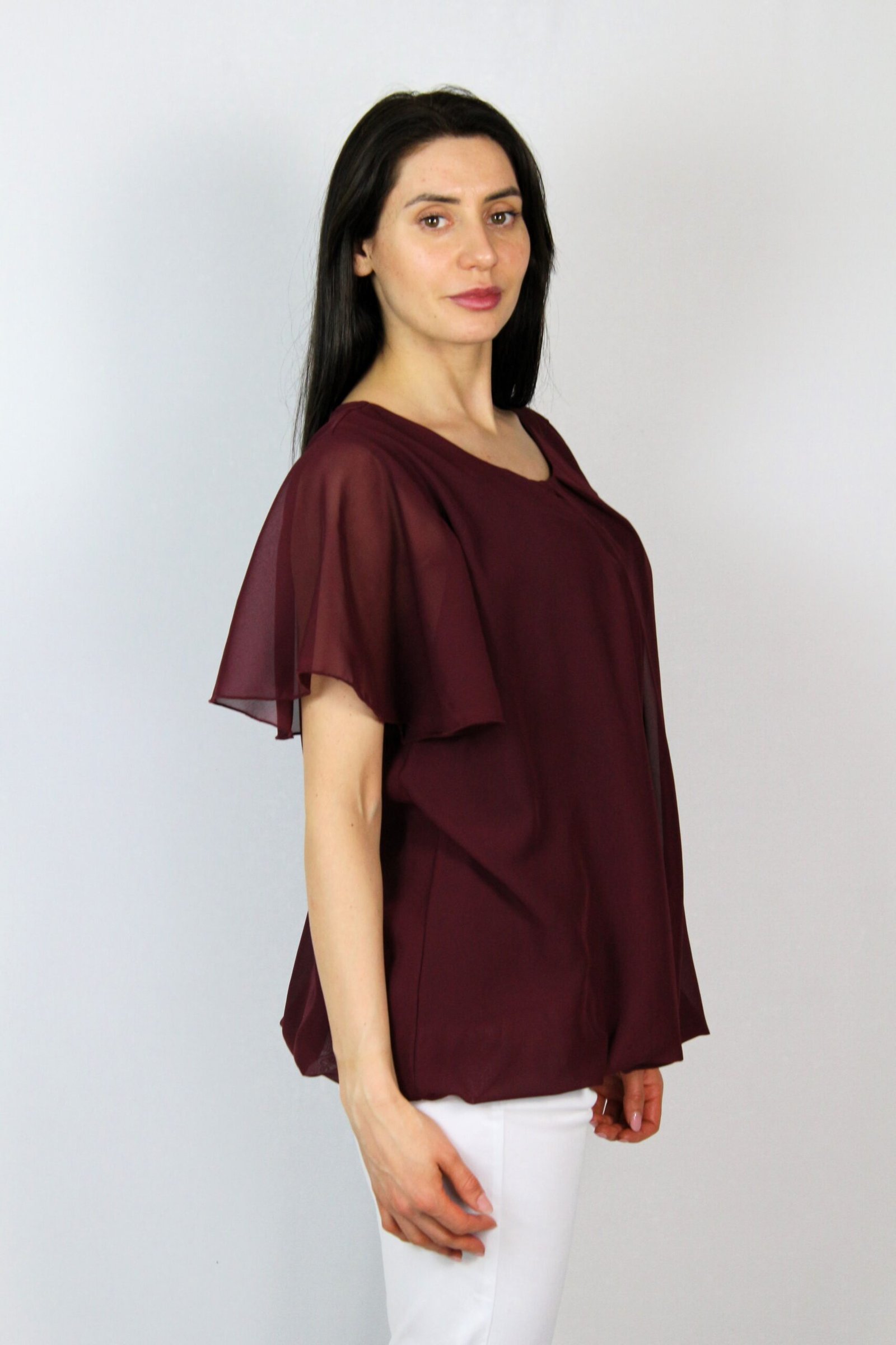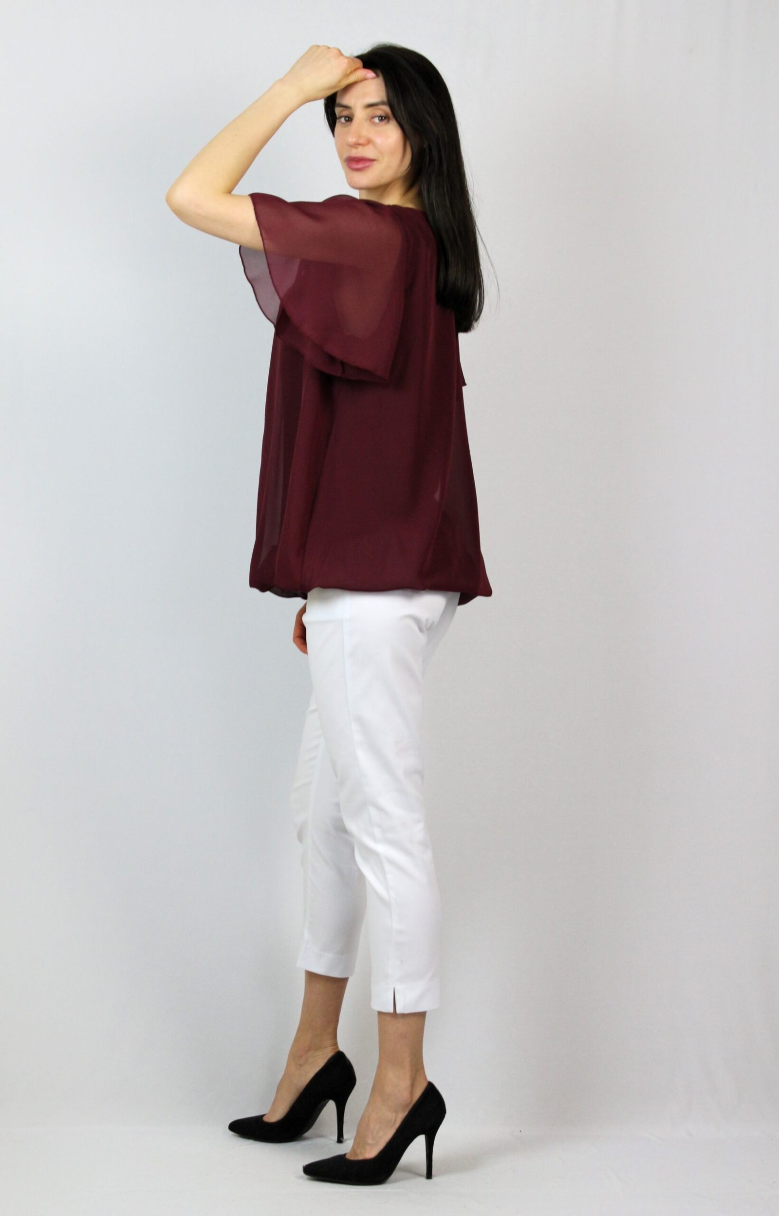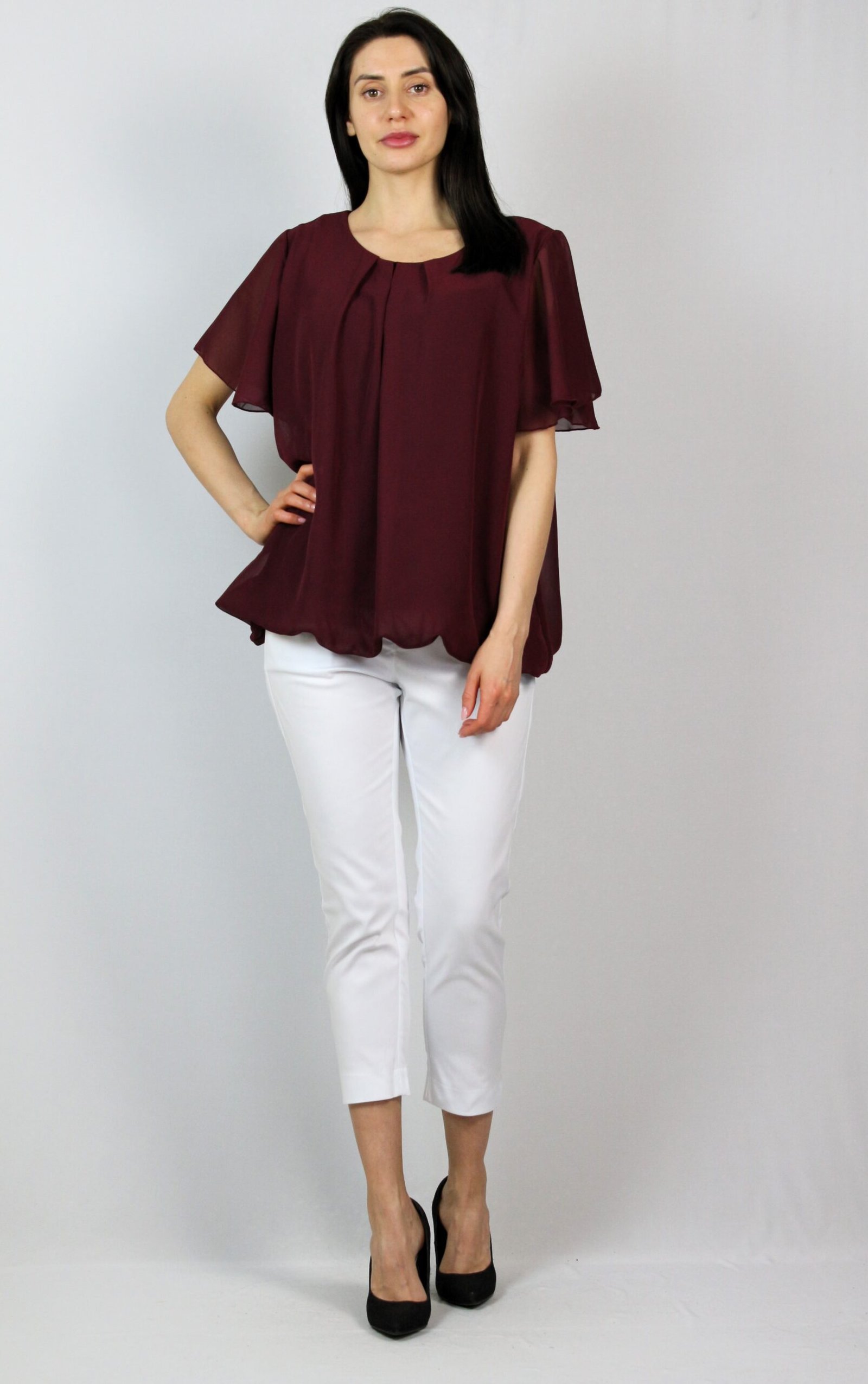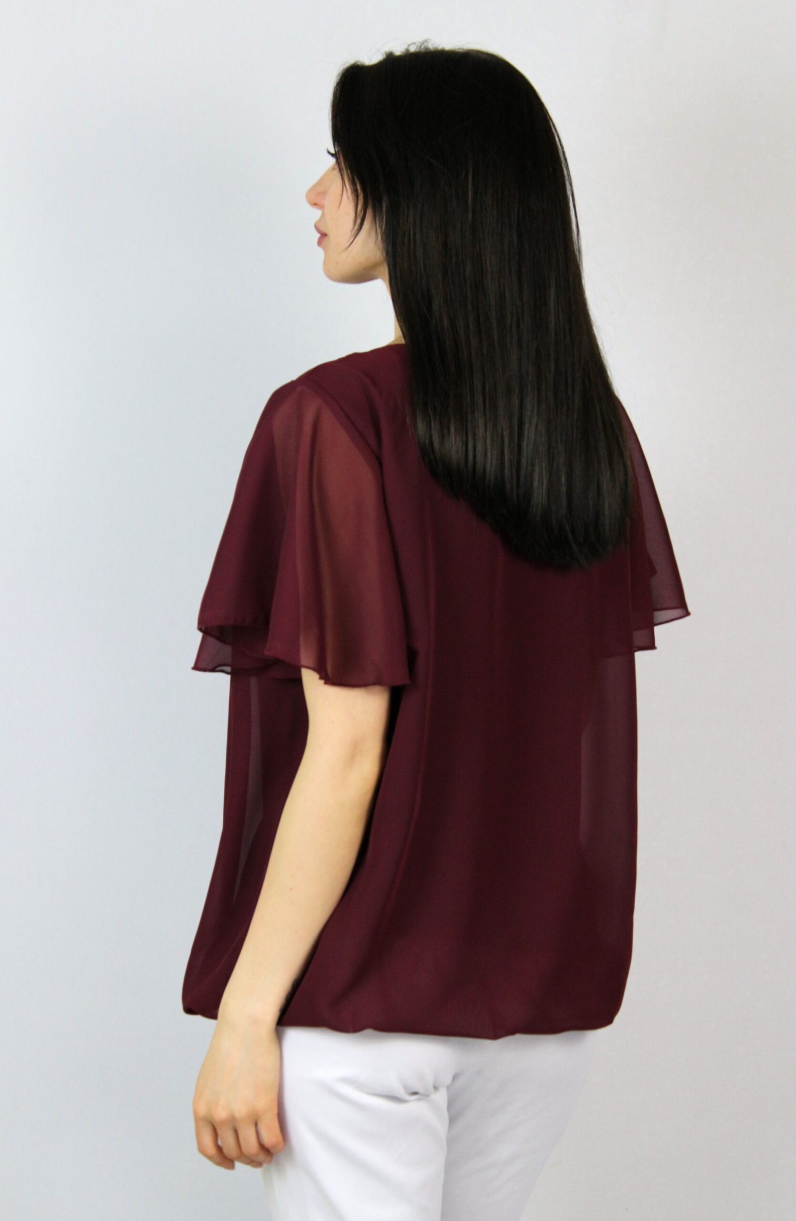 Блуза балон шифон бордо