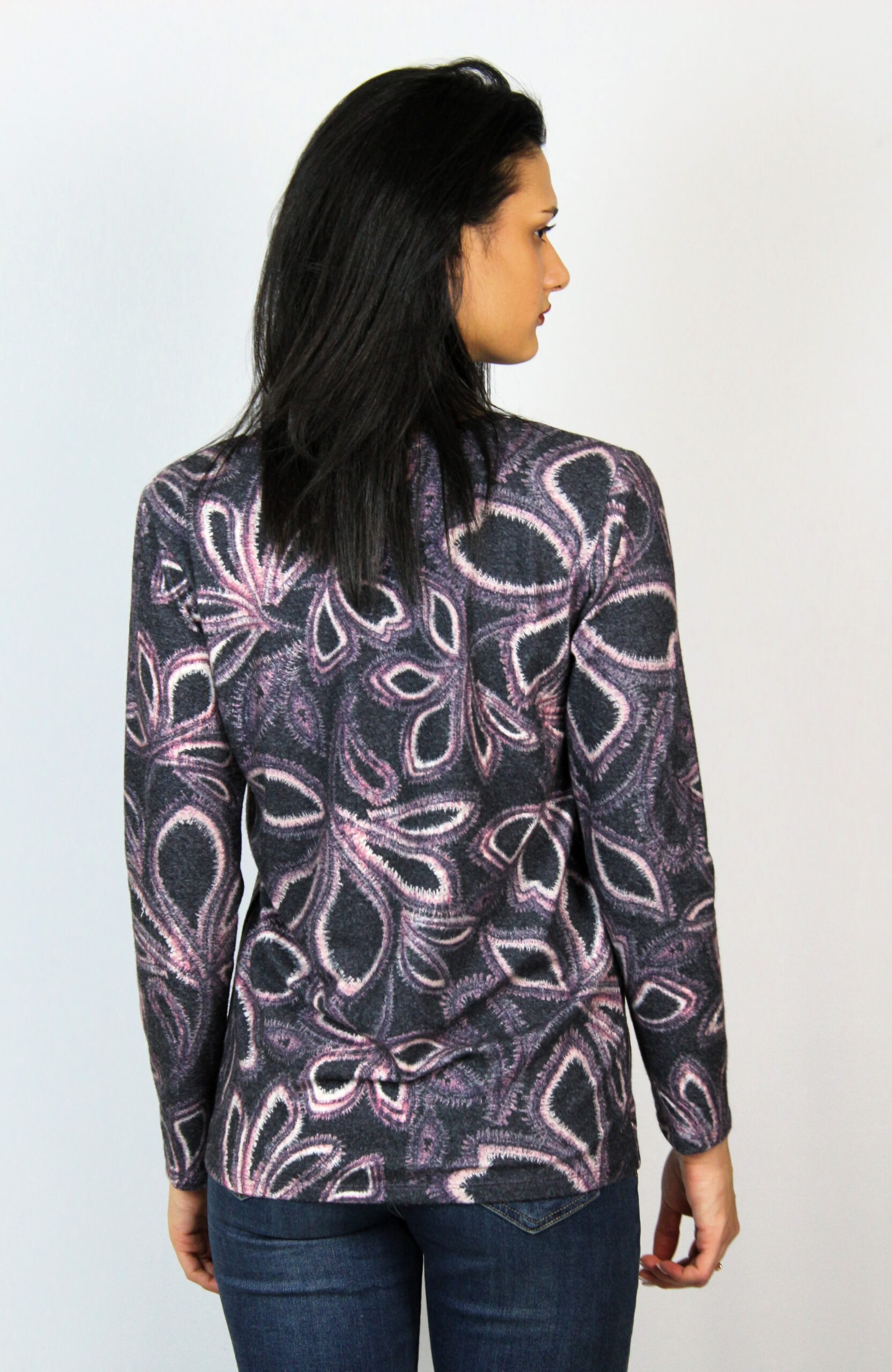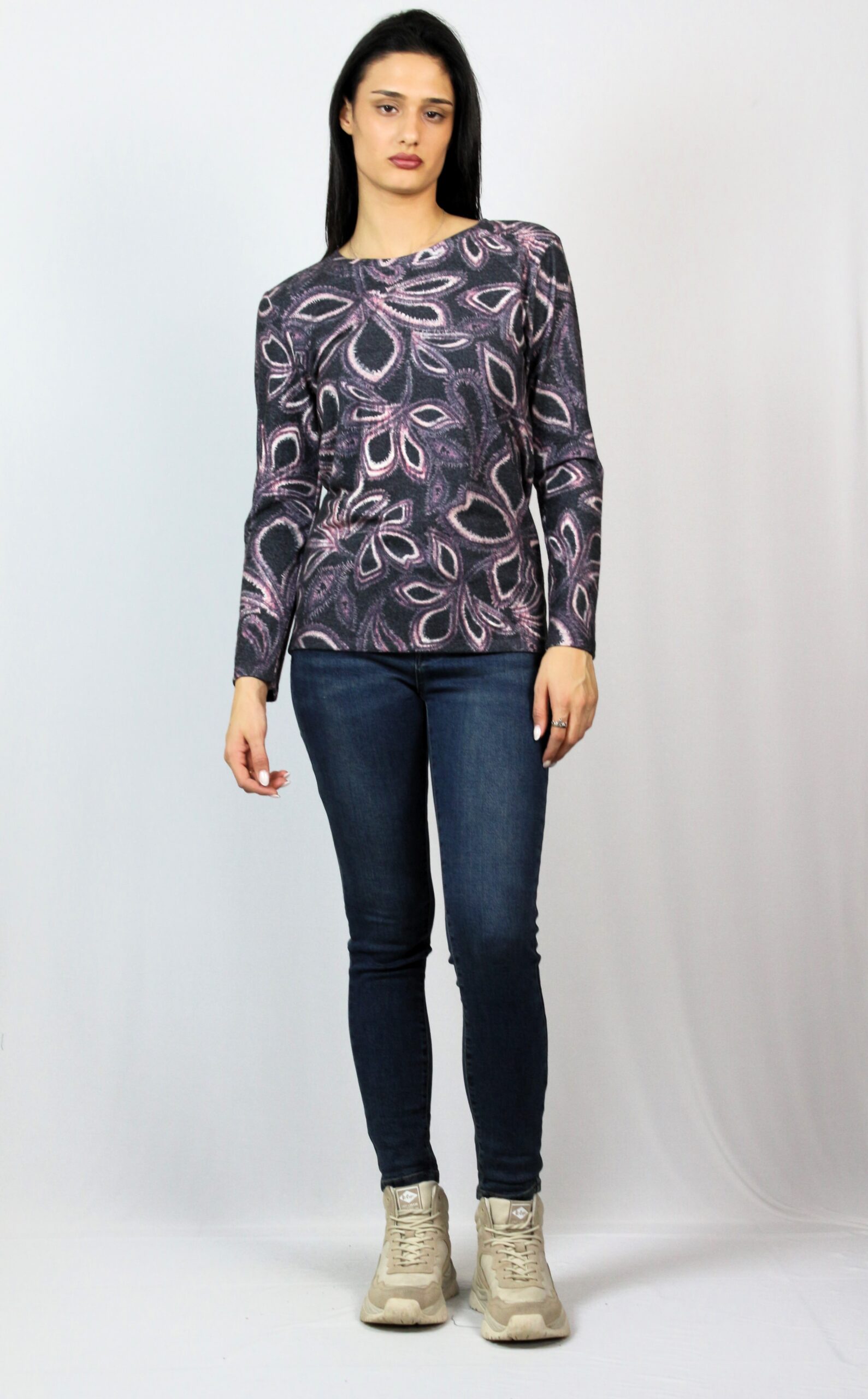 Блуза с дълъг ръкав и обло деколте,изработена от мека и еластична материя ,подходяща за сезона.