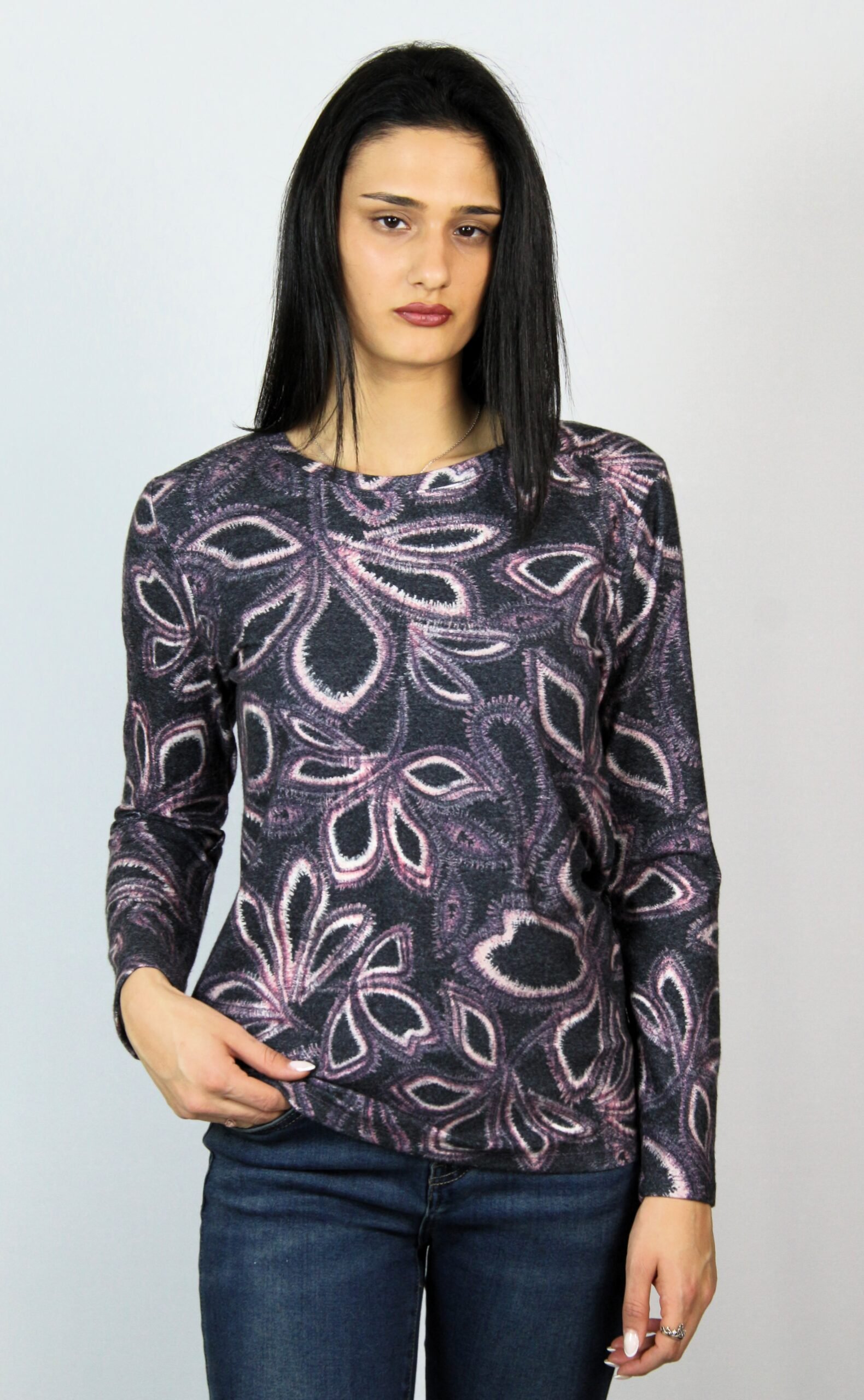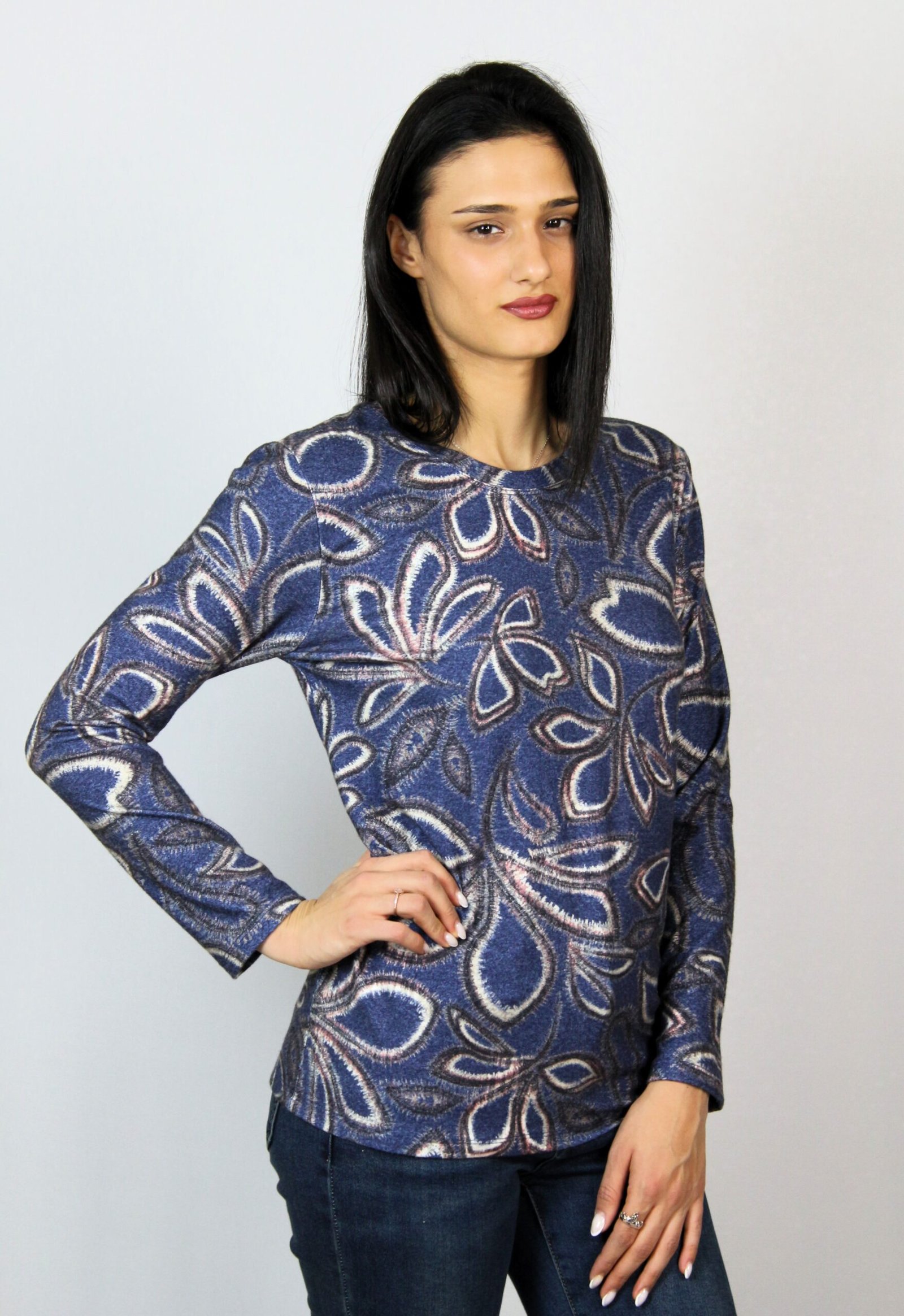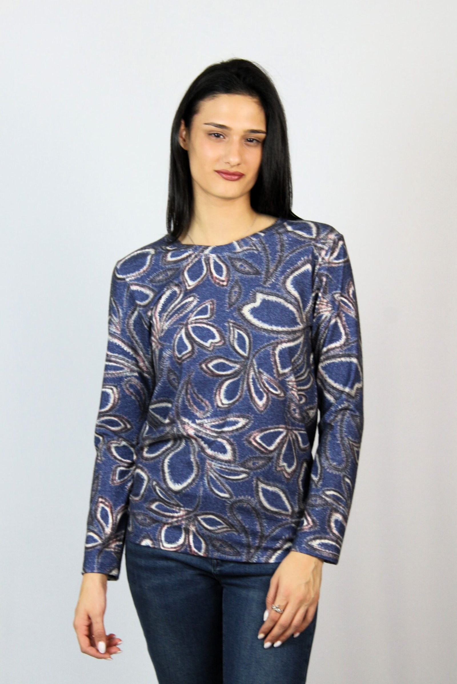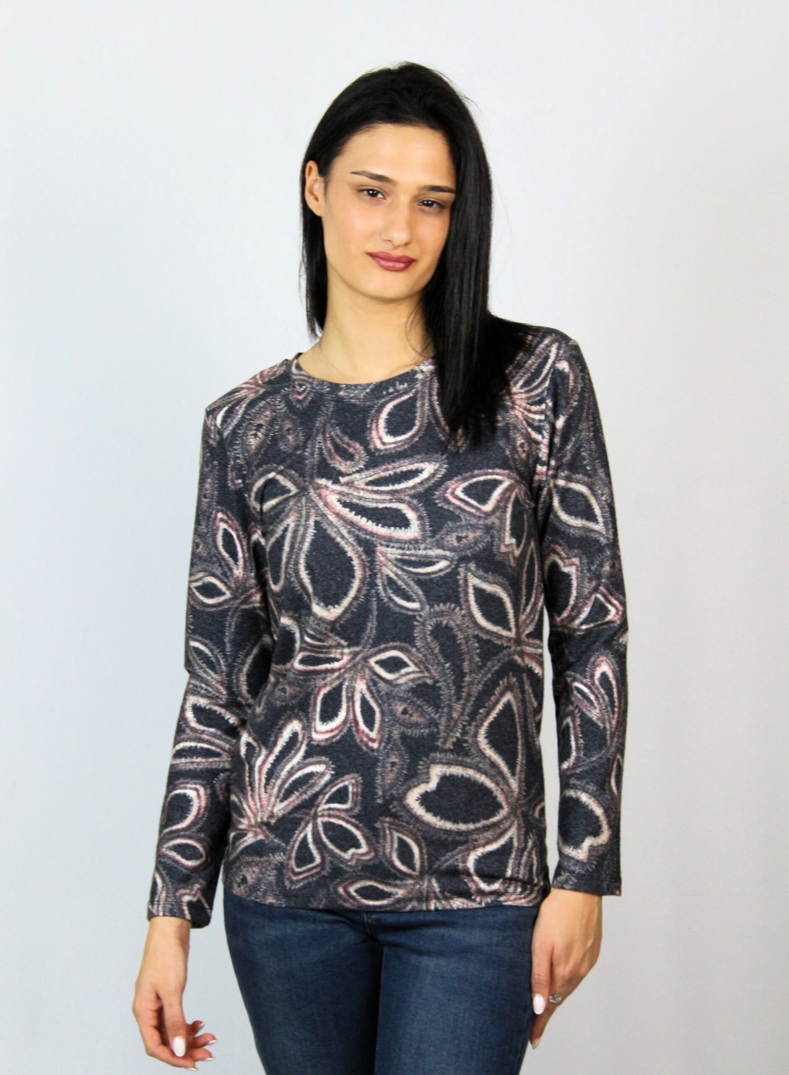 Блуза с дълъг ръкав и обло деколте,изработена от мека и еластична материя ,подходяща за сезона.