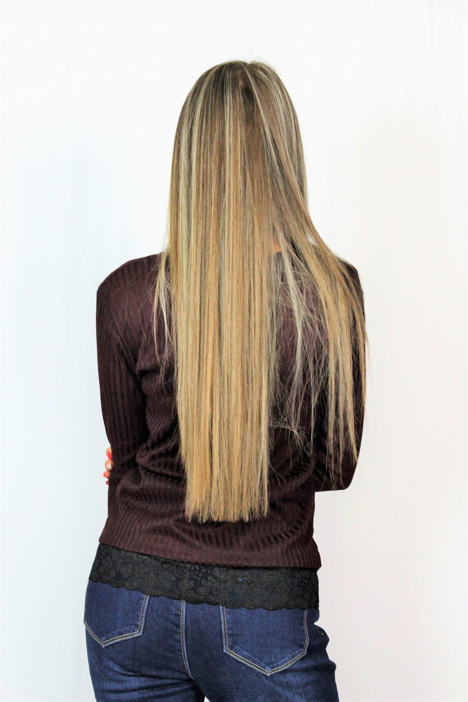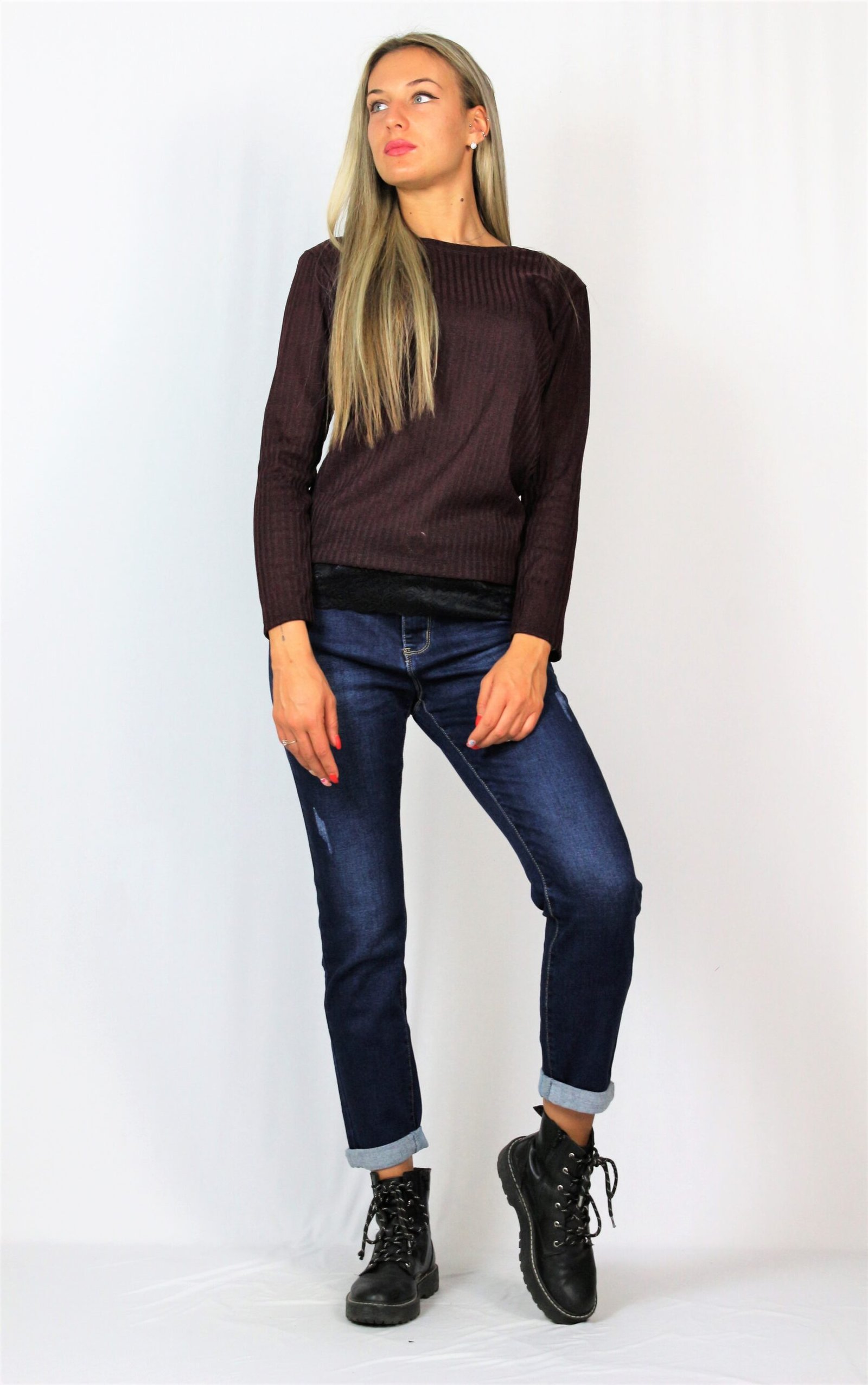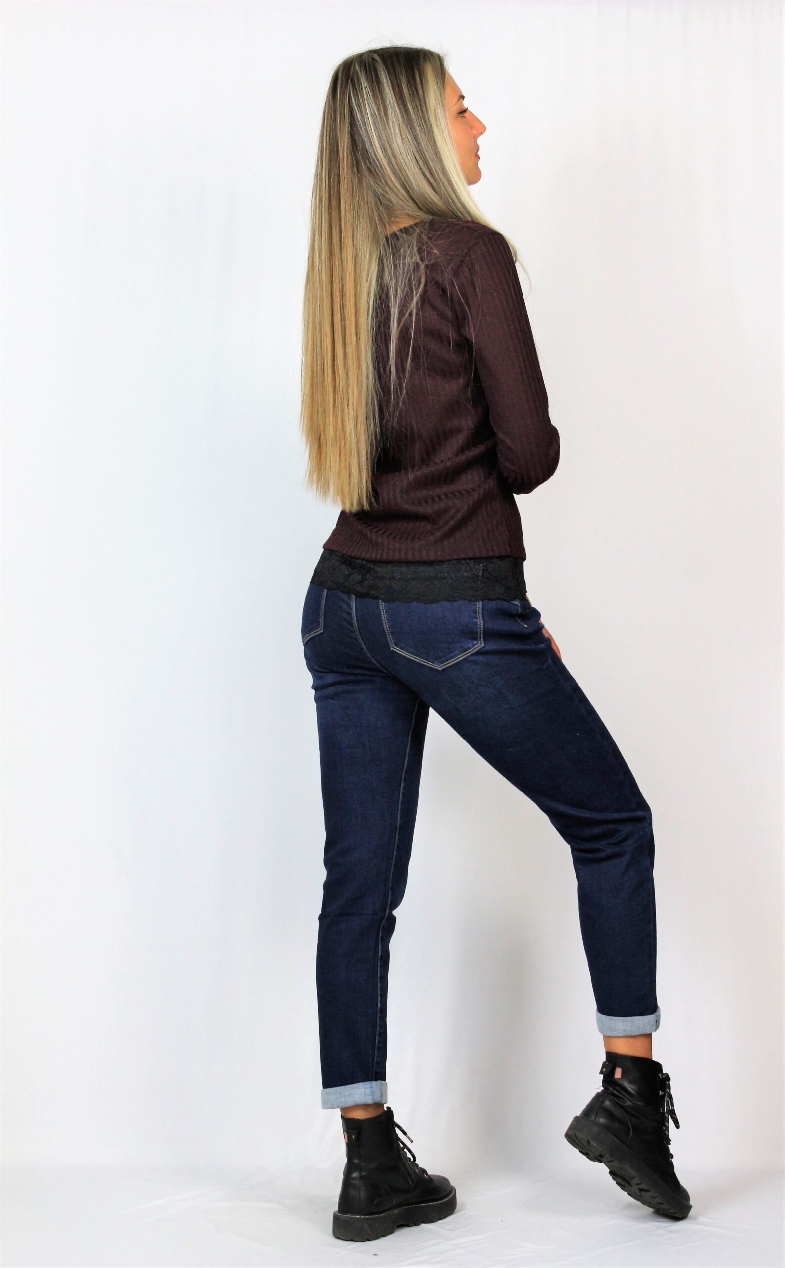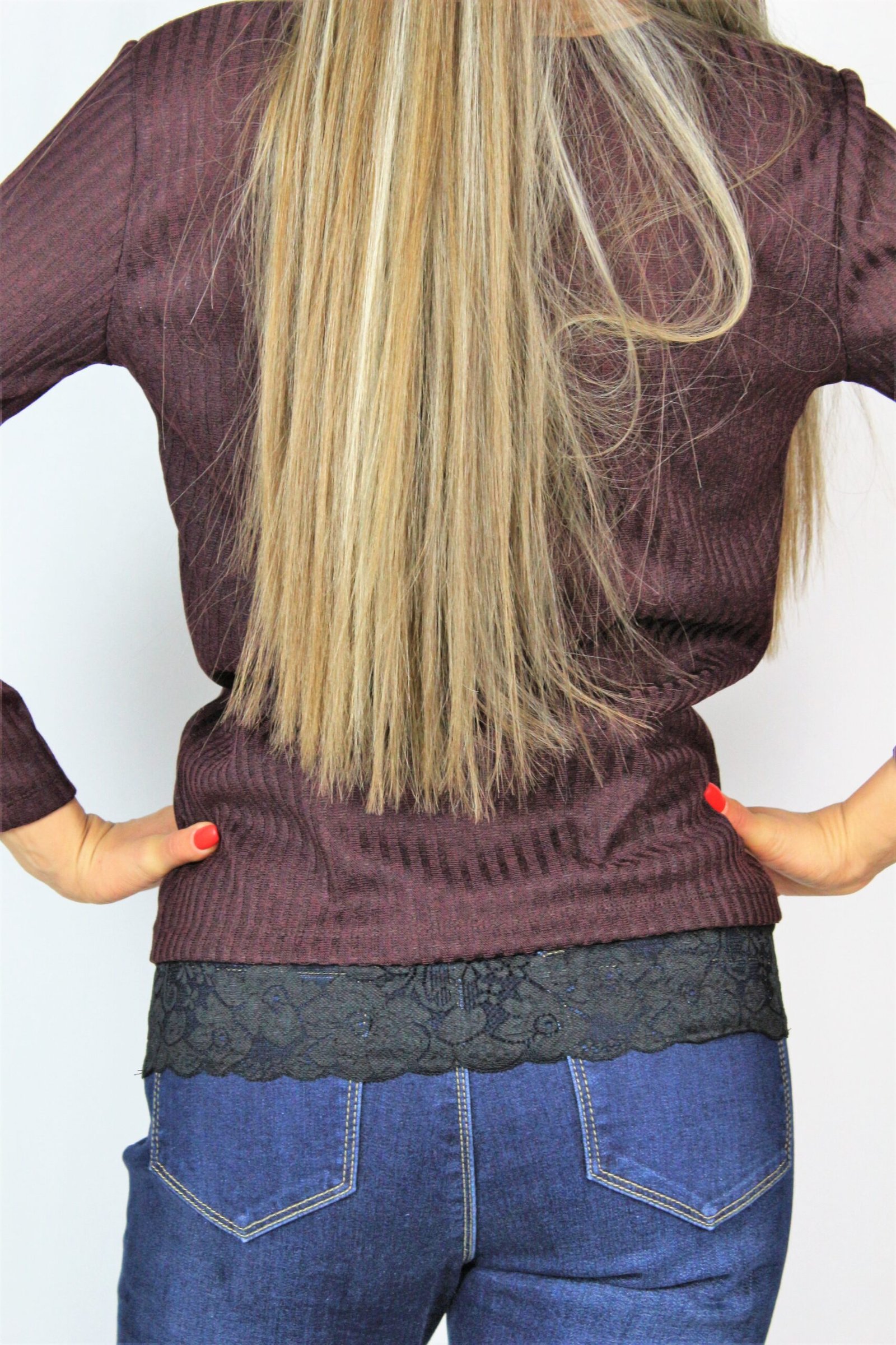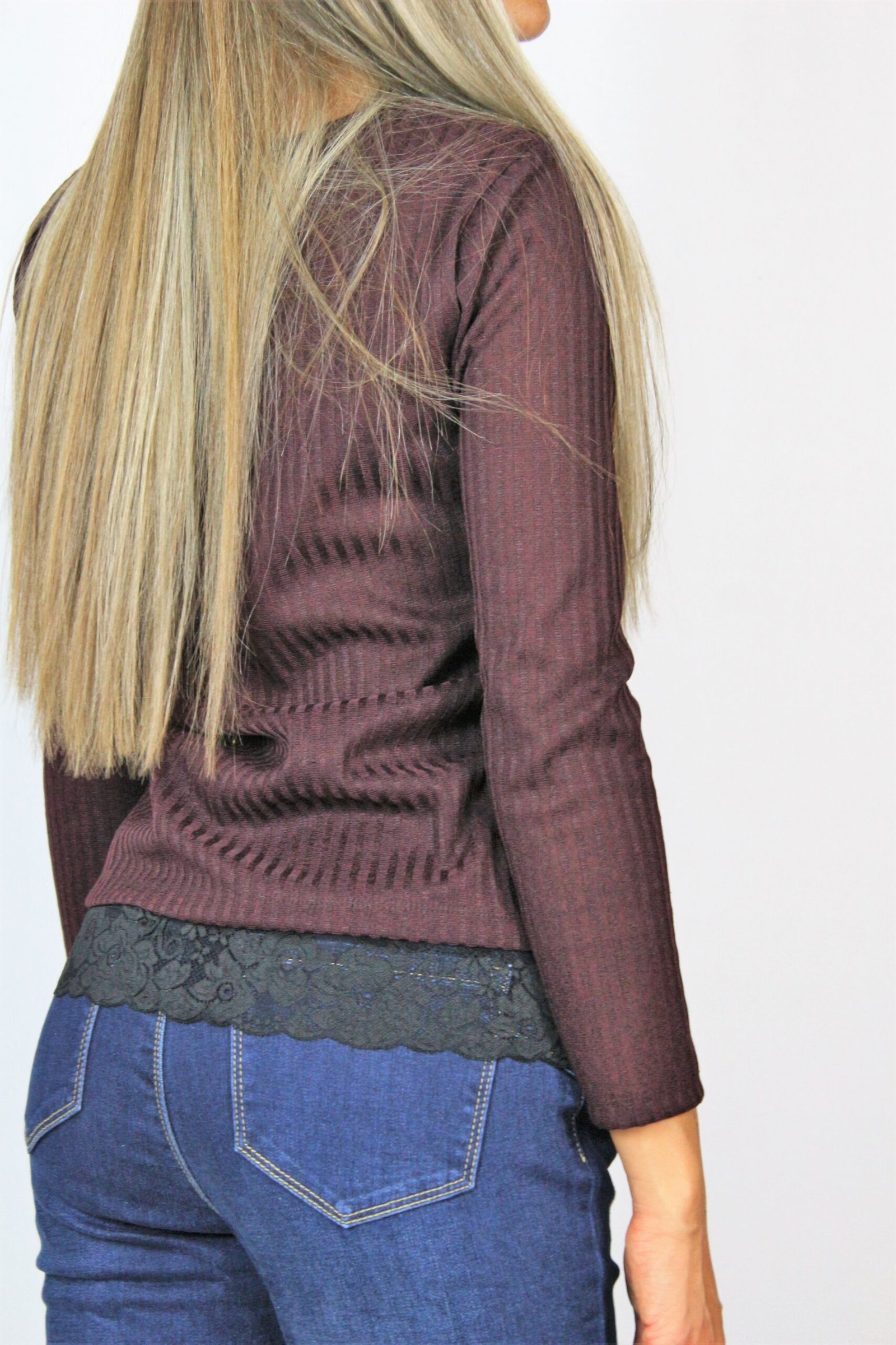Блуза с дълъг ръкав , обло деколте и дантела на подгъва.