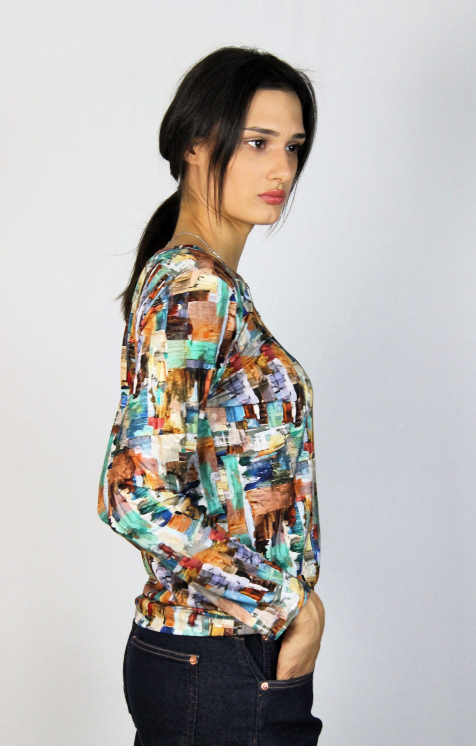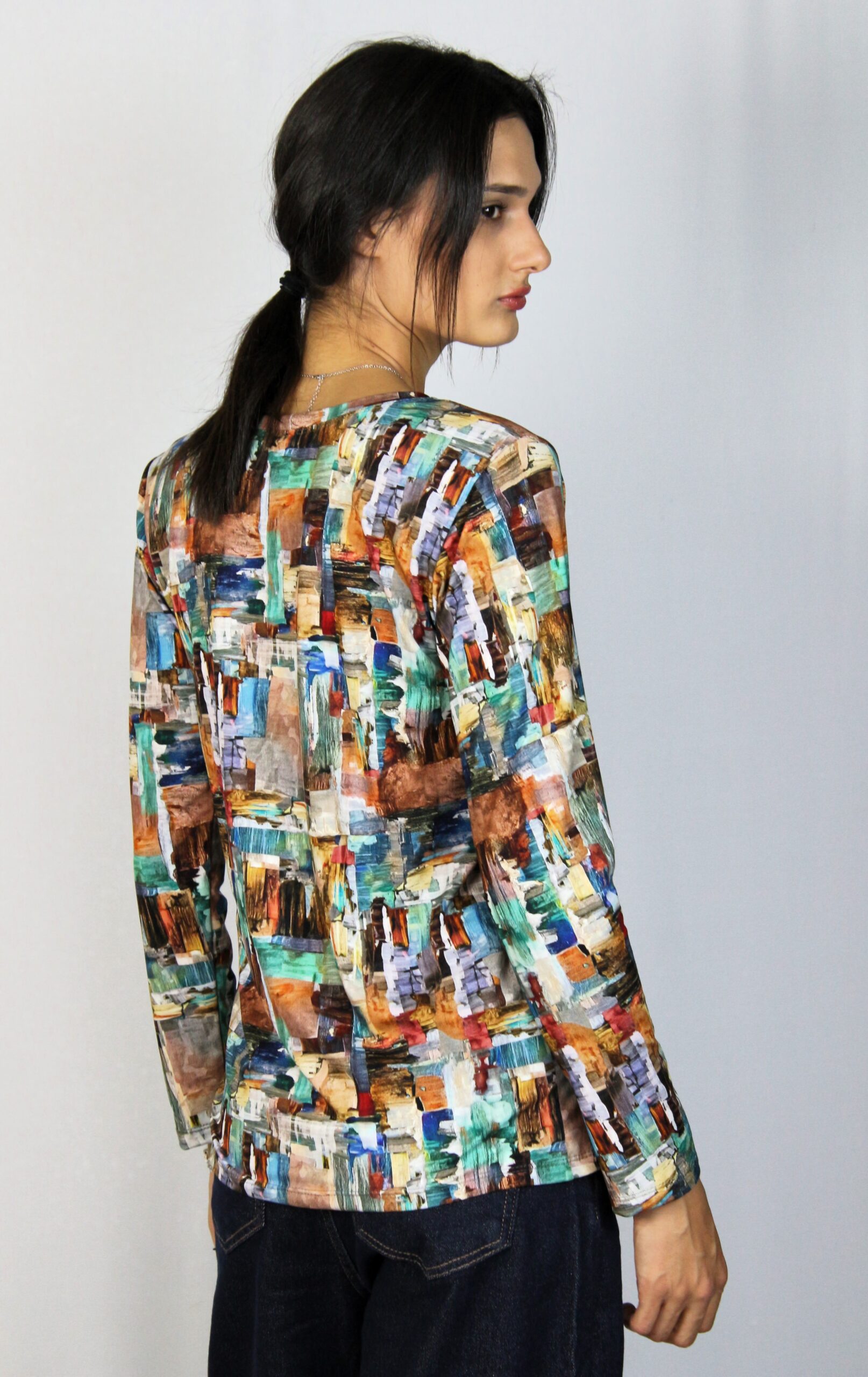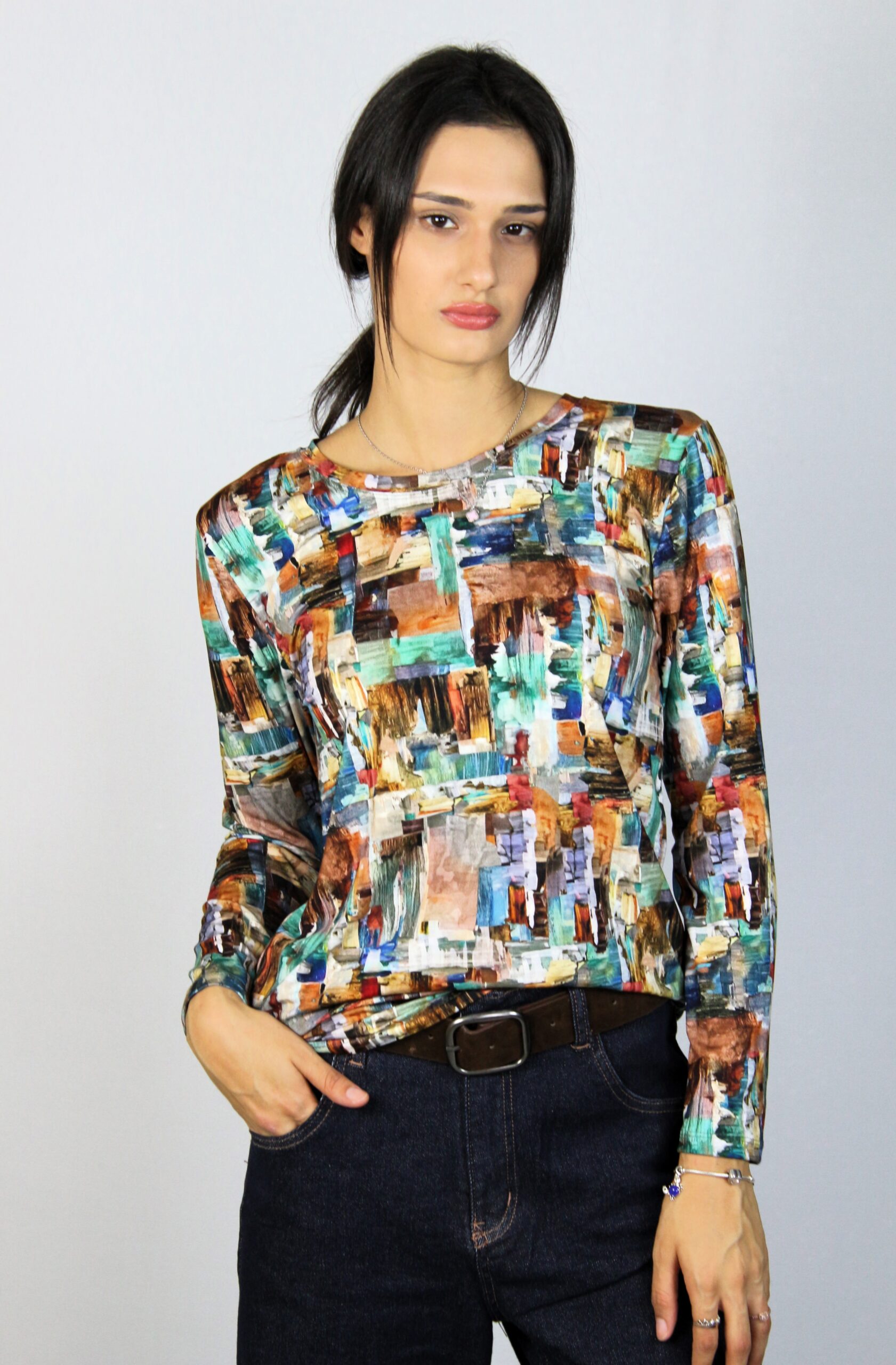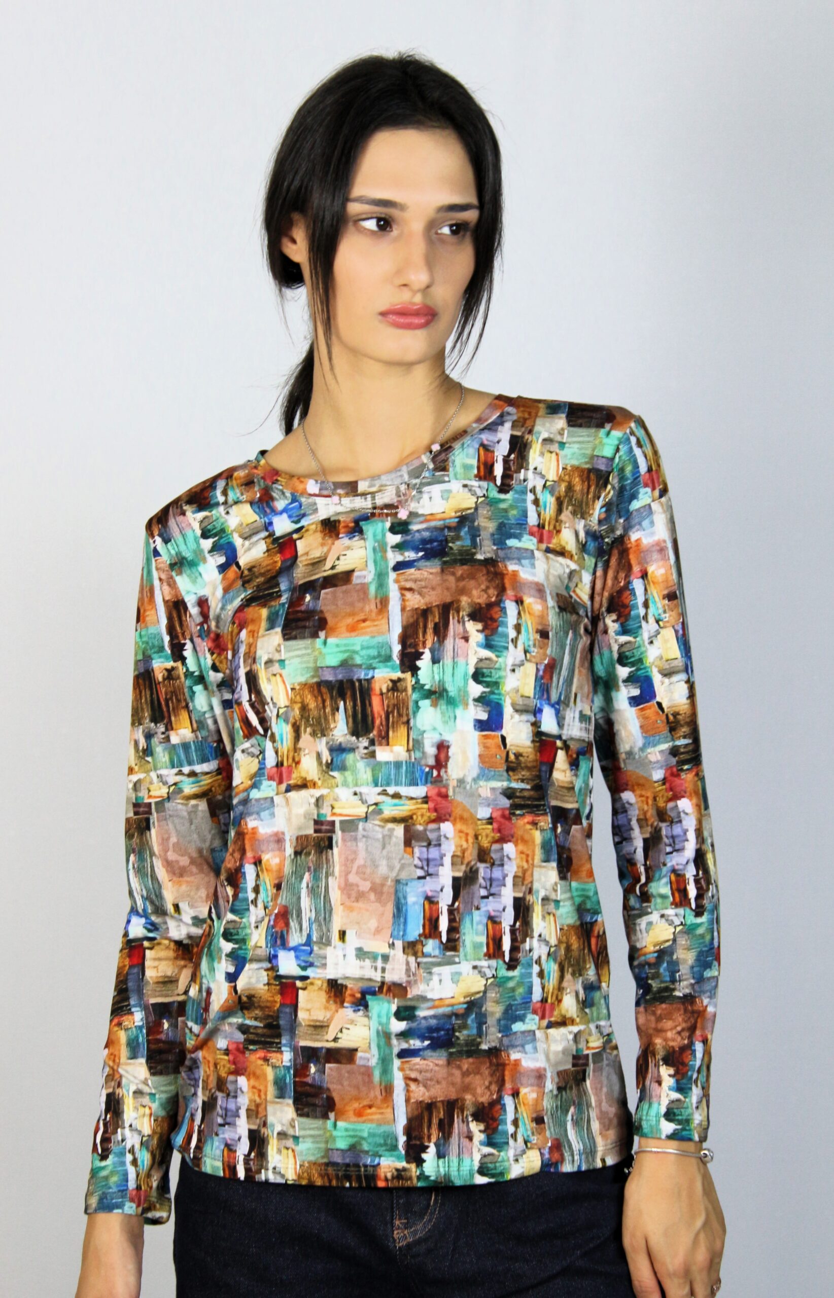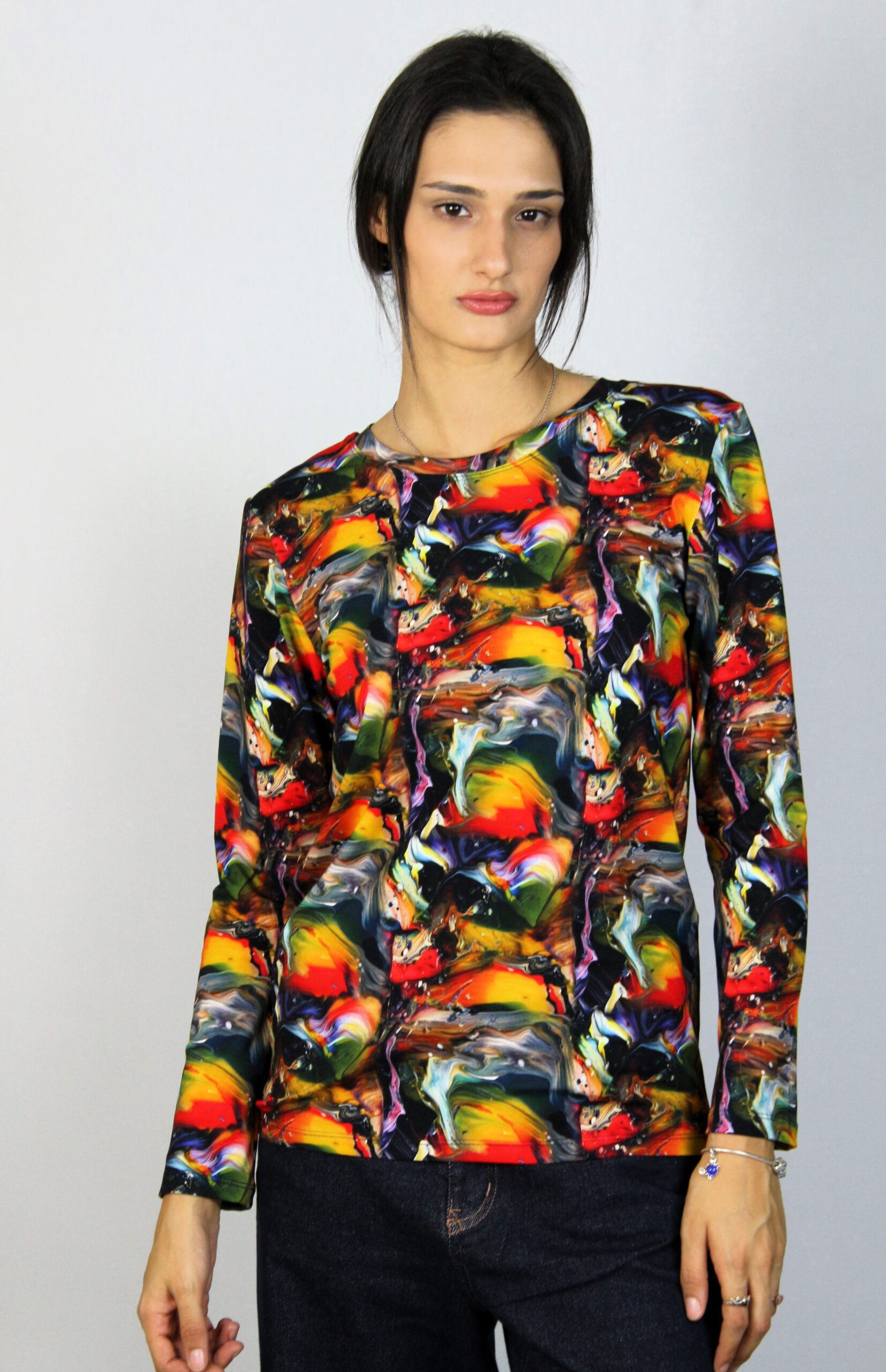 Блуза с дълъг ръкав и обло деколте изработена от висококачествена вискоза с еластан.
