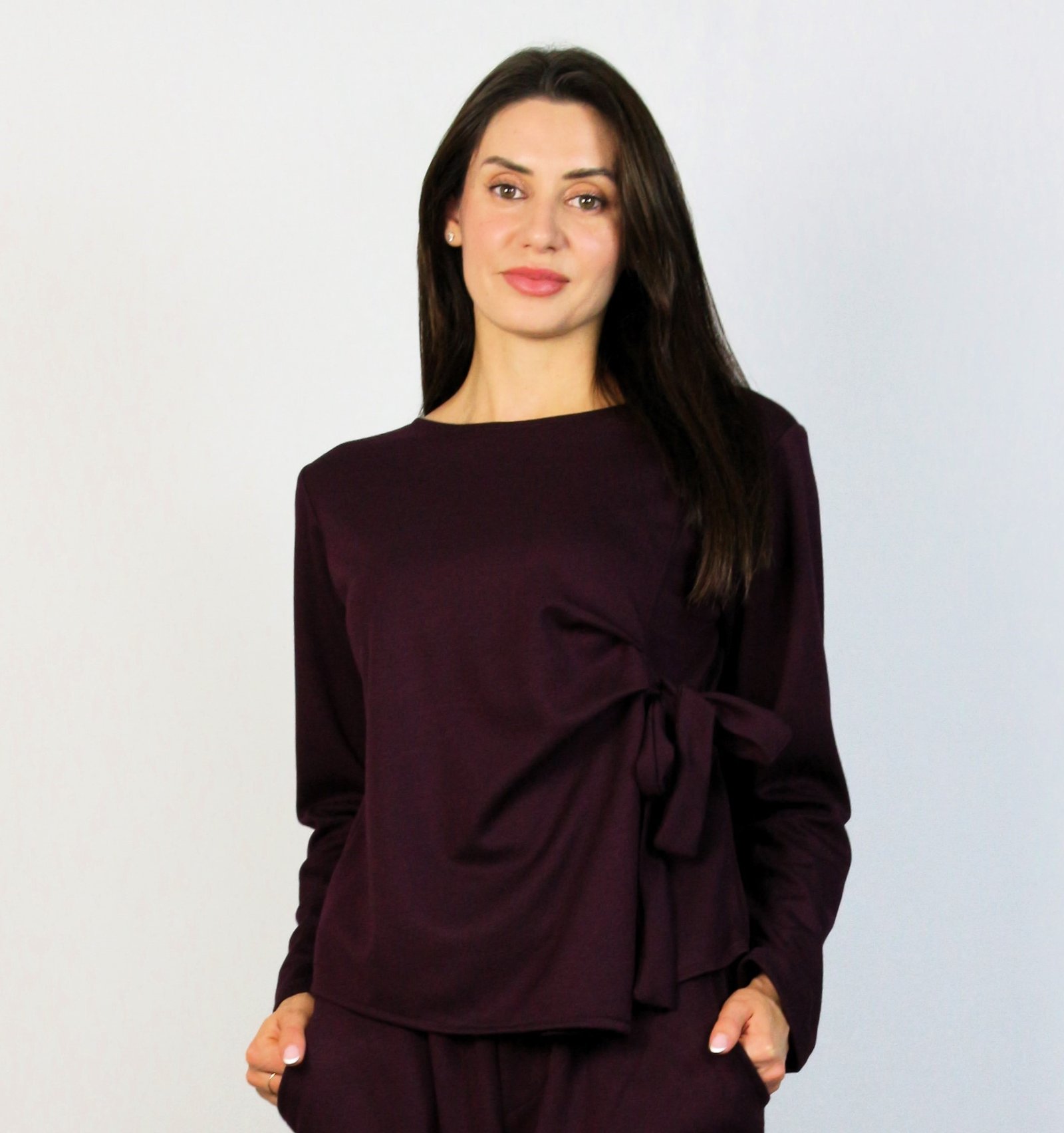 Блуза рипс с дантела бургунд