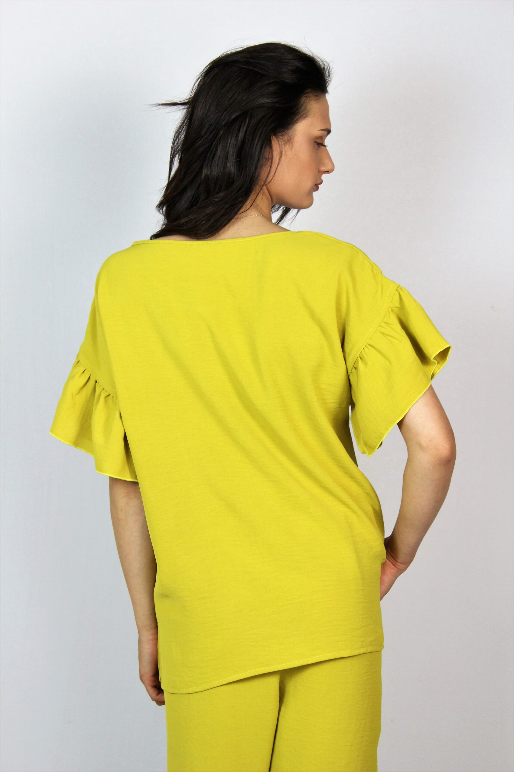 Блуза с къдри жълта