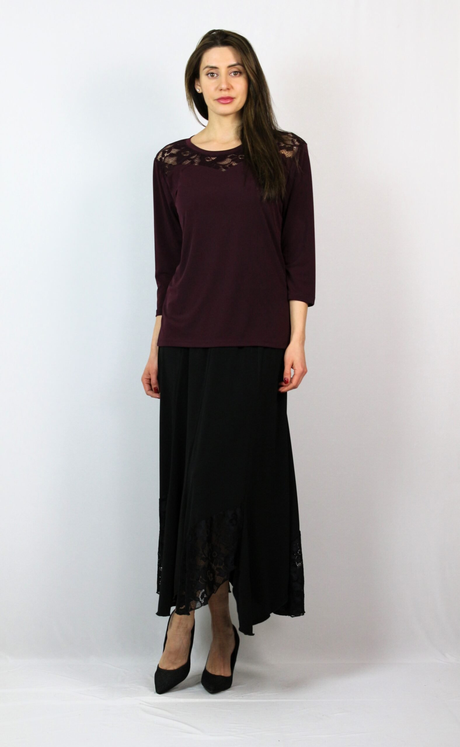 Блуза с седем осми ръкав ,комбинирана с дантелени платки на предницата.
