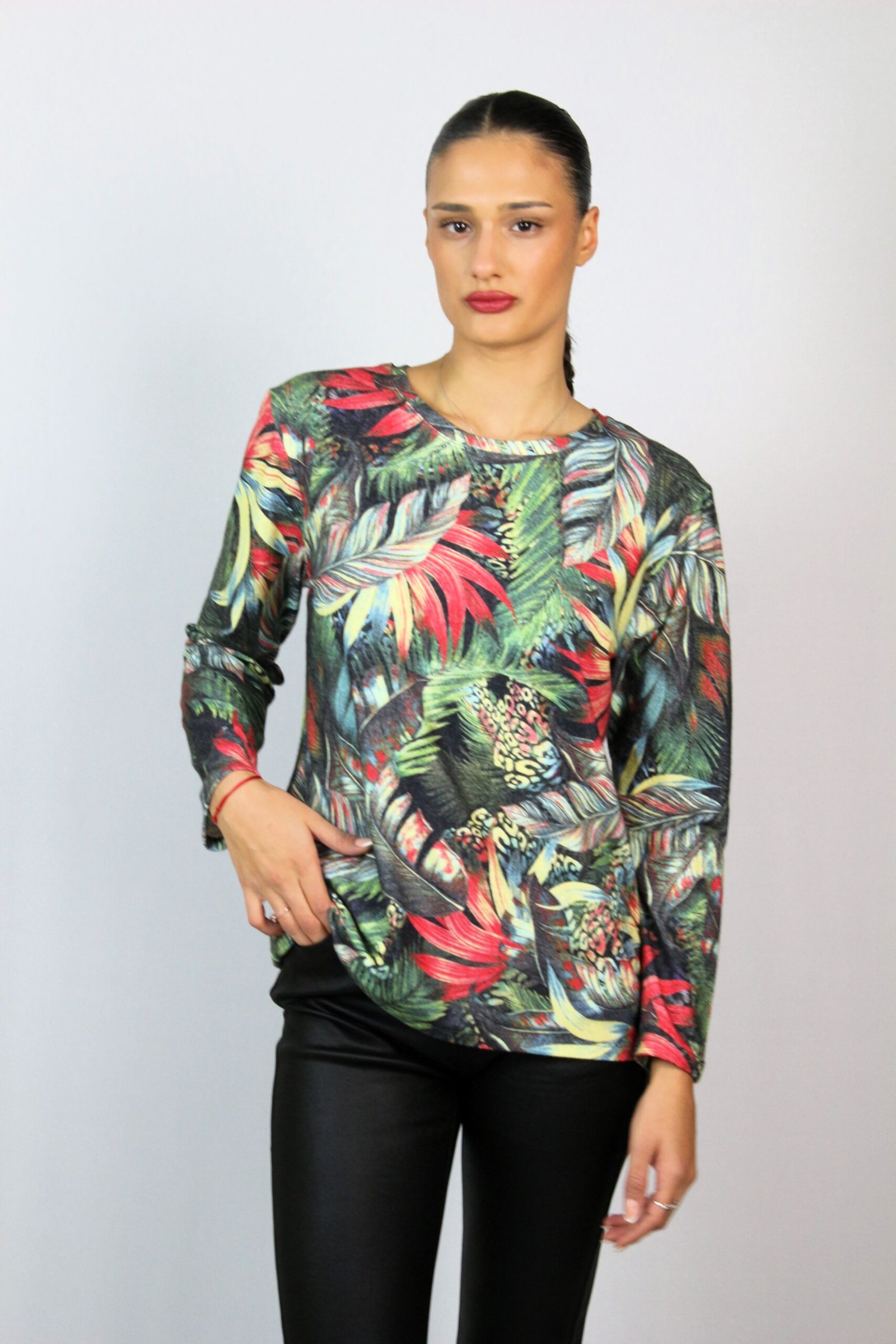 Блуза с дълъг ръкав и обло деколте,изработена от мека и еластична материя