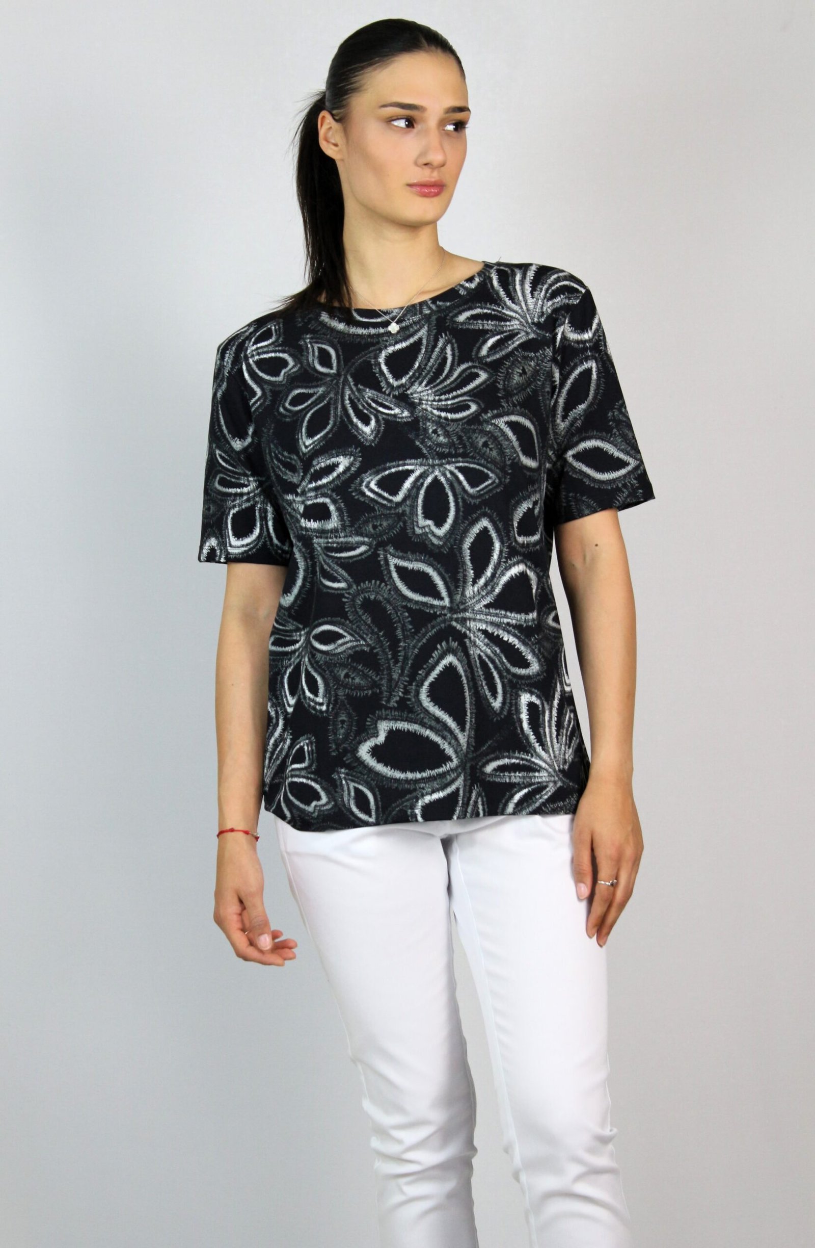 Блуза с къс ръкав и обло деколте изработена от висококачествена вискоза с еластан.