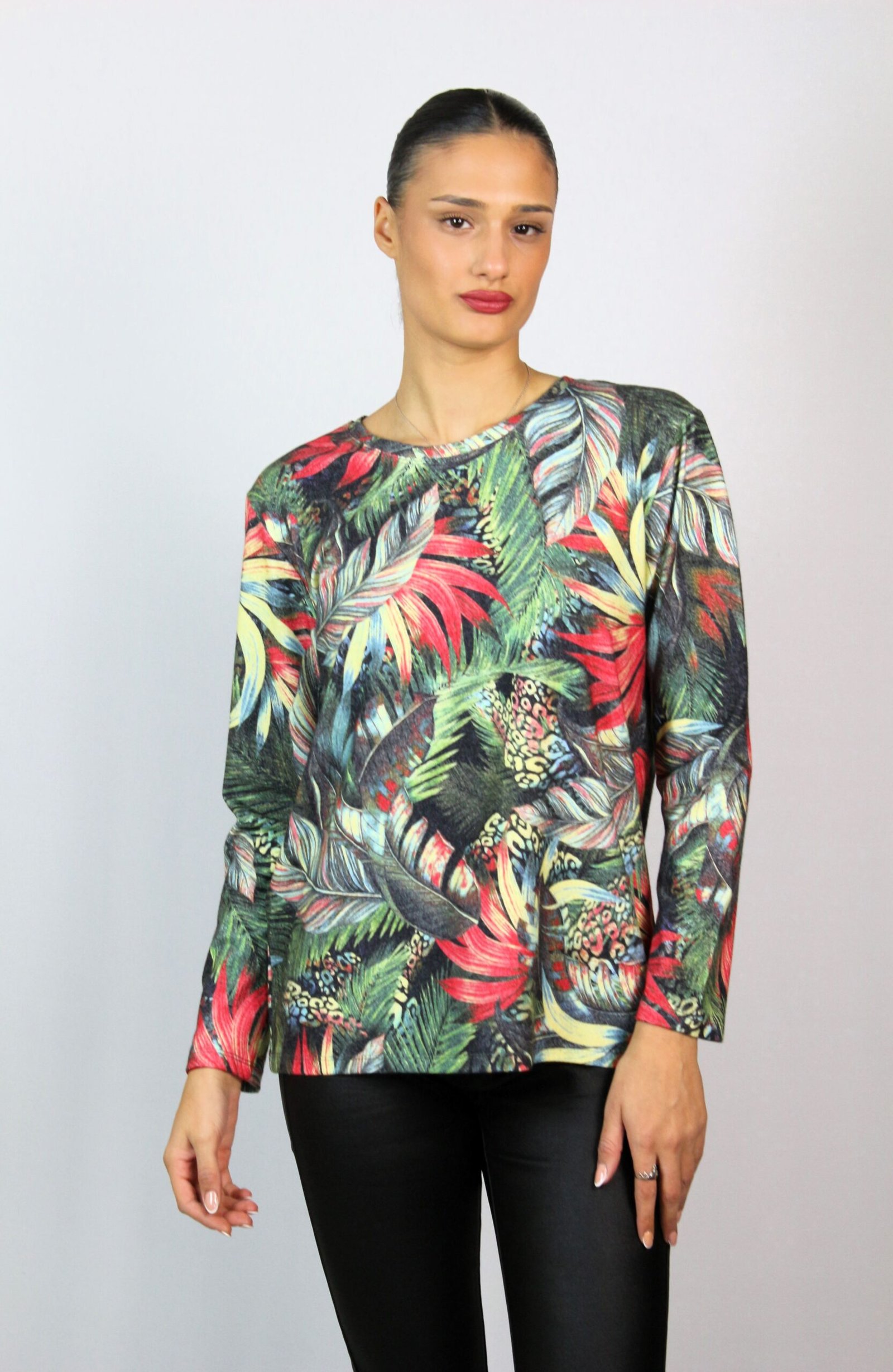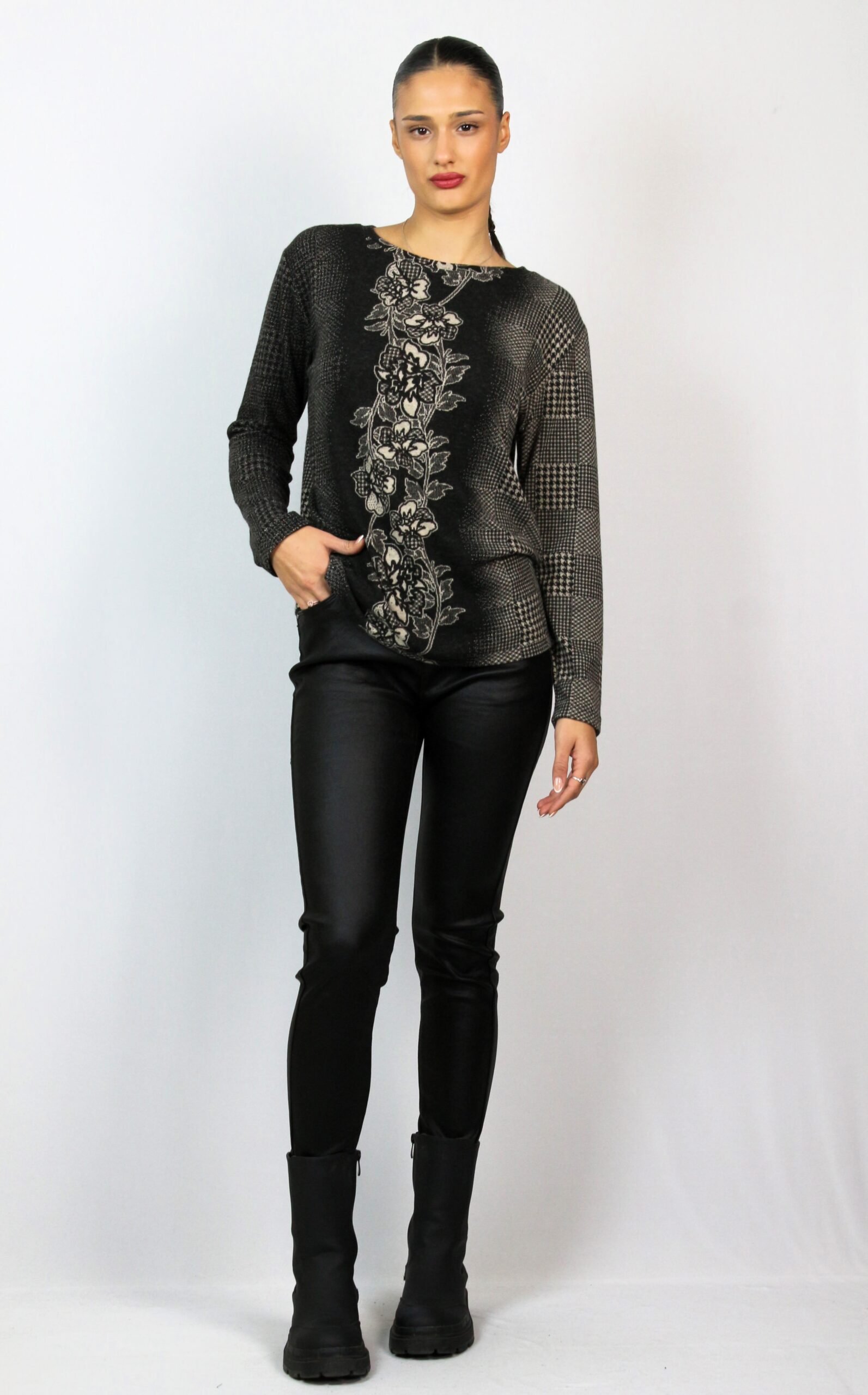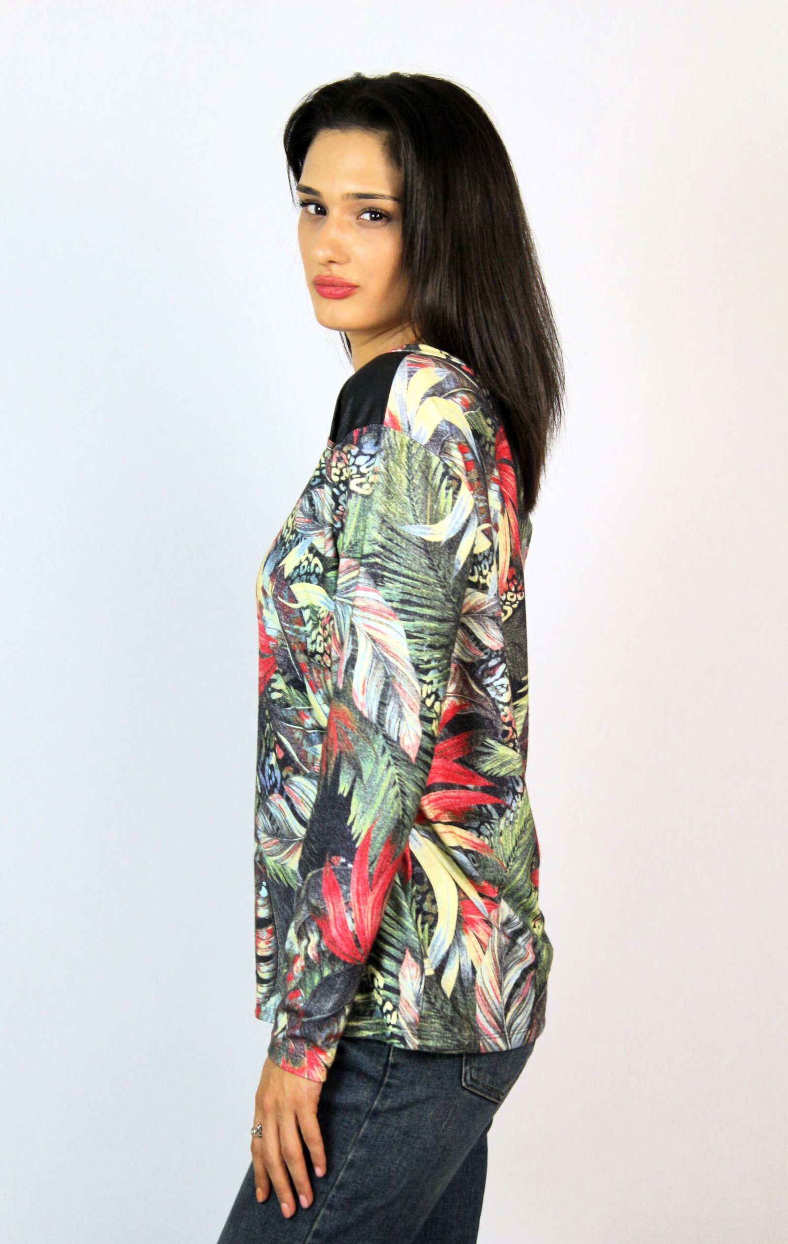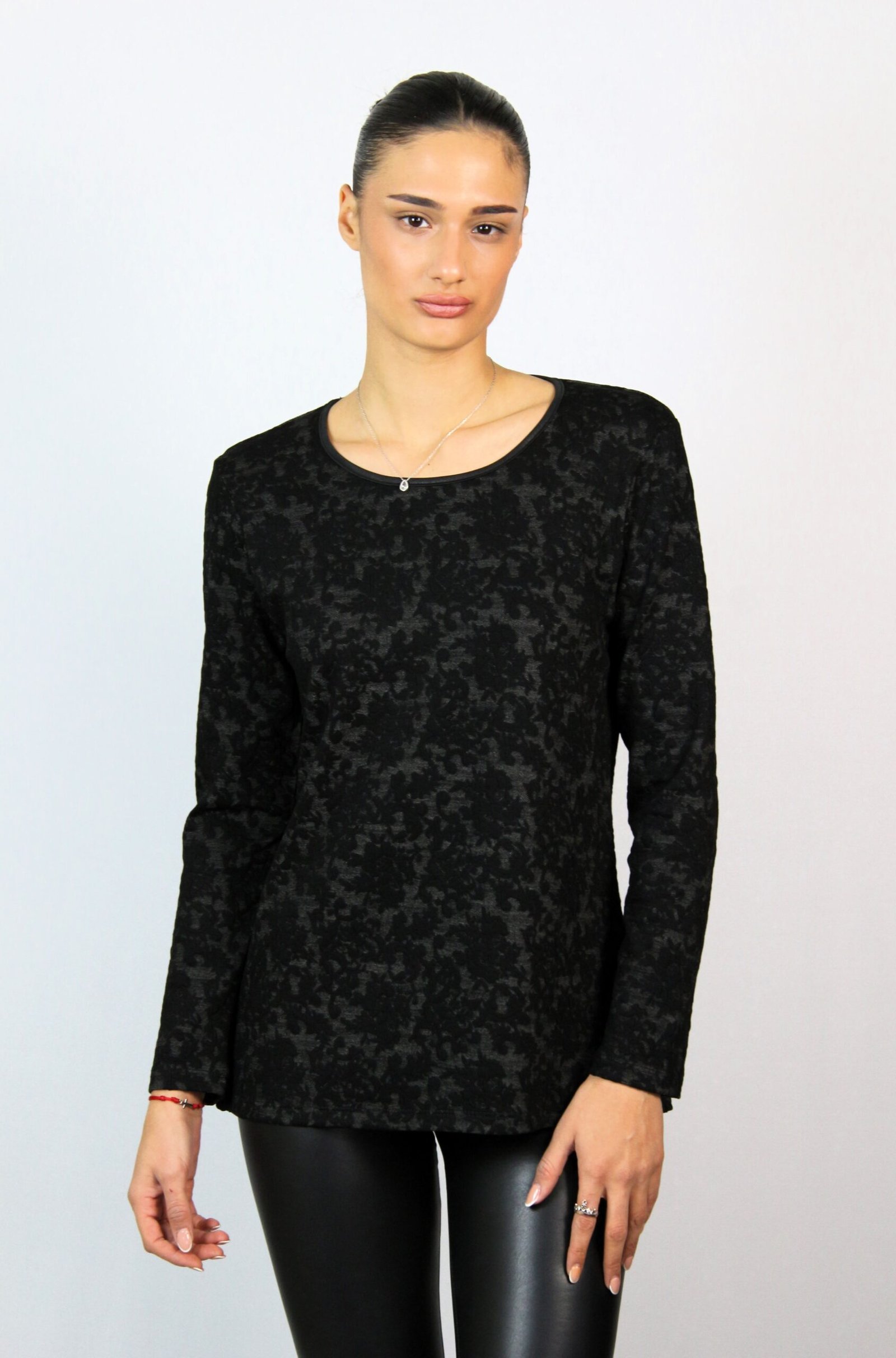 Блуза с дълъг ръкав и обло деколте,изработена от мека и еластична материя ,подходяща за сезона.