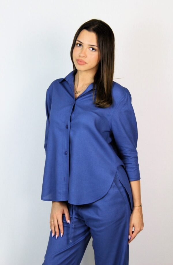 Риза лен синя