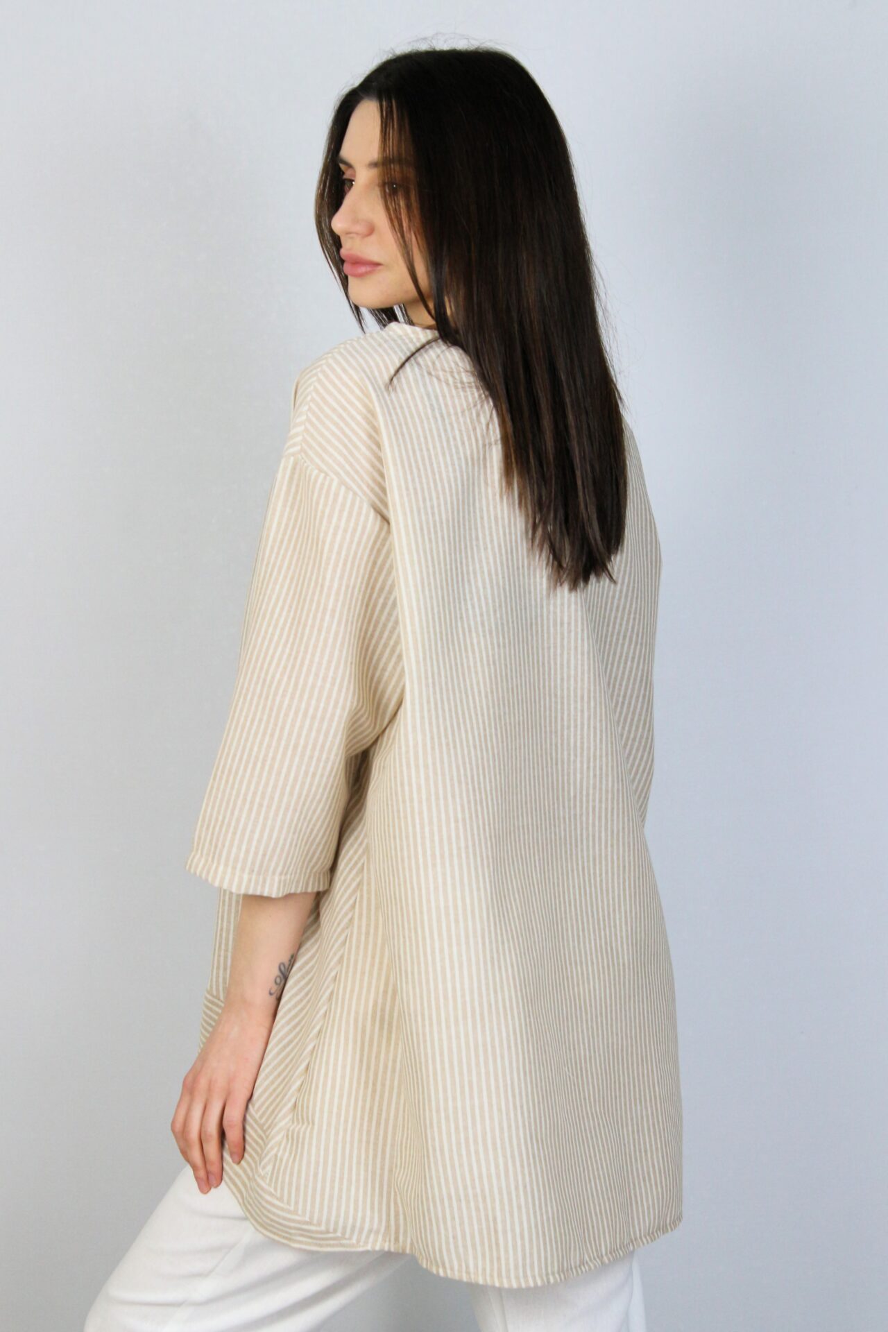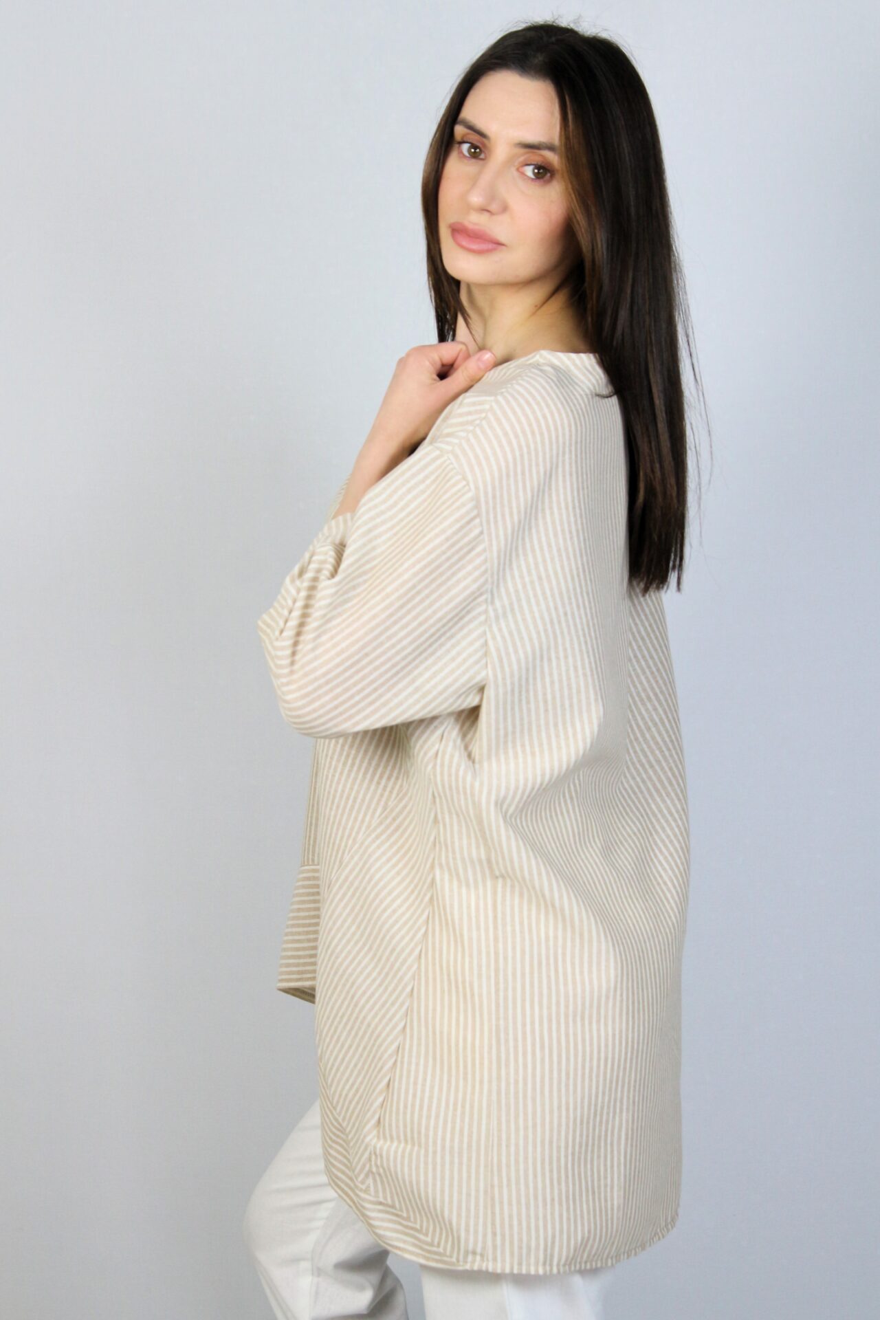 Асиметрична туника лен бежово райе