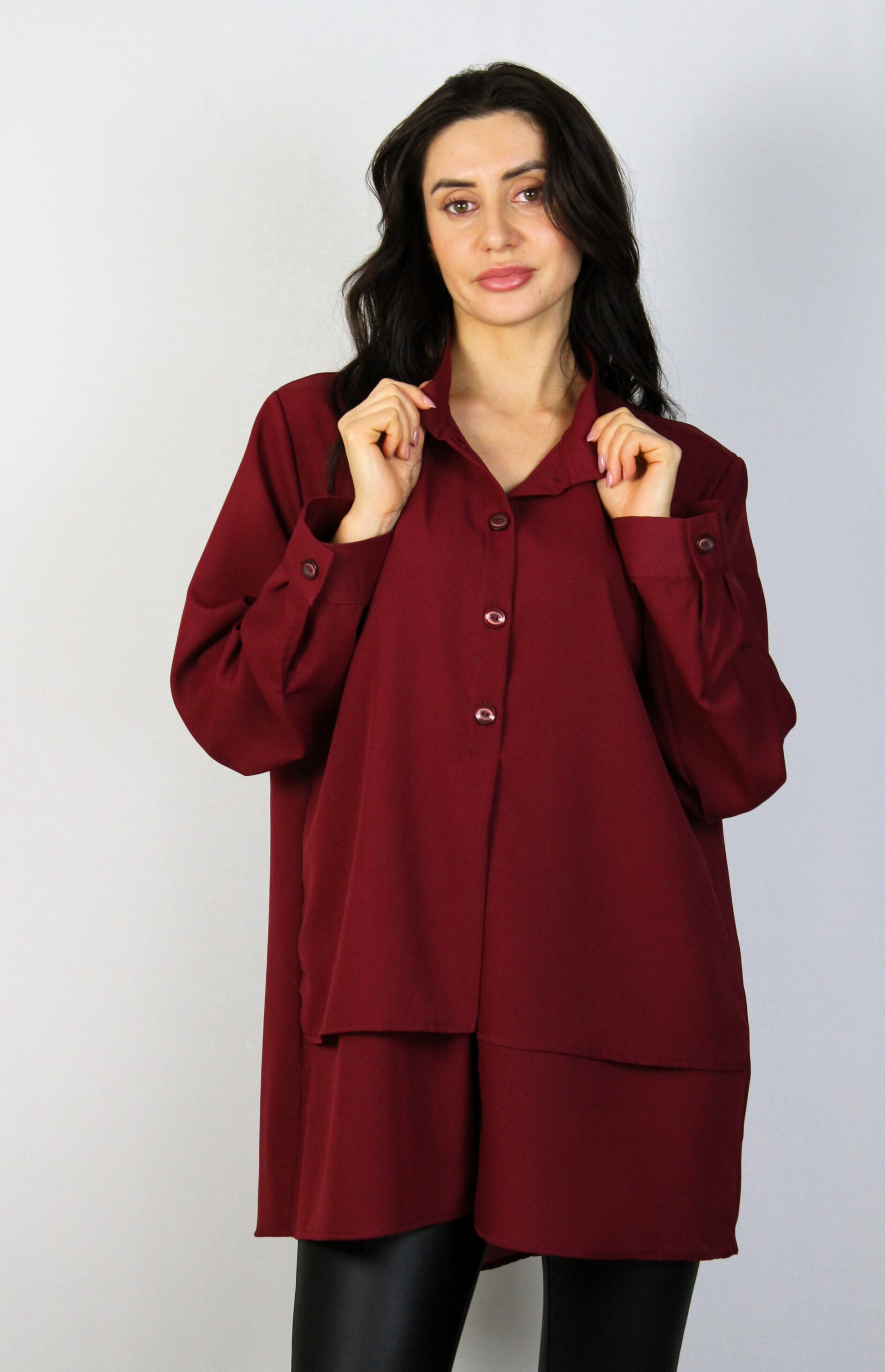 Риза с двойна предница бордо