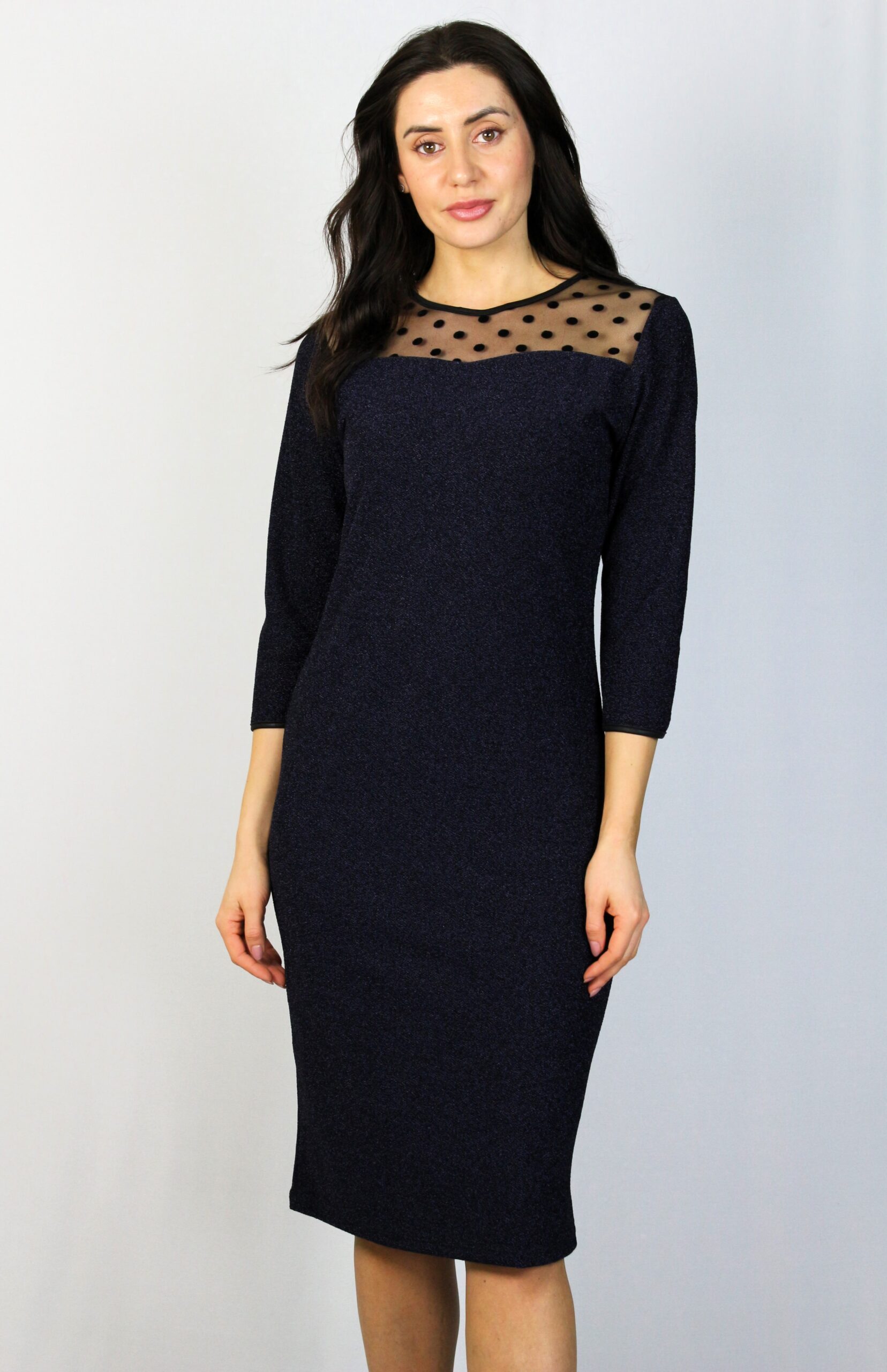 Рокля с платка тюл точки тъмносиньо – лилаво ламе