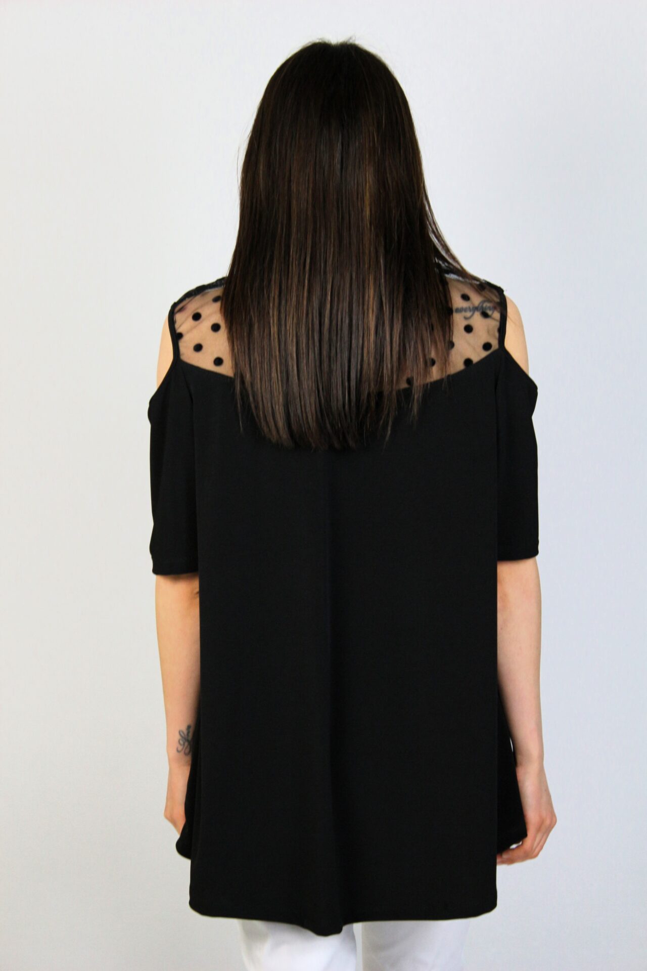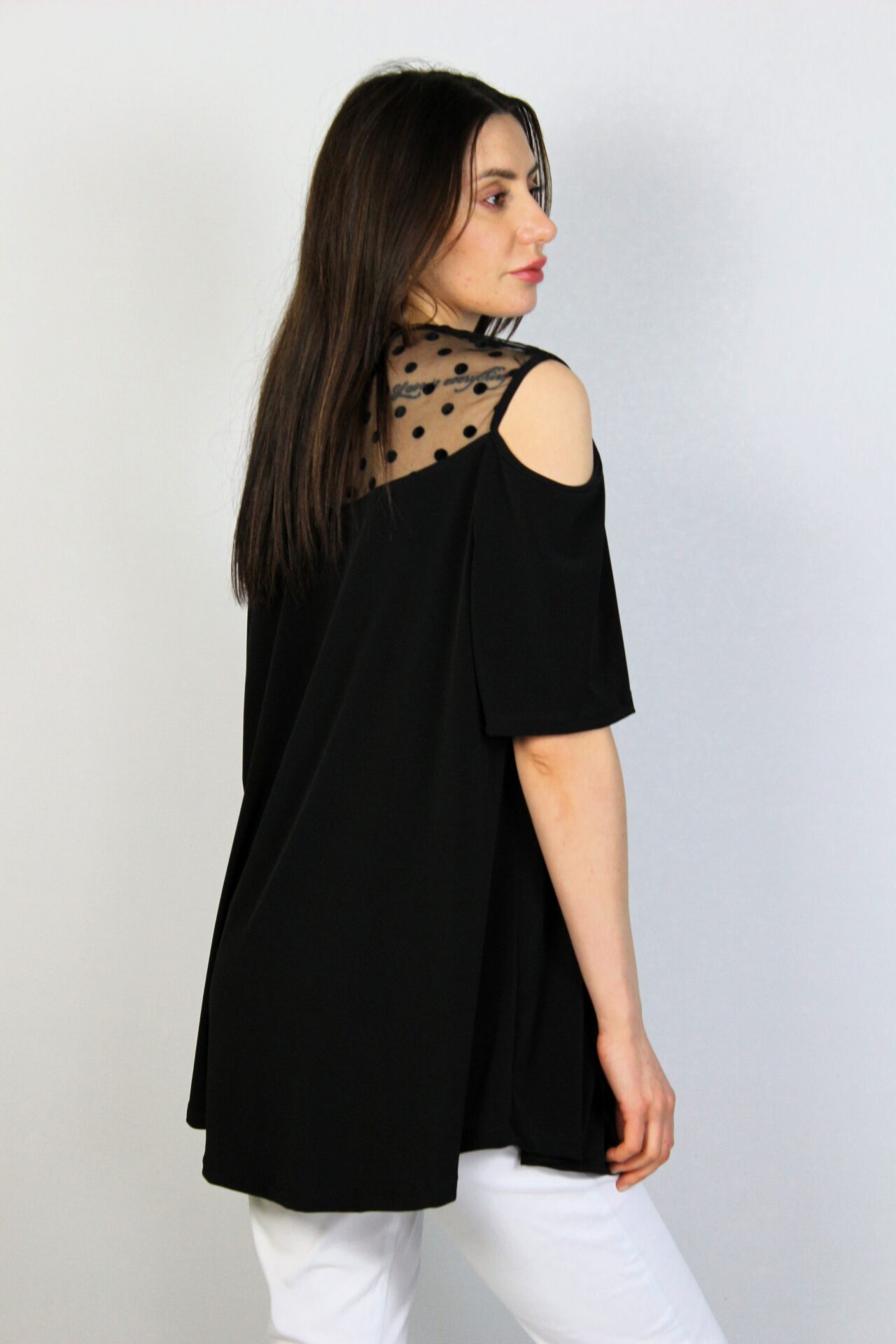 Туника свободно падаща надолу с тюлена платка на точки в предната част и на гърба.