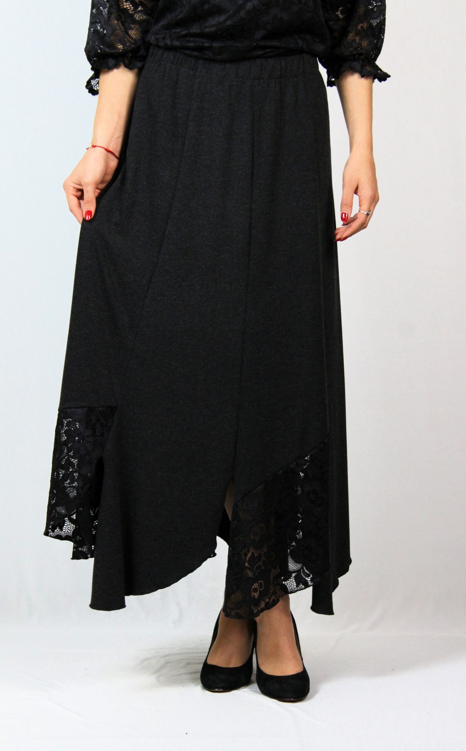 Дълга пола комбинирана с дантела