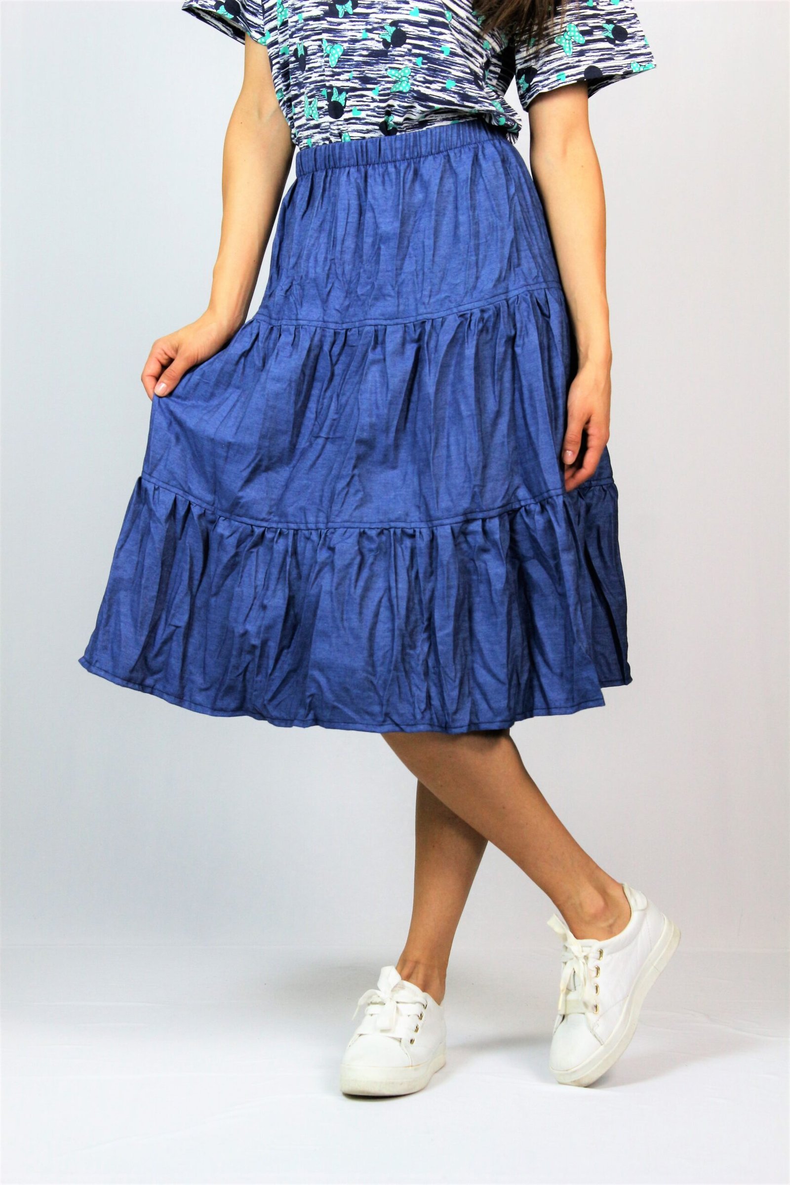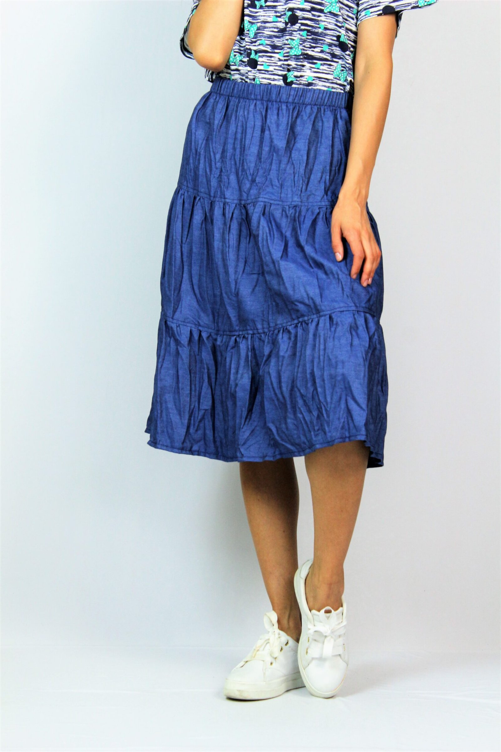Пола на волани с ластик на талията изработена от тънък деним.