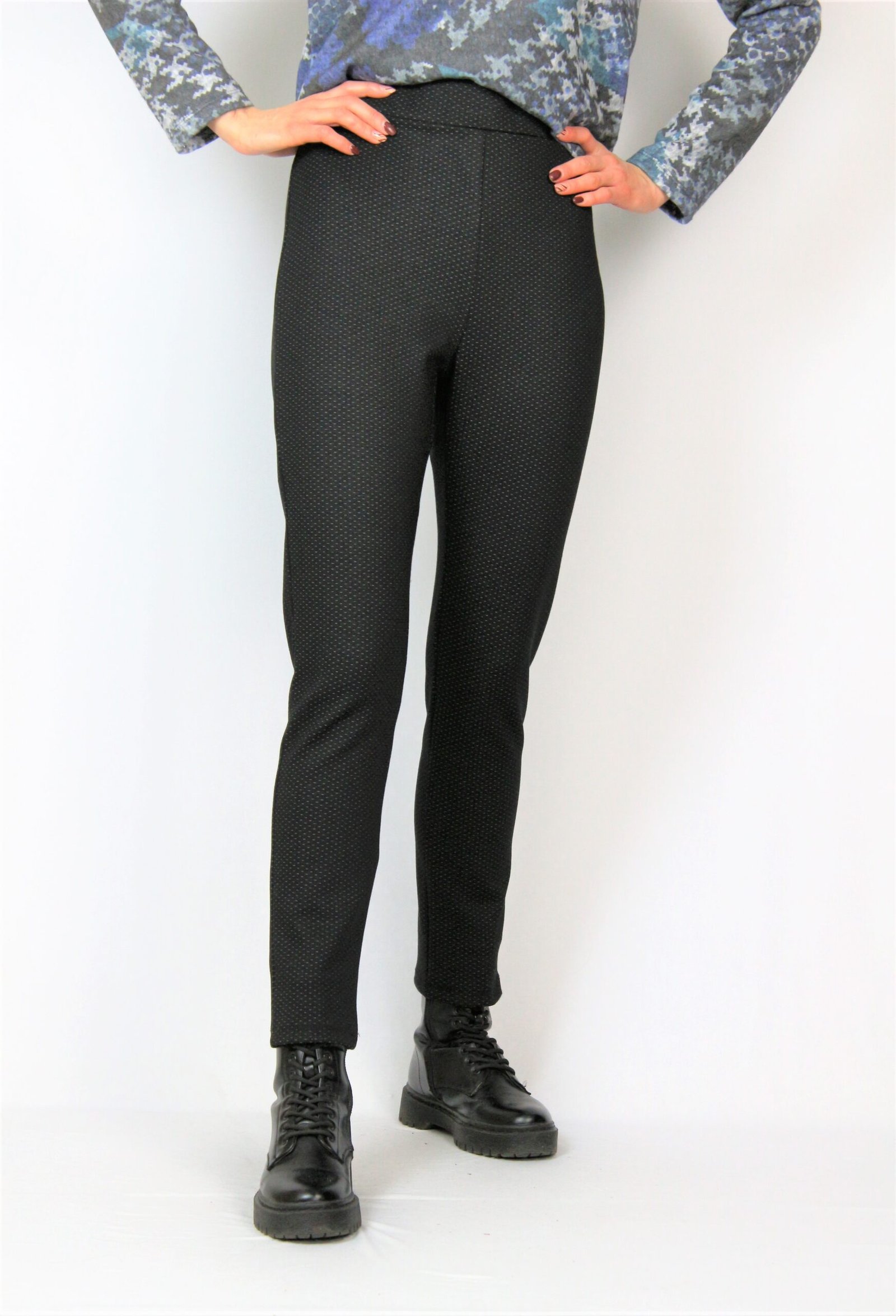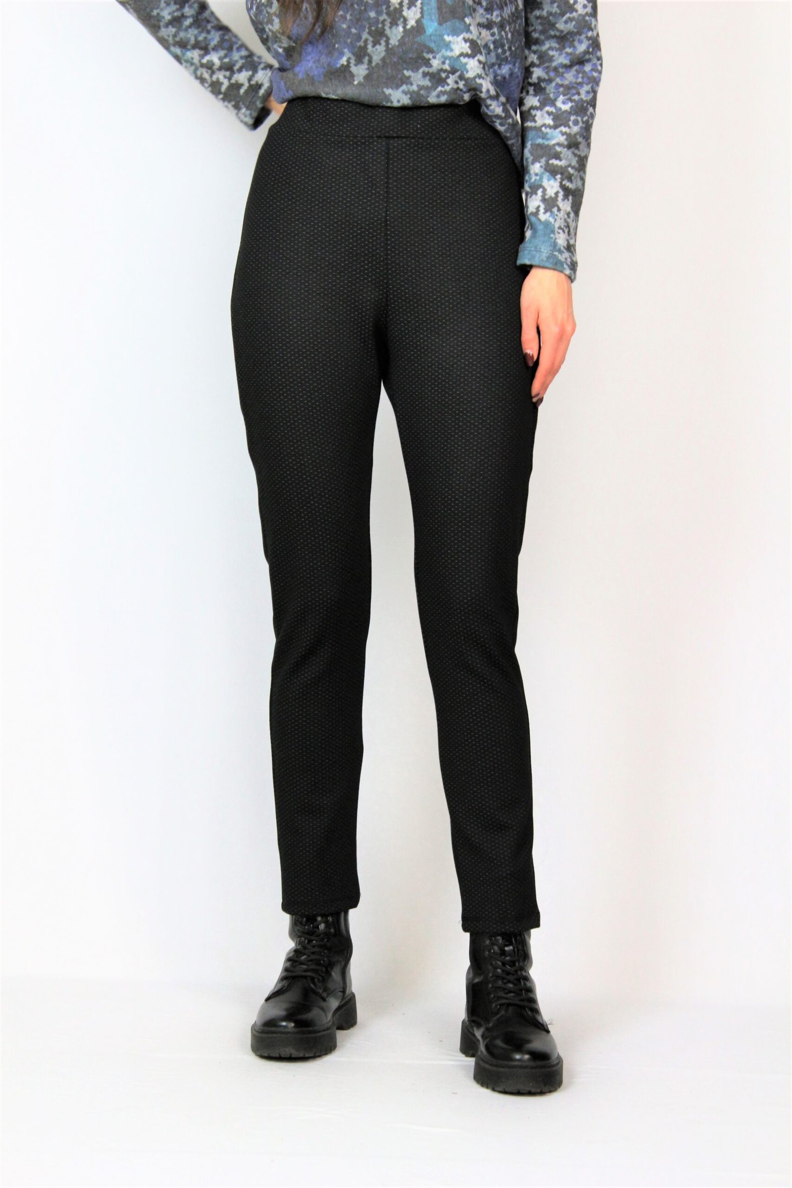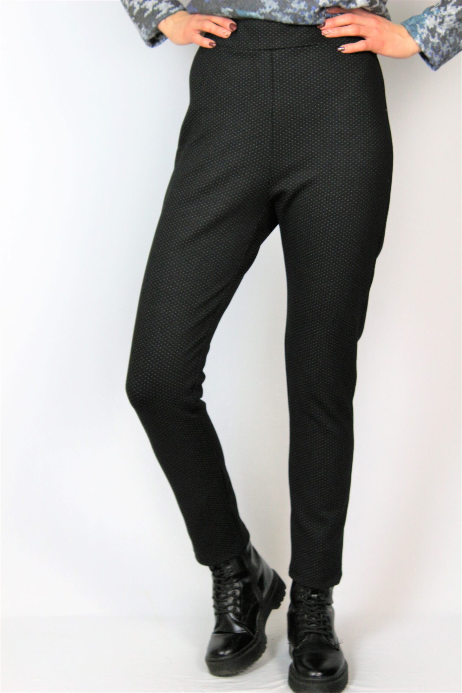 Панталон с висока талия и ластичен колан за удобство. Изработен от плътен еластичен плат.