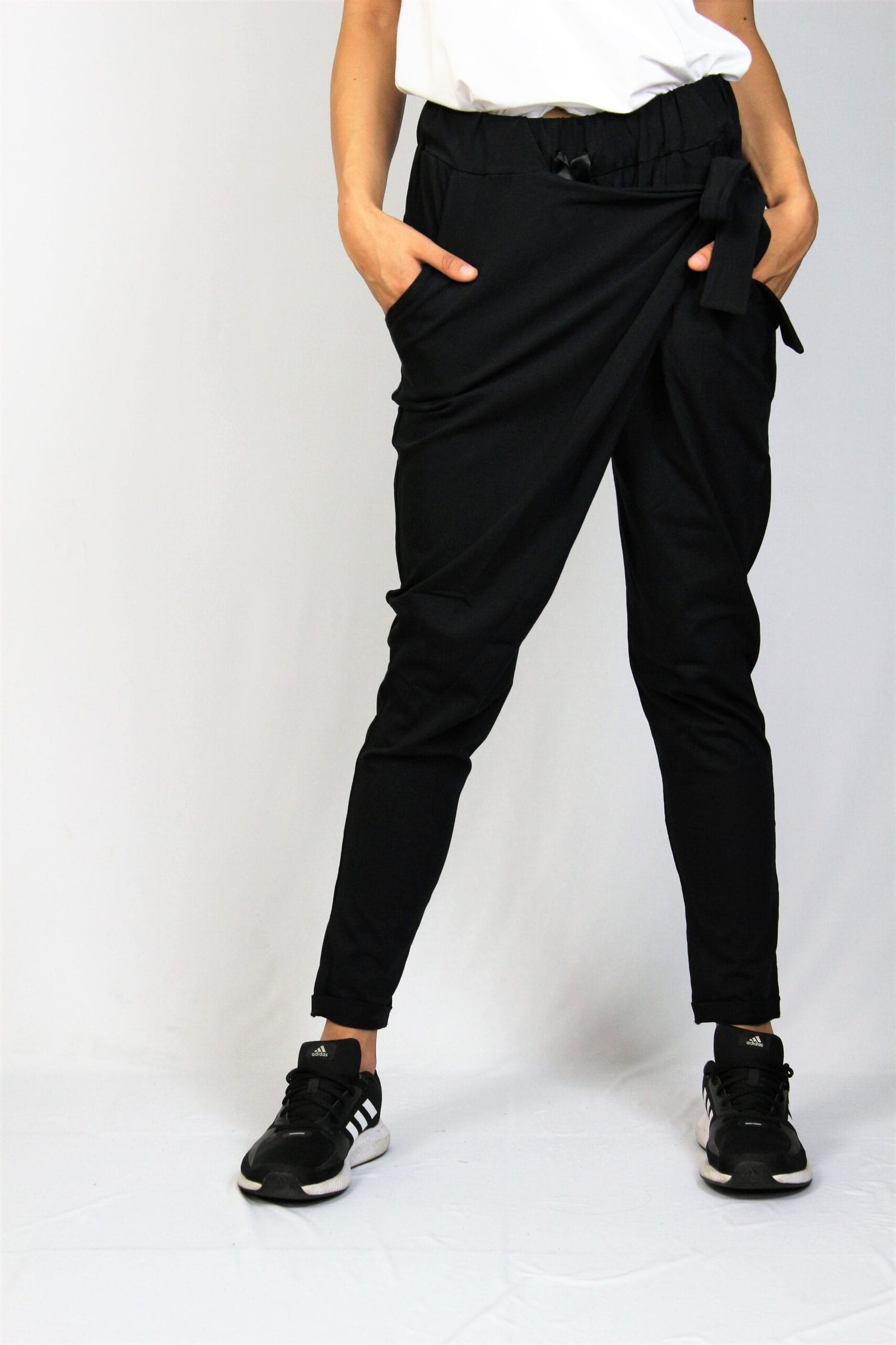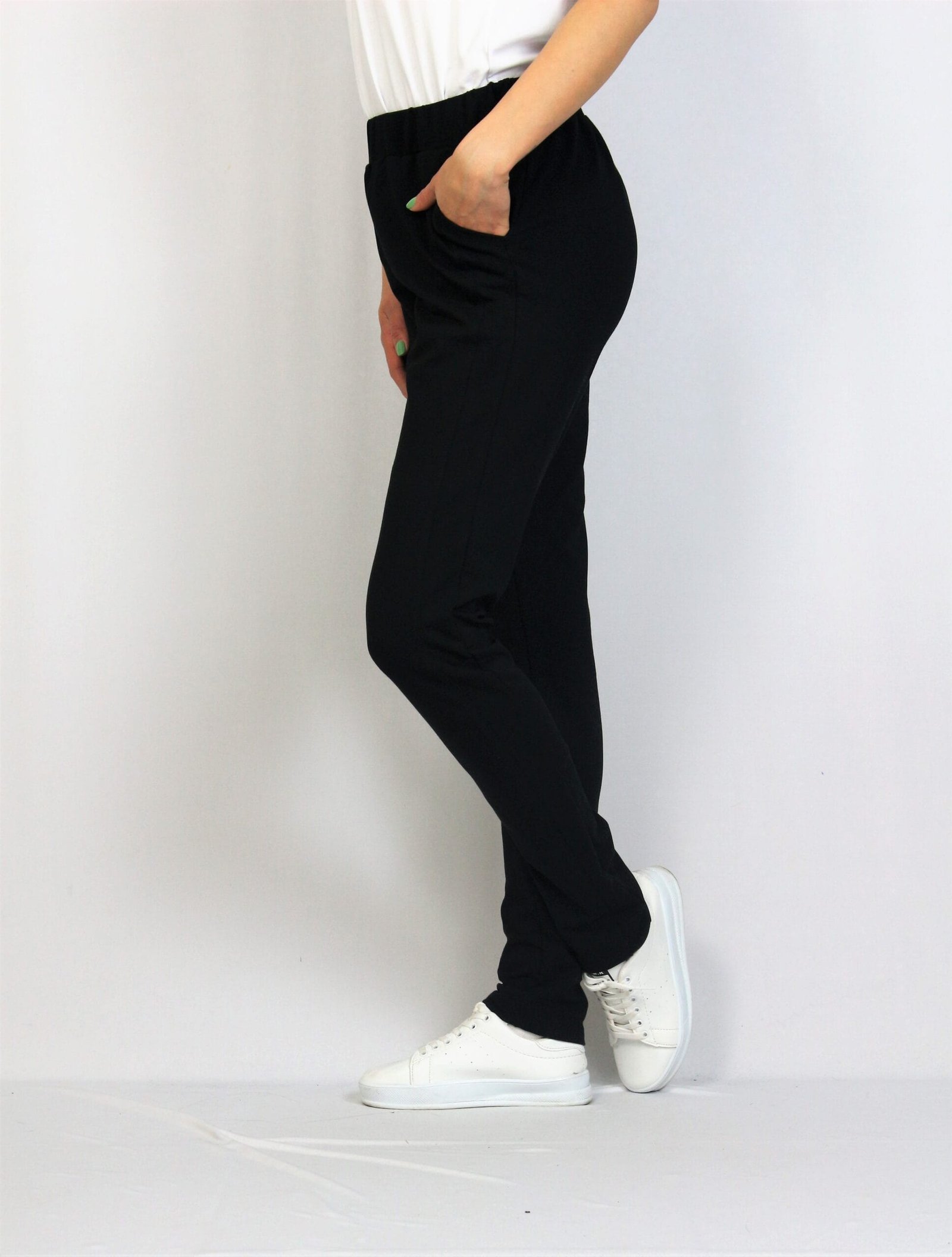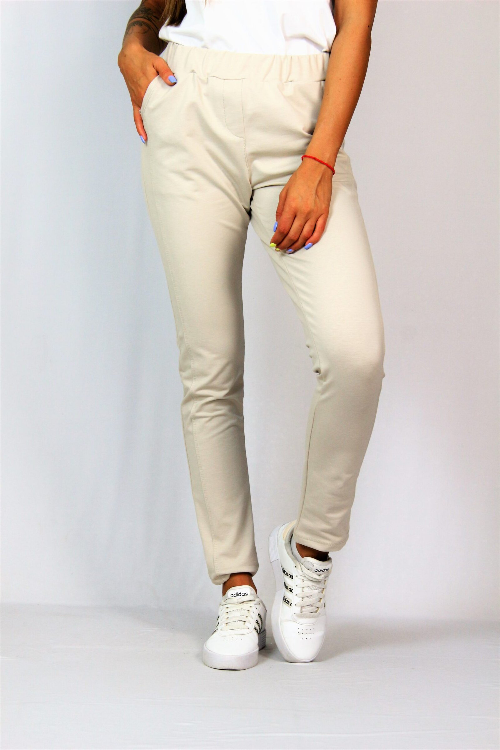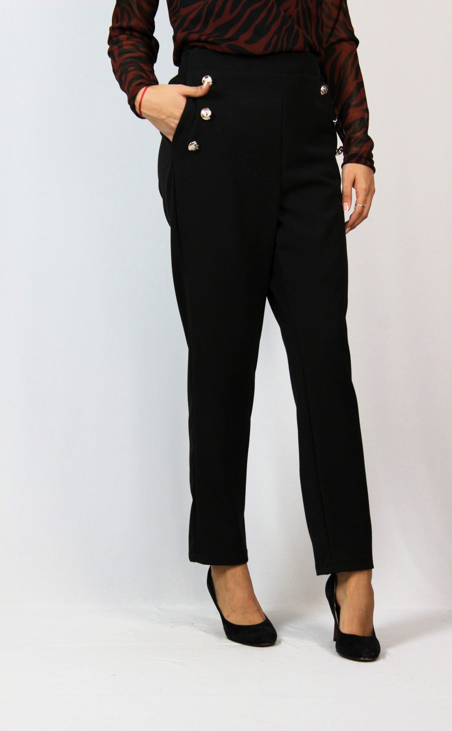 Свободен панталон с два джоба и ластичен колан отзад на талията .Има декоративни копчета.