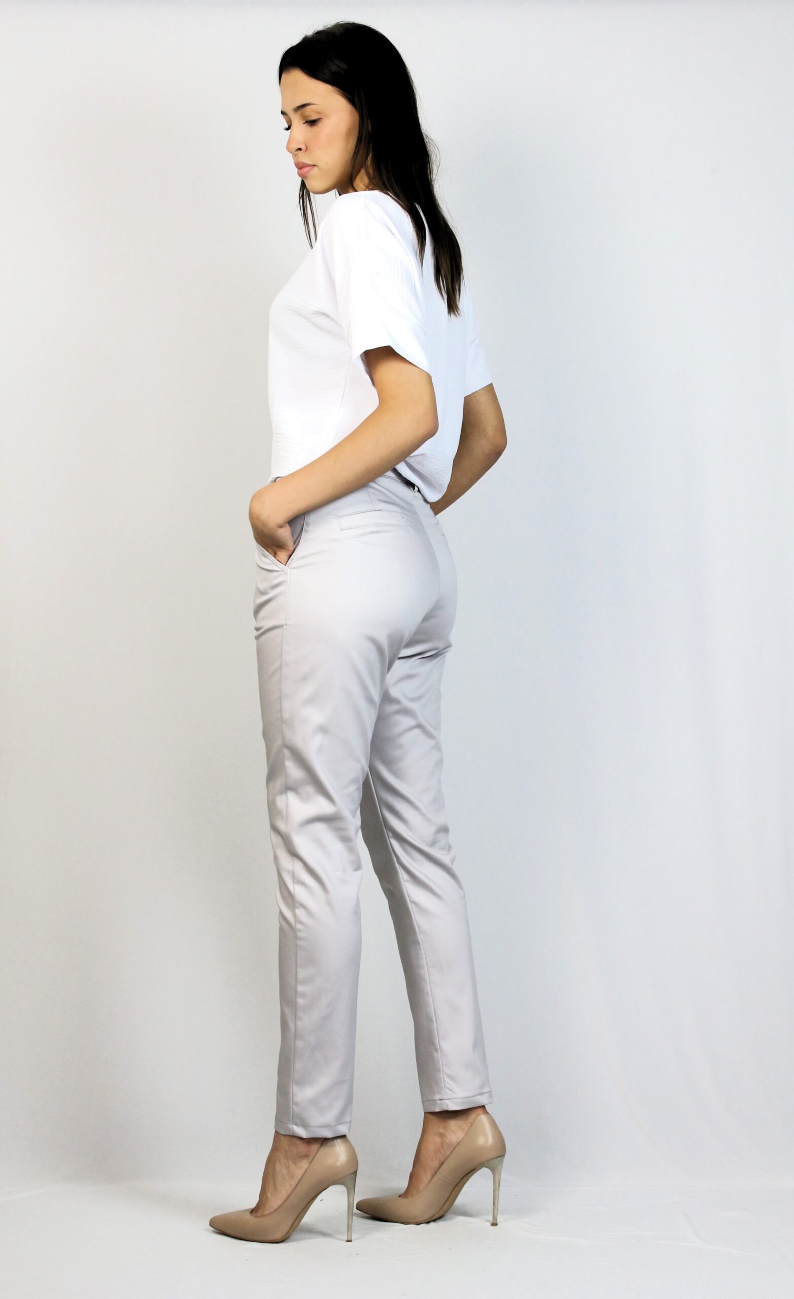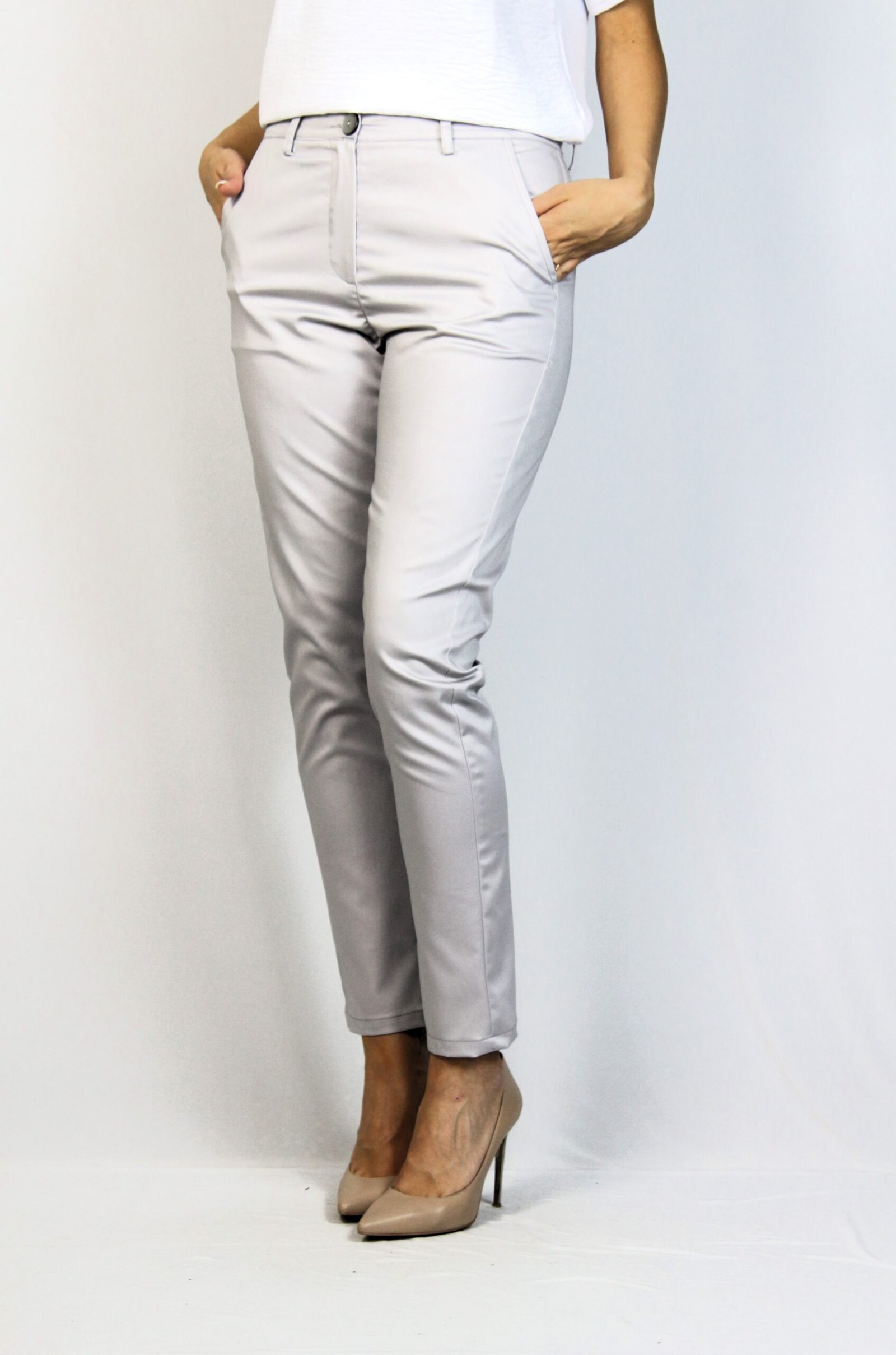 Елегантен панталон с италиански джоб изработен от памук сатен с еластан.