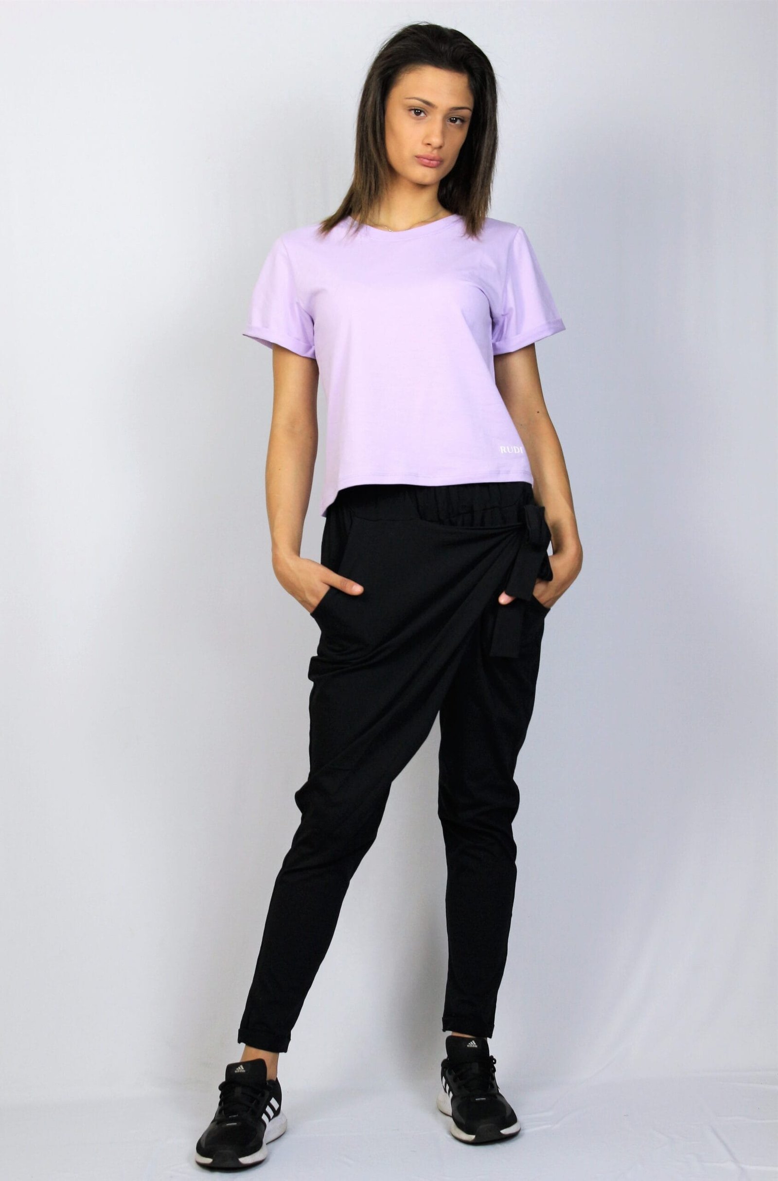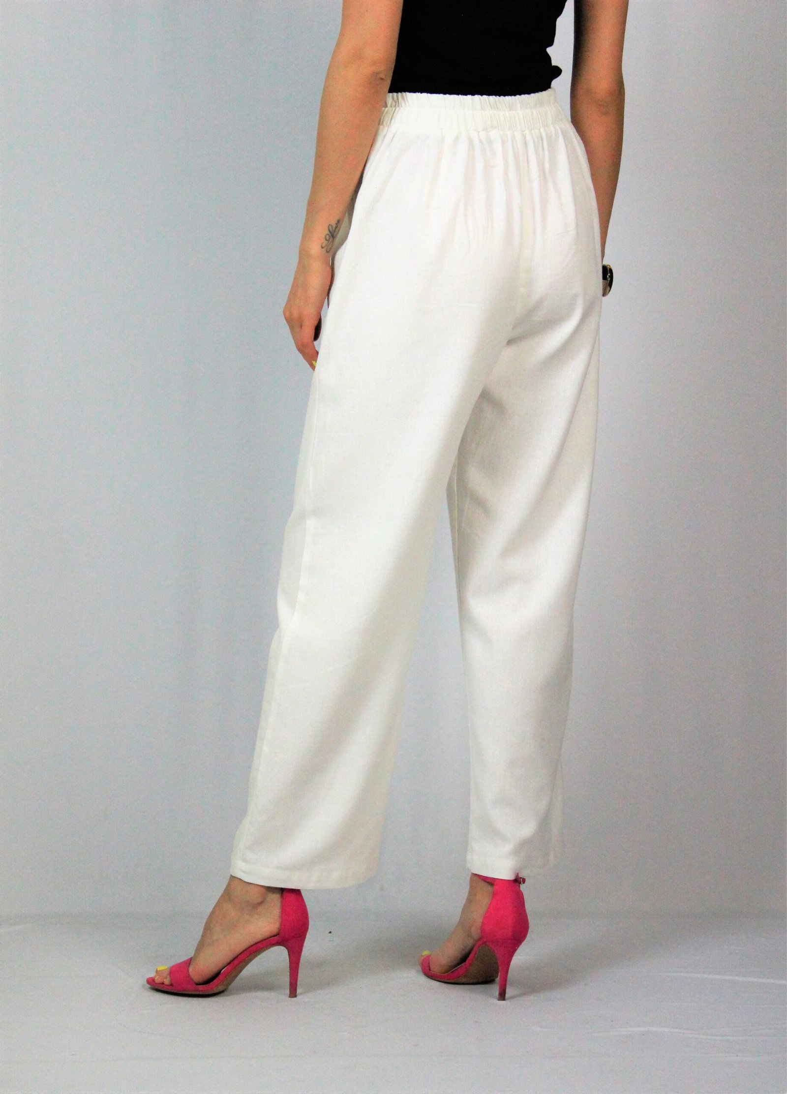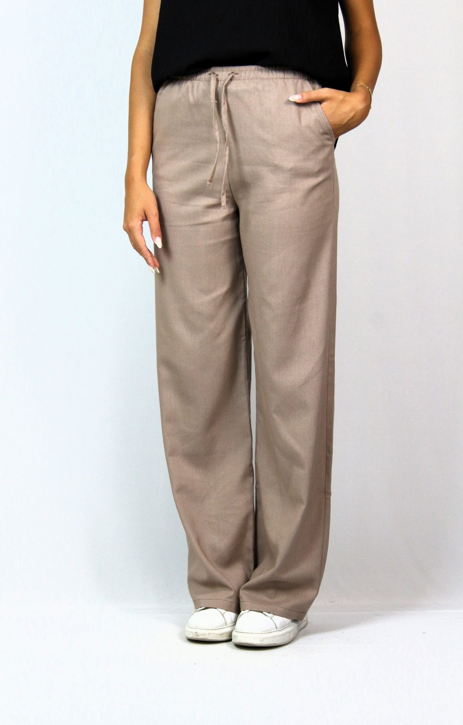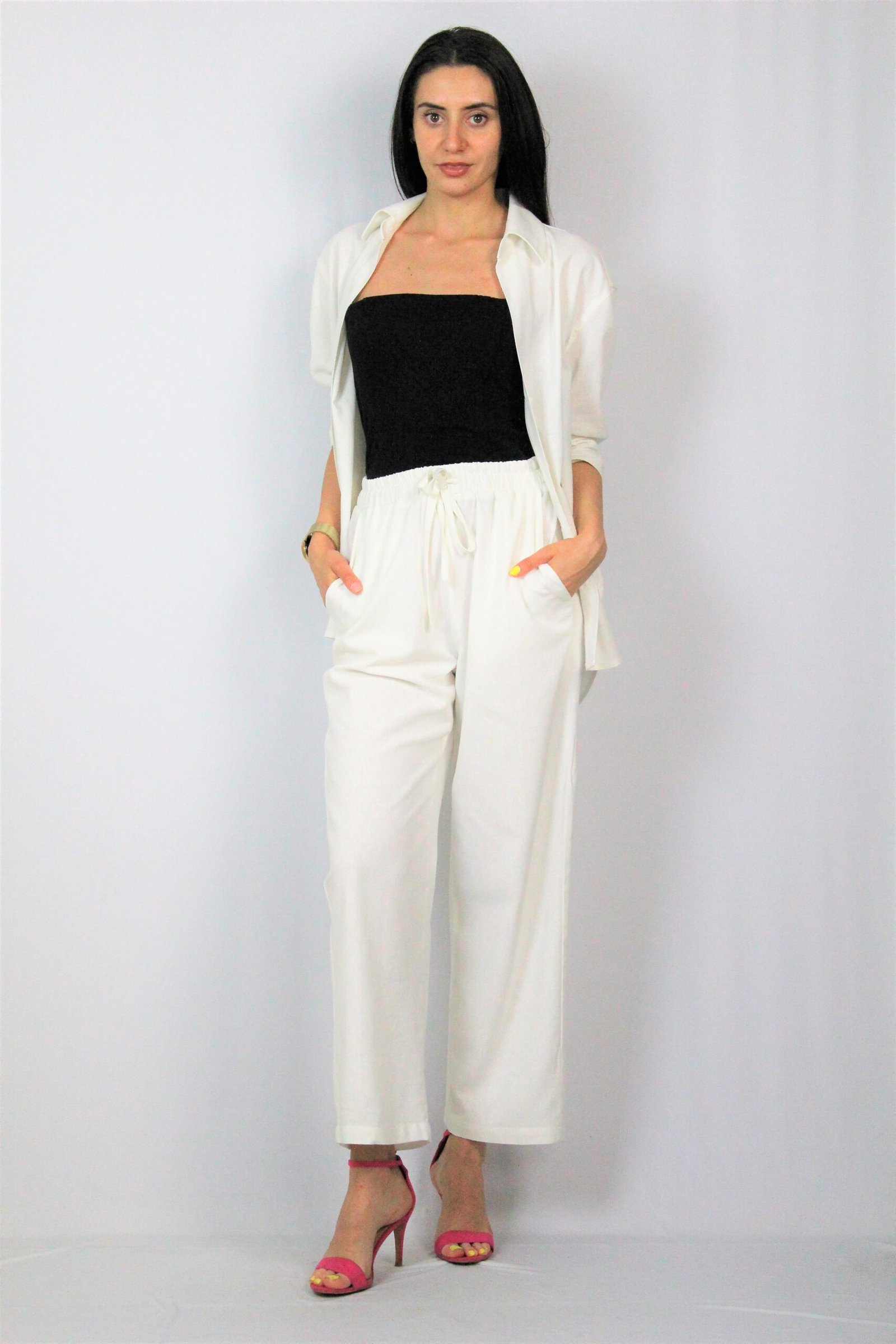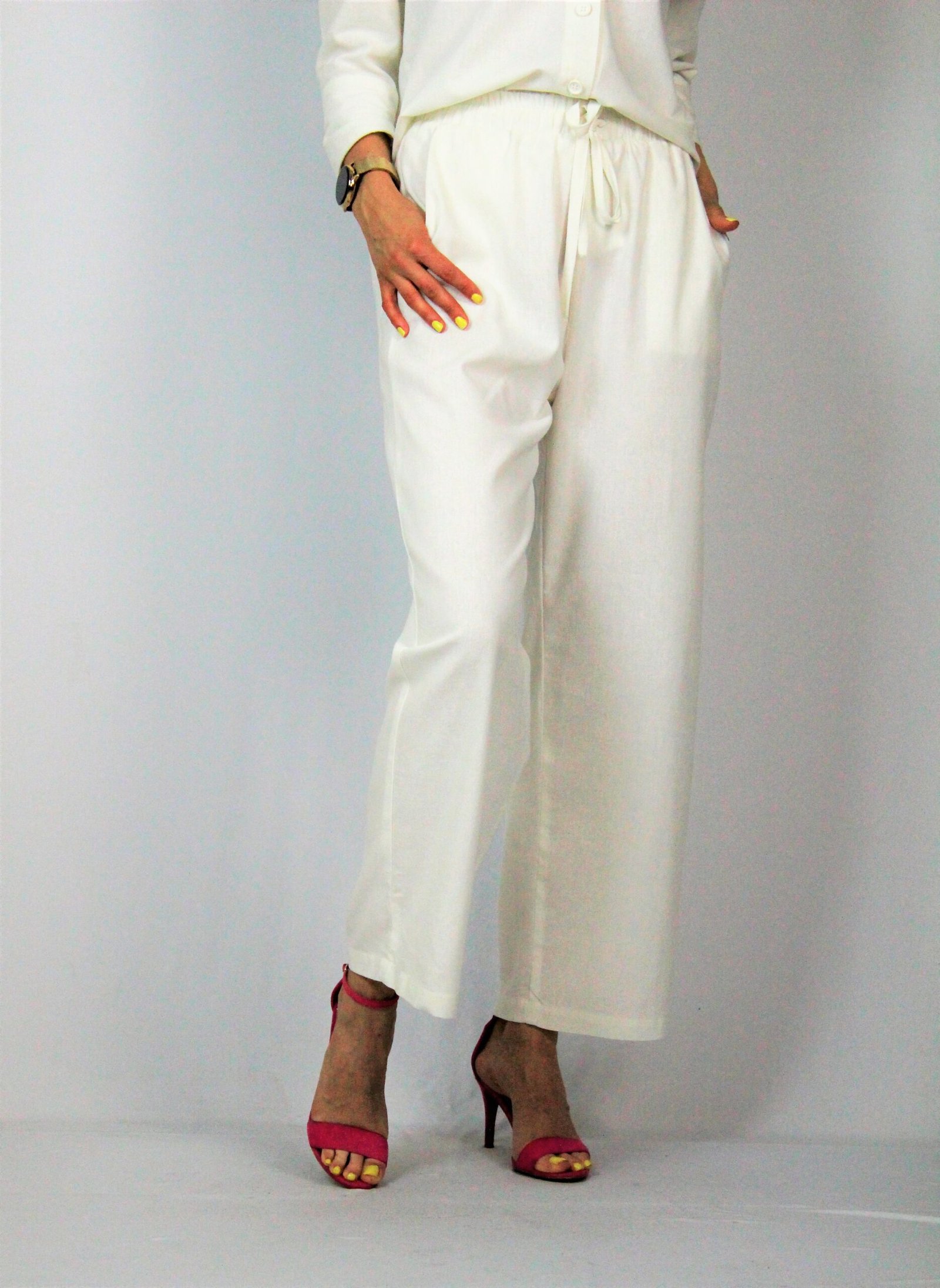Широк панталон с два вътрешни джоба ,с ластик и връзка на талията .