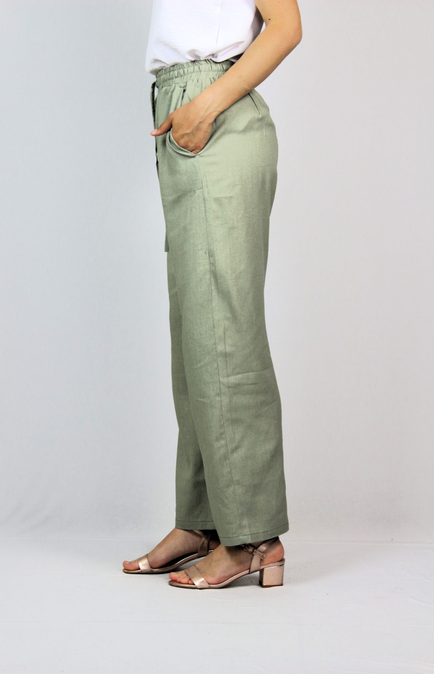 Широк панталон с два вътрешни джоба ,с ластик и връзка на талията .