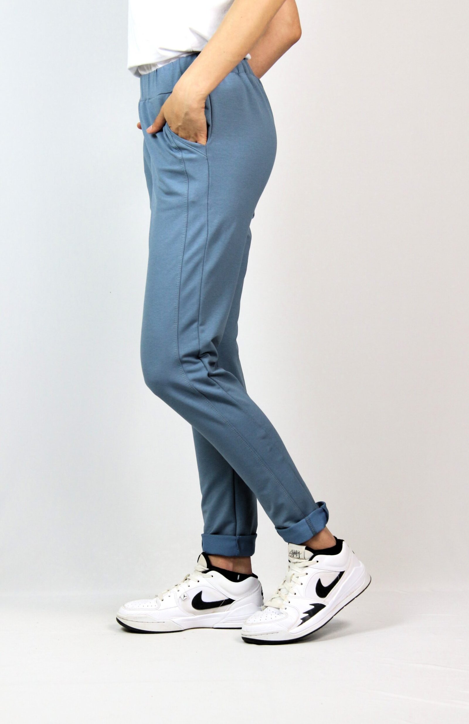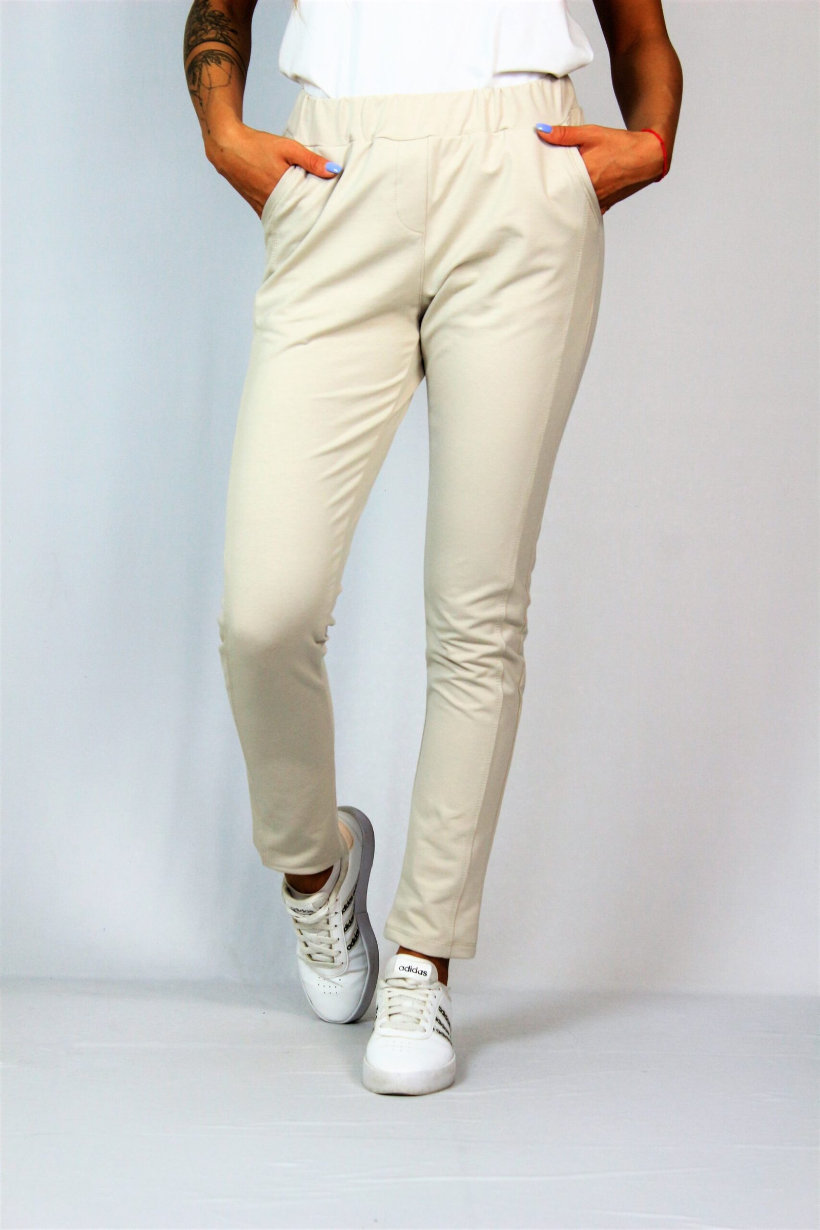 Спортен панталон с кант от плата, два джоба ,ластик на талията.