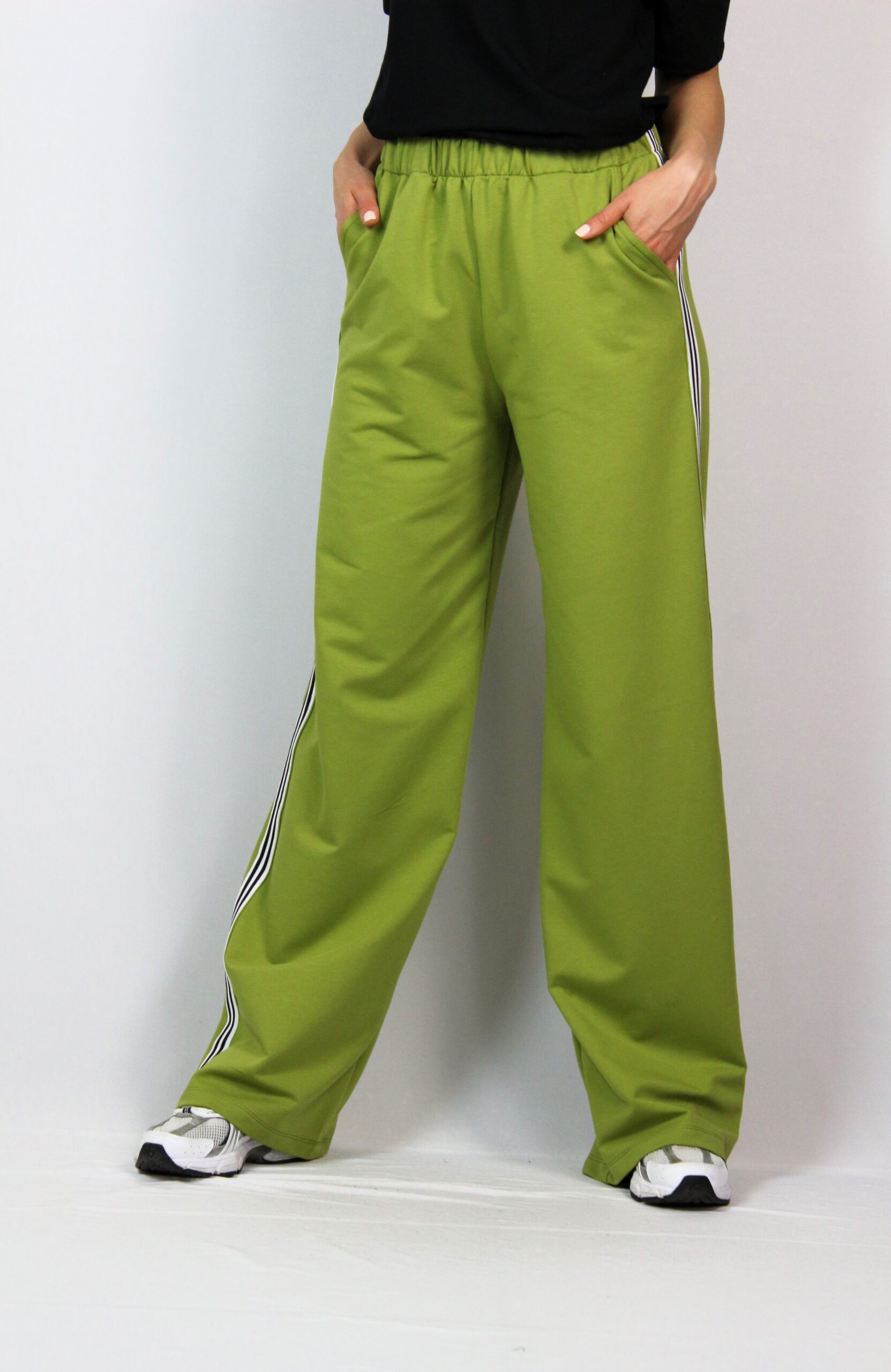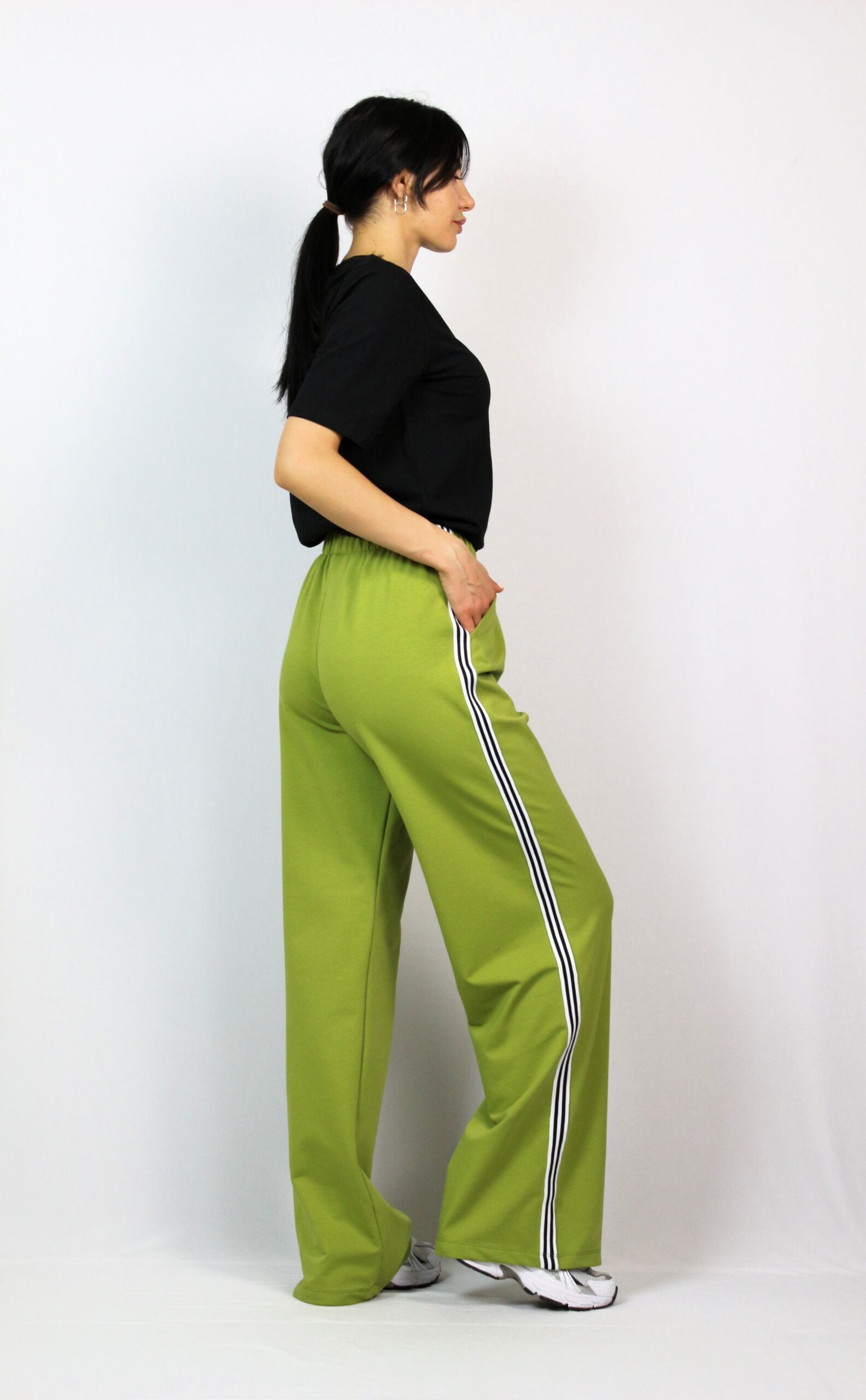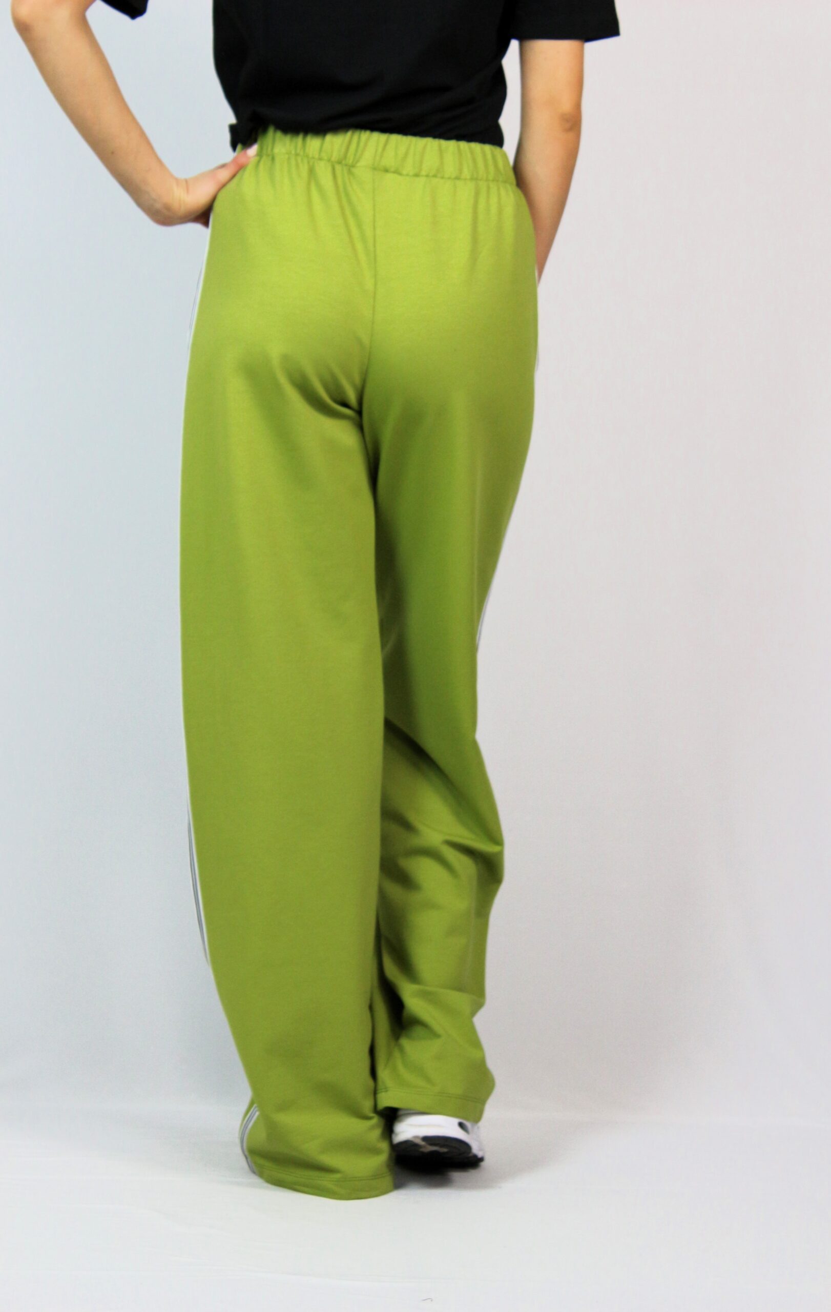 Свободен панталон с ластичен колан , италиански джоб и с ивица отстрани.