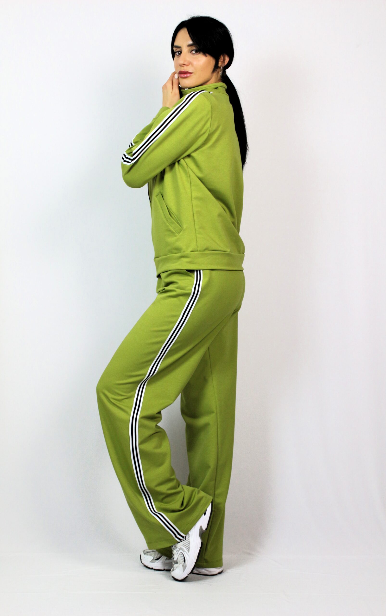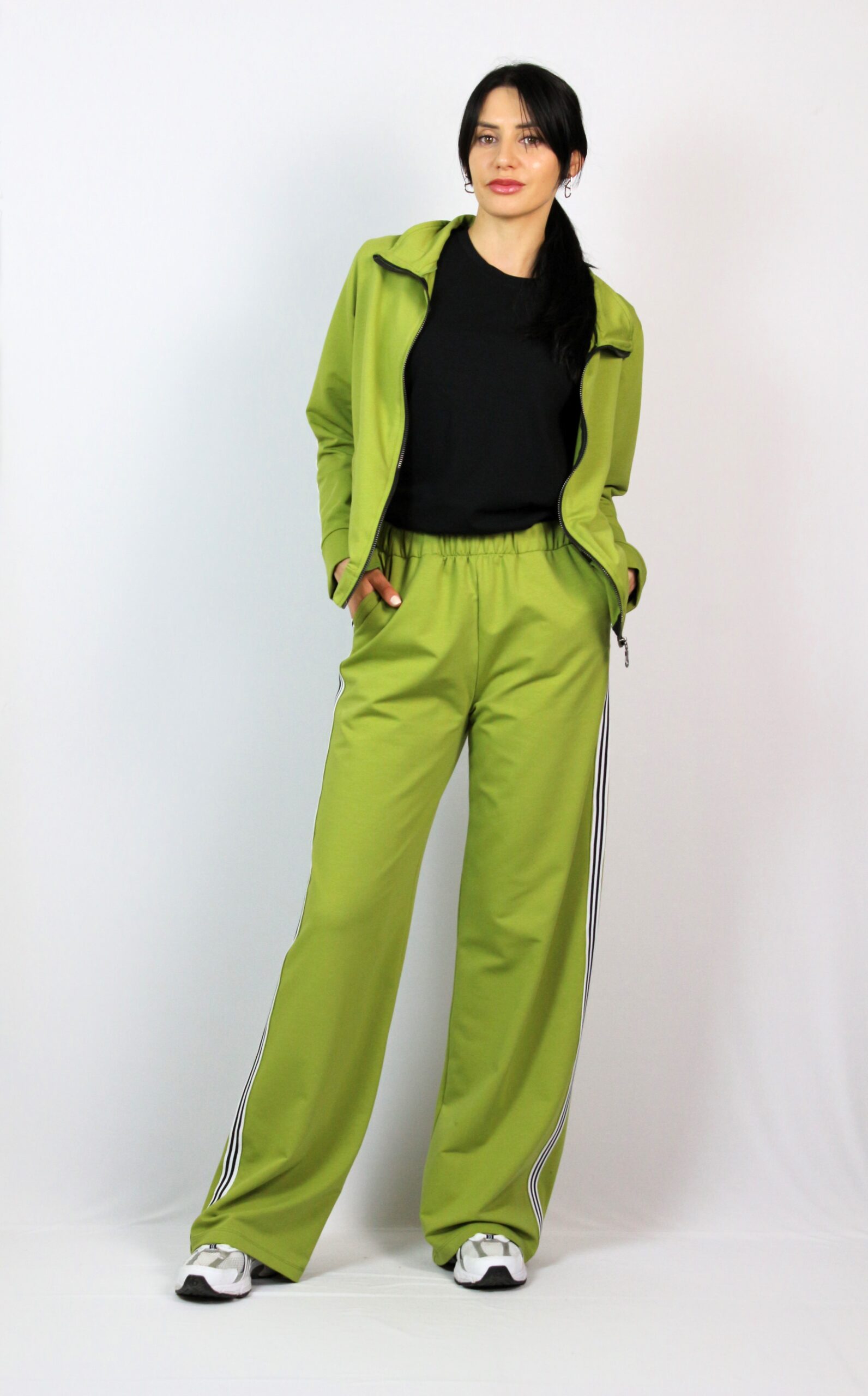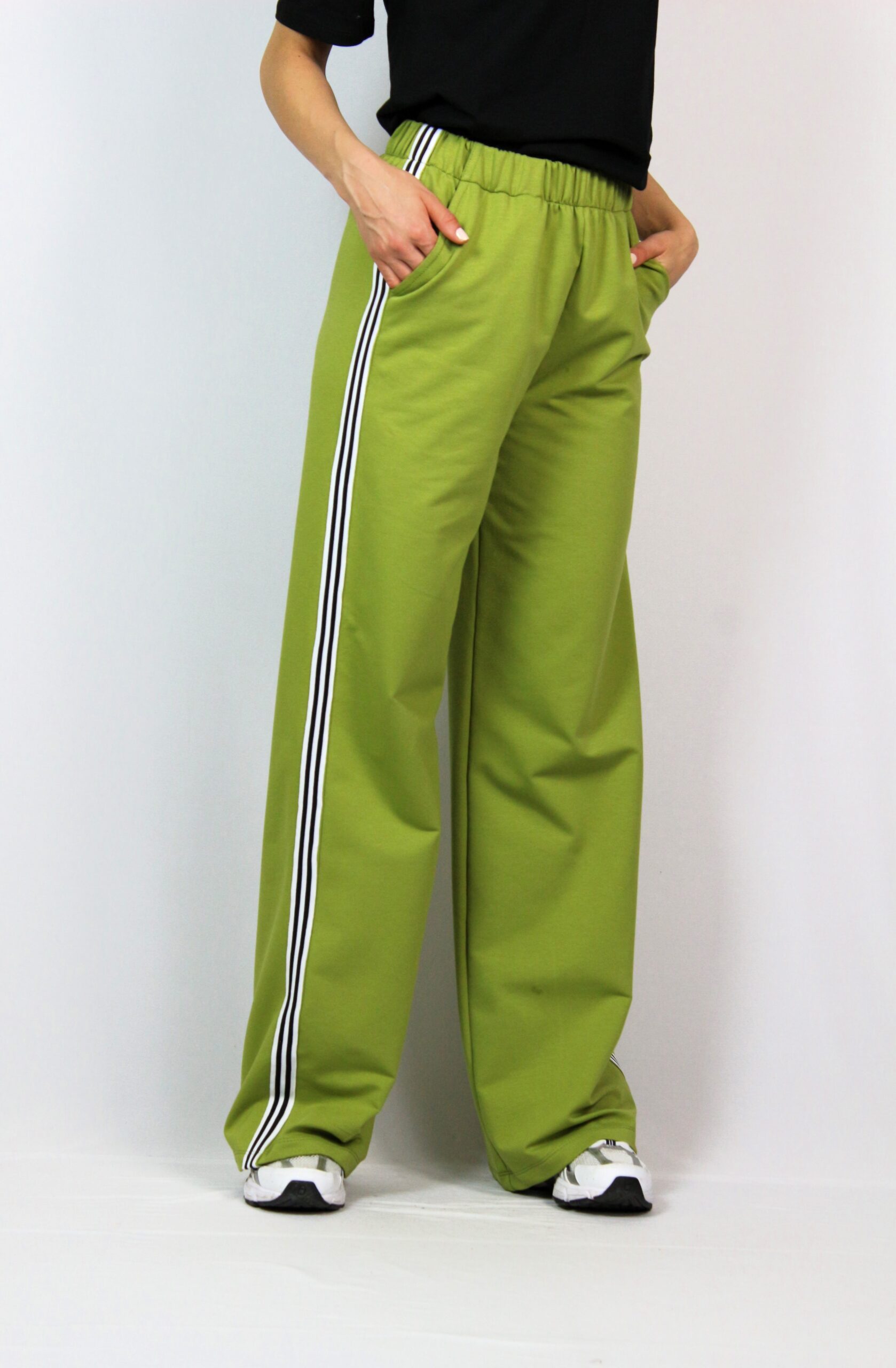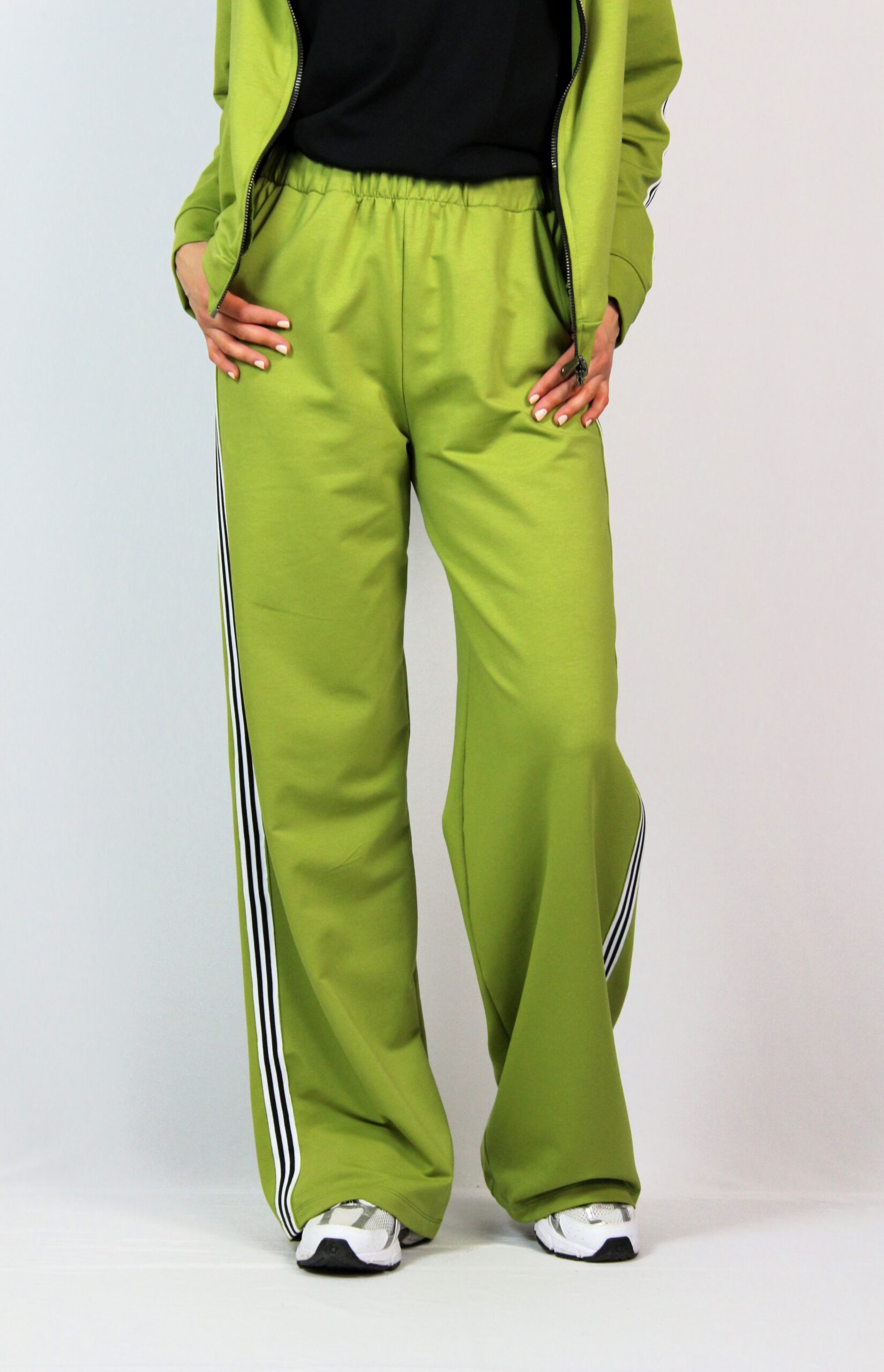 Свободен панталон с ластичен колан , италиански джоб и с ивица отстрани.