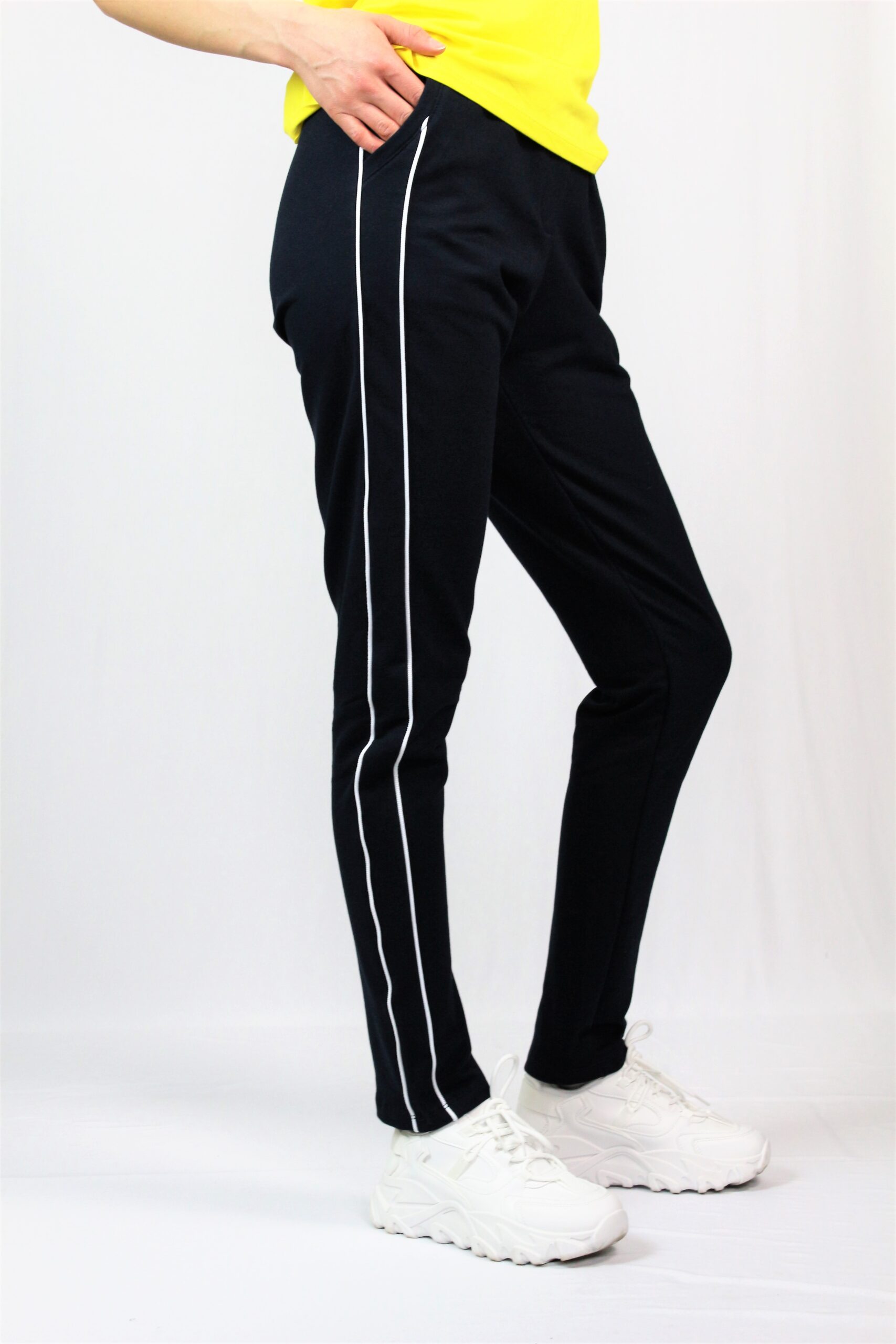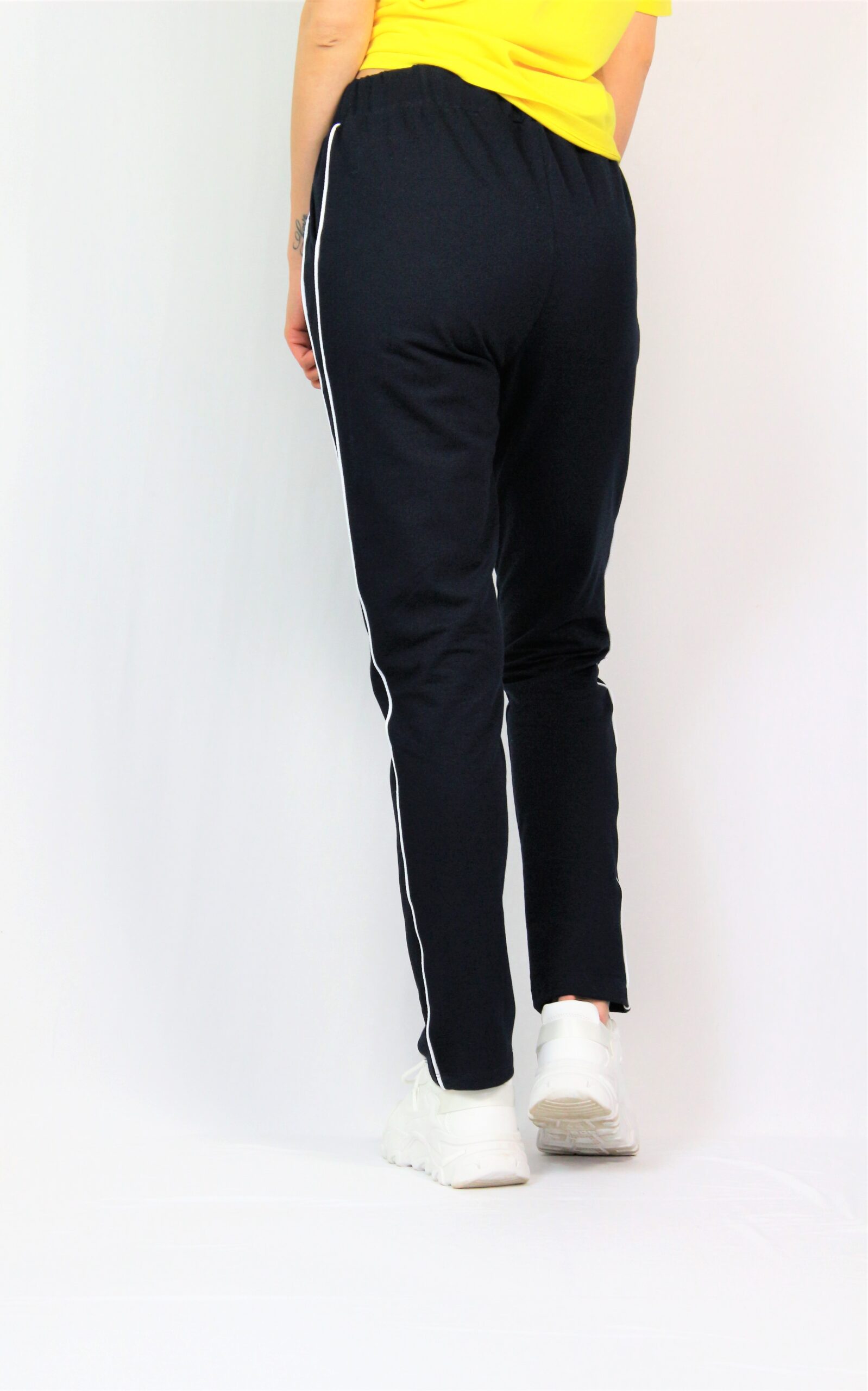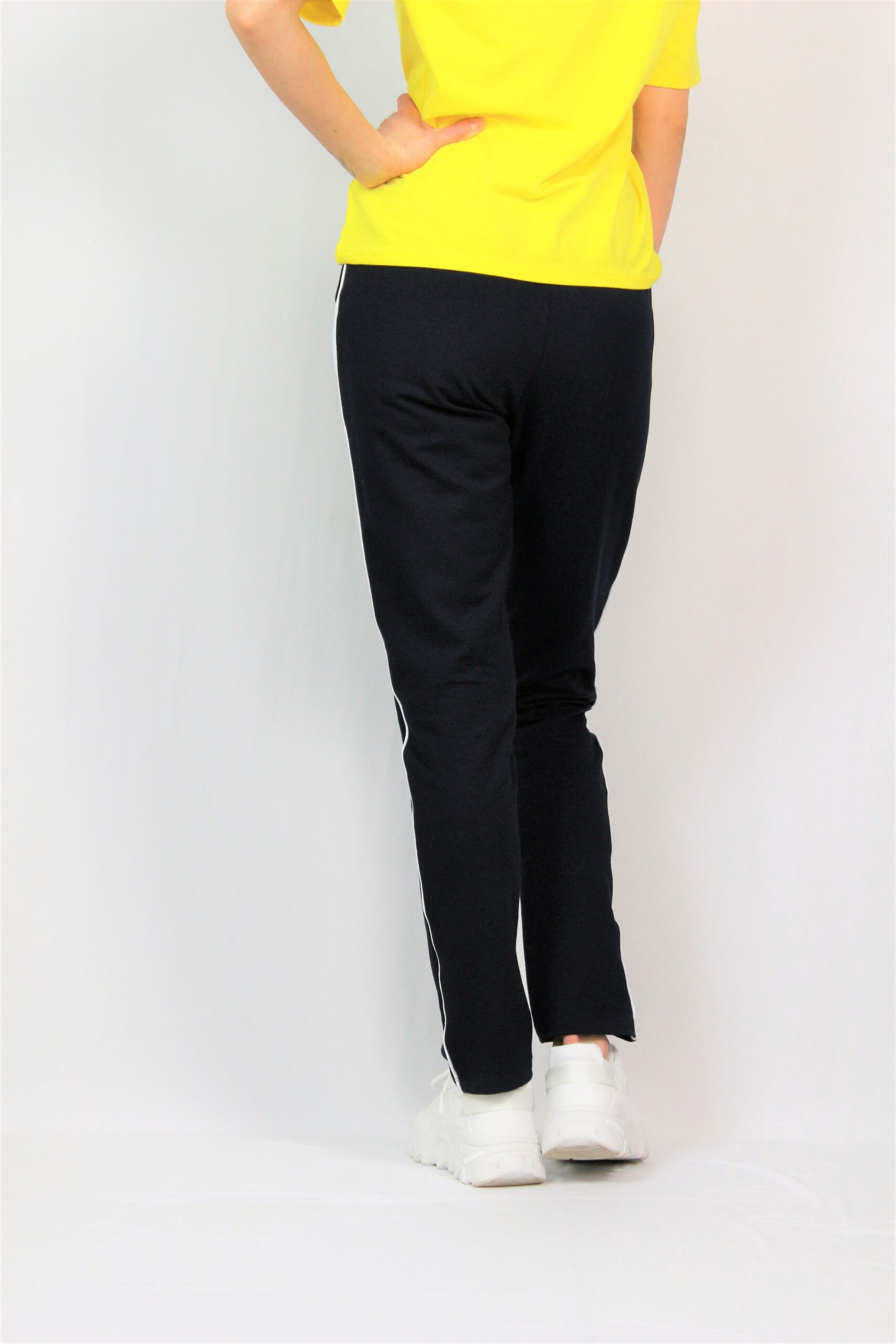 Спортен панталон с кантове, два джоба, ластик на талията. Изработен от висококачествено памучно трико.