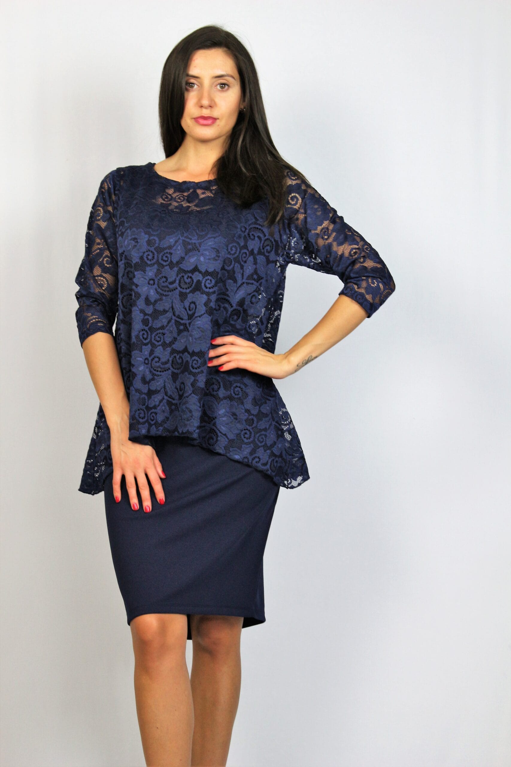 Комплект СТИЛ-Рокля и Туника от дантела тъмносин