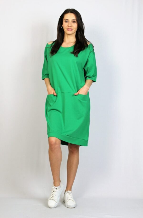 Памучна свободна рокля зелена