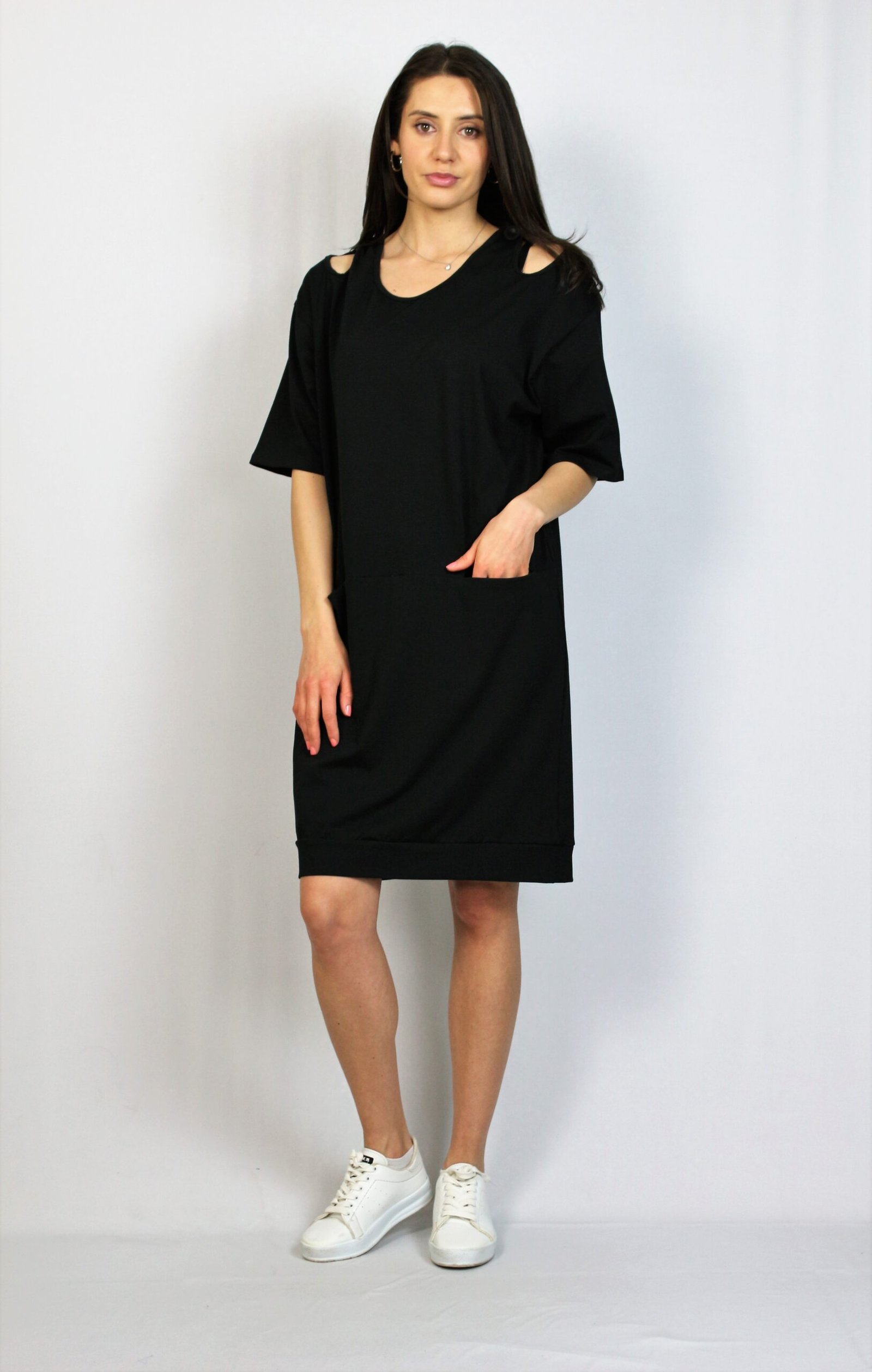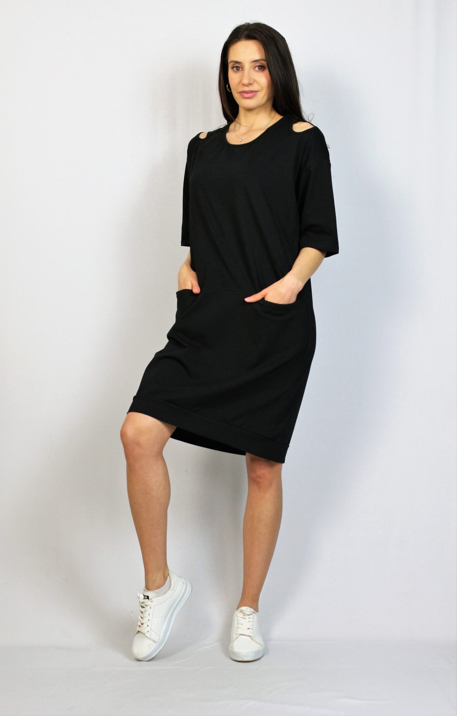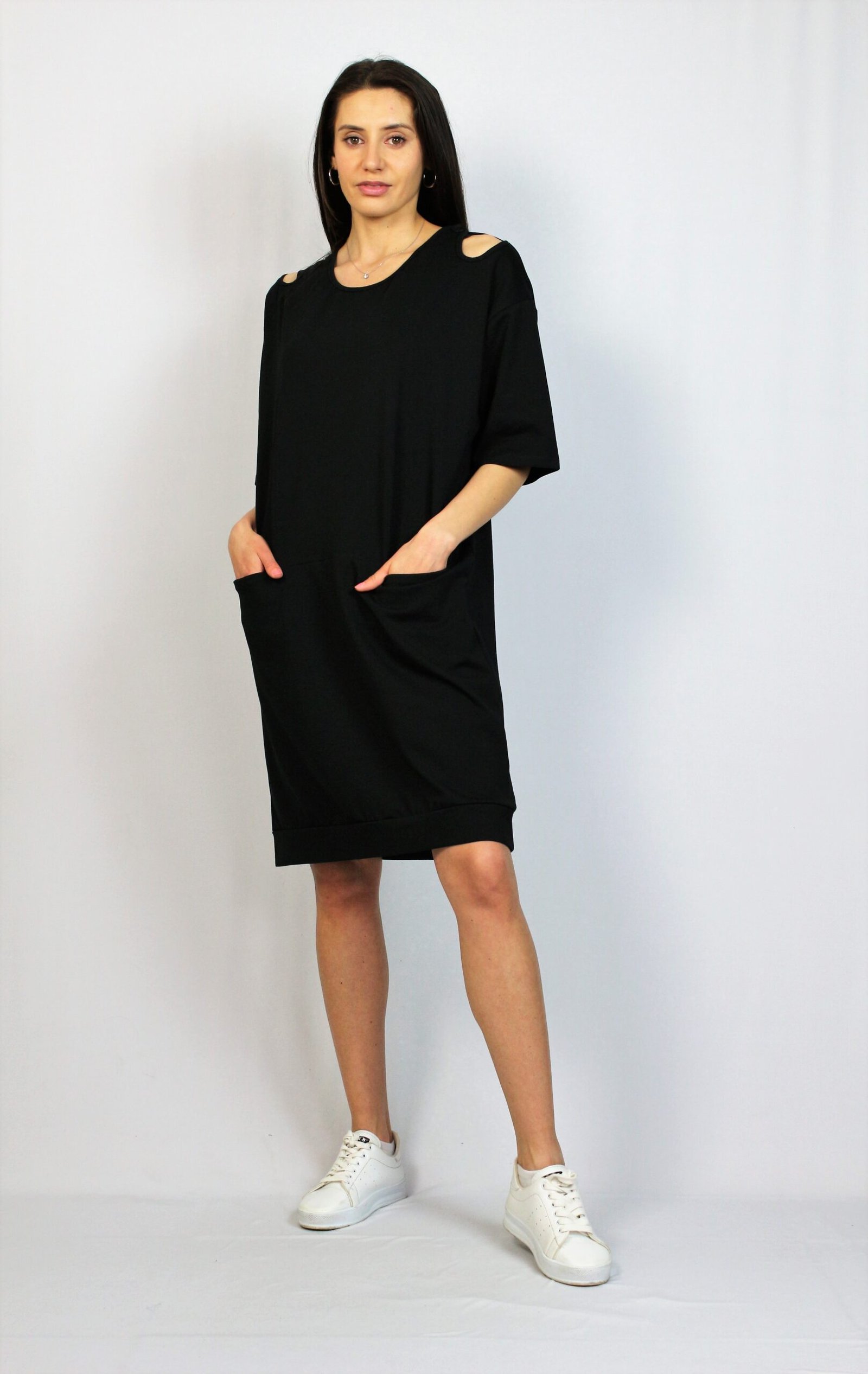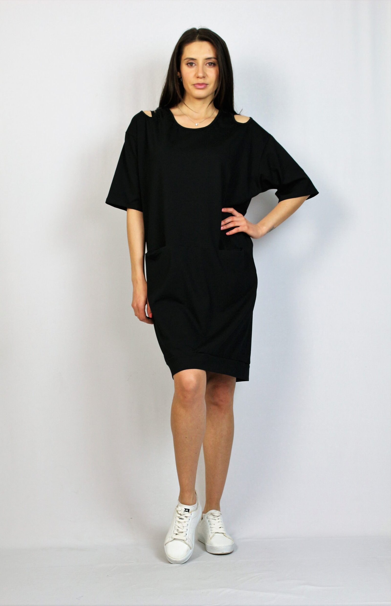 Памучна свободна рокля черна