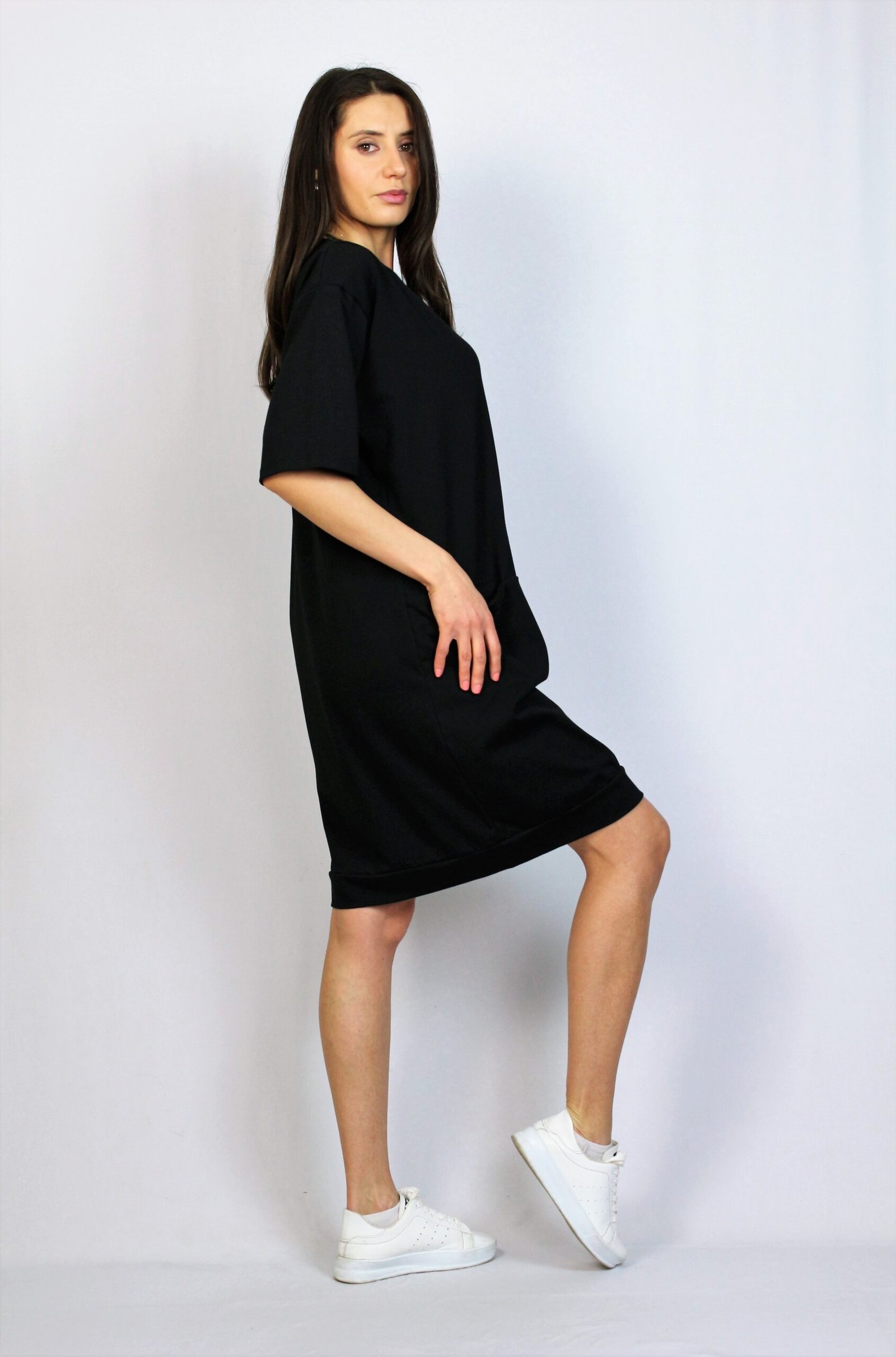 Лека свободна рокля от памучно трико с два джоба .