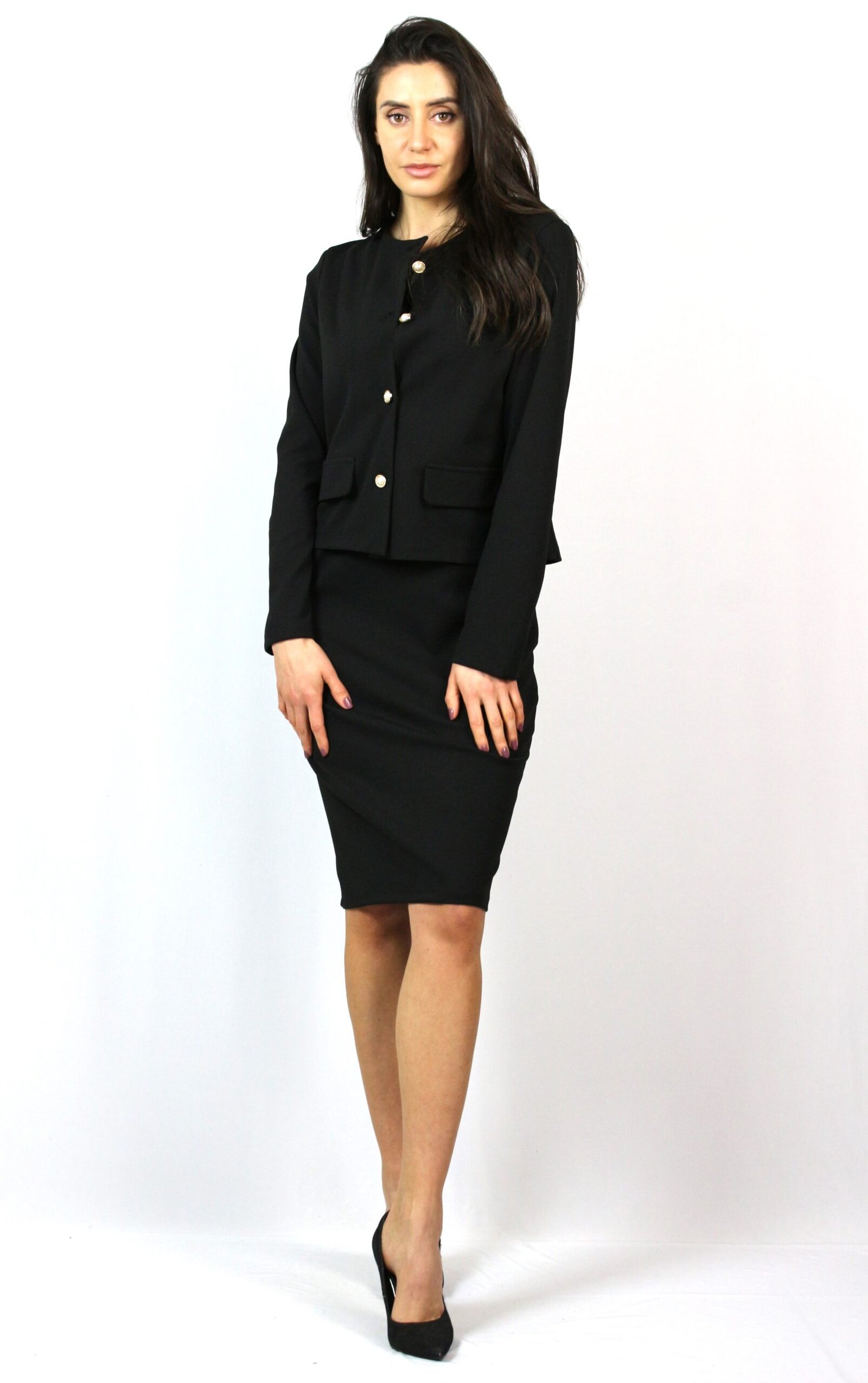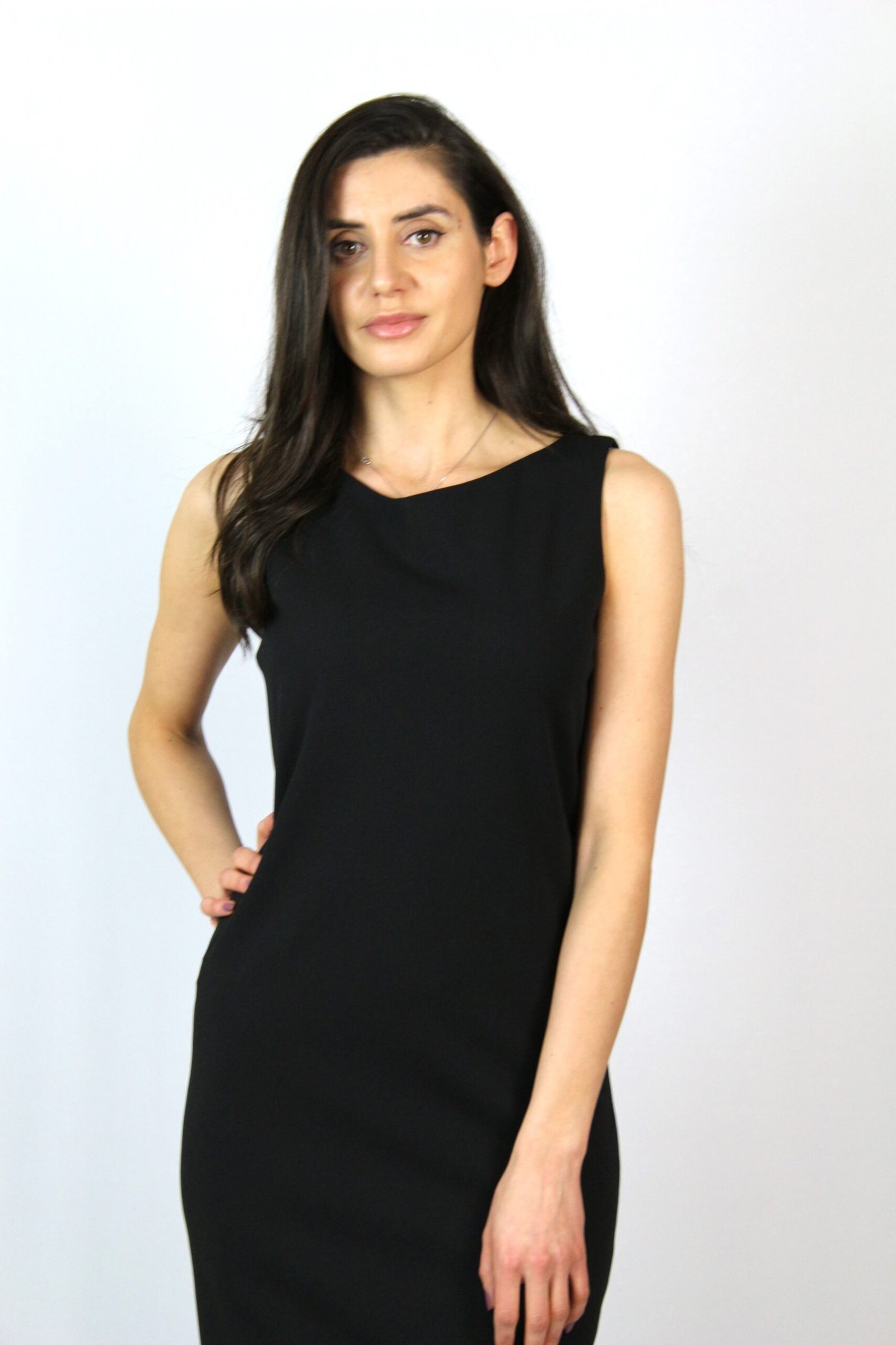 Рокля права изчистена кройка изработена от еластичен креп неопрен .