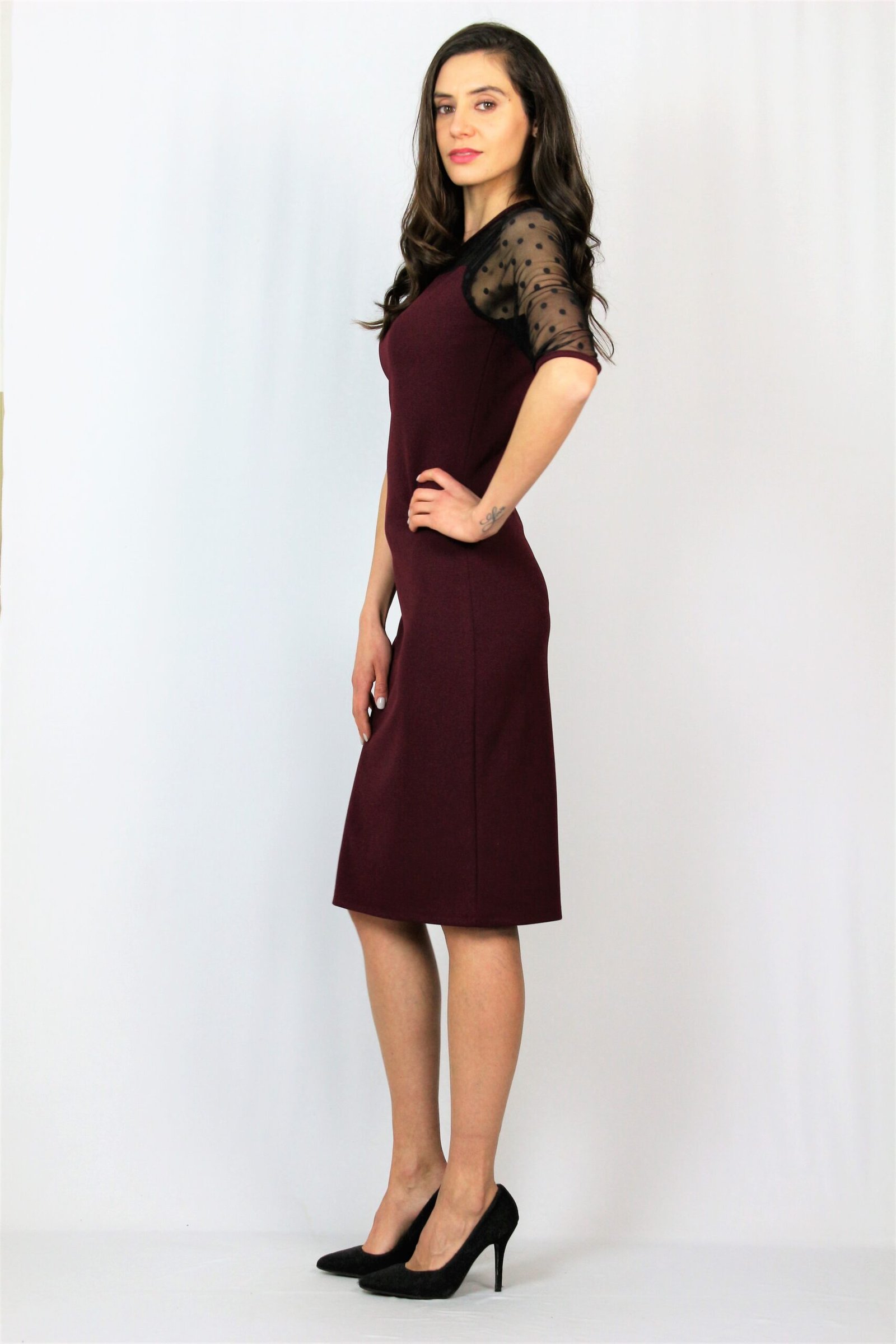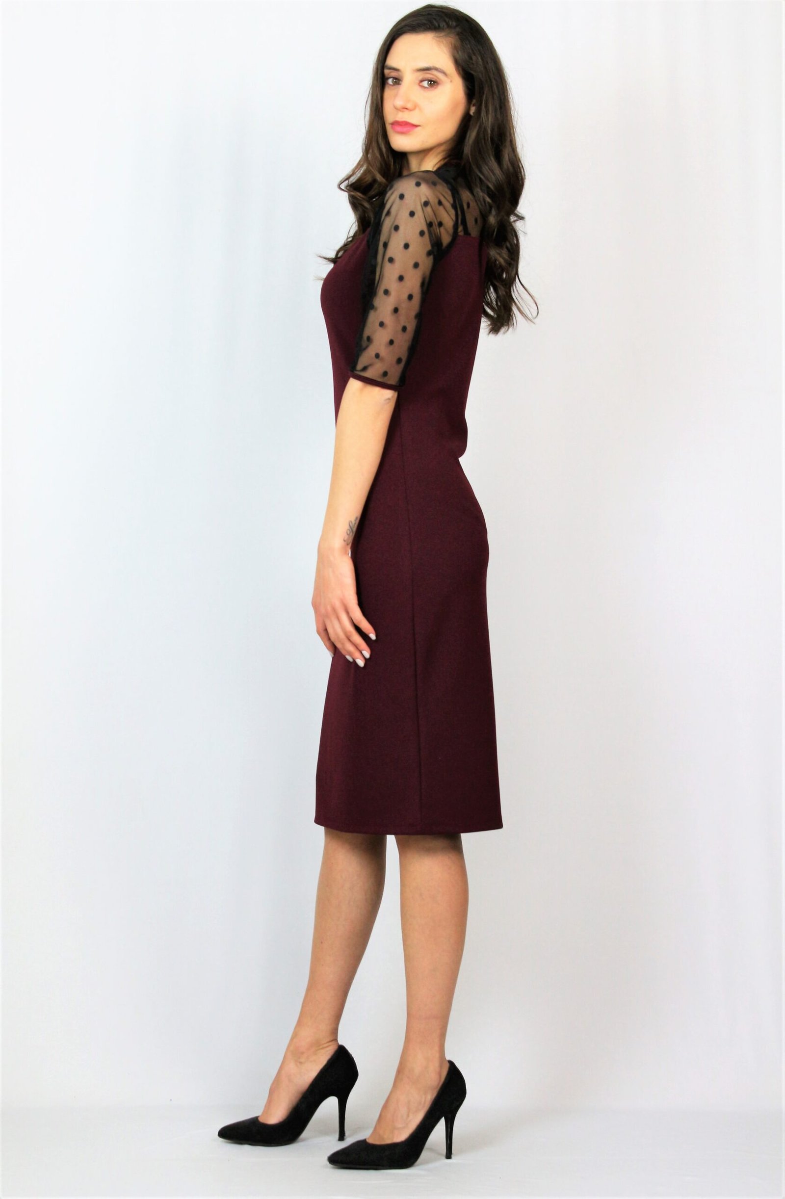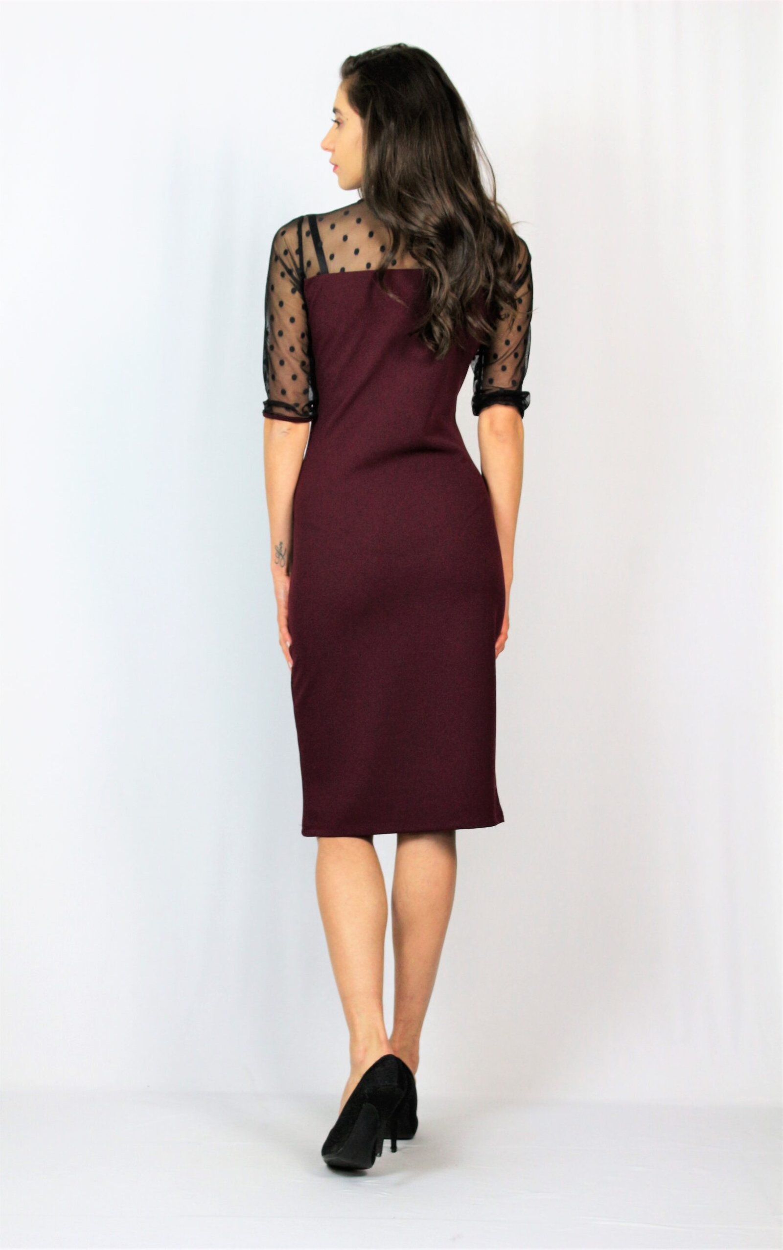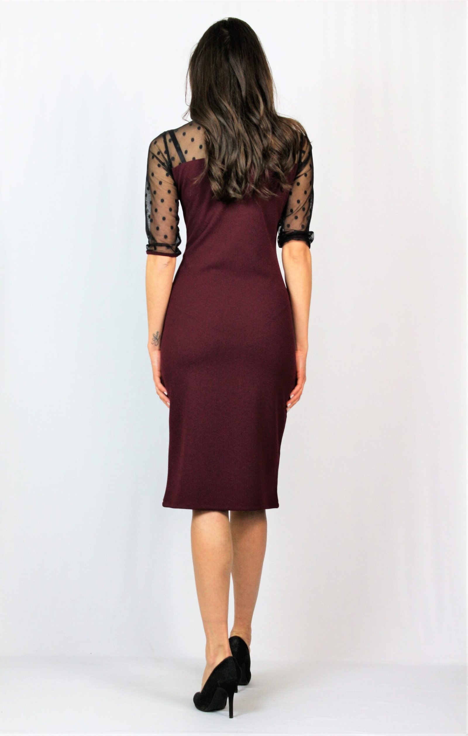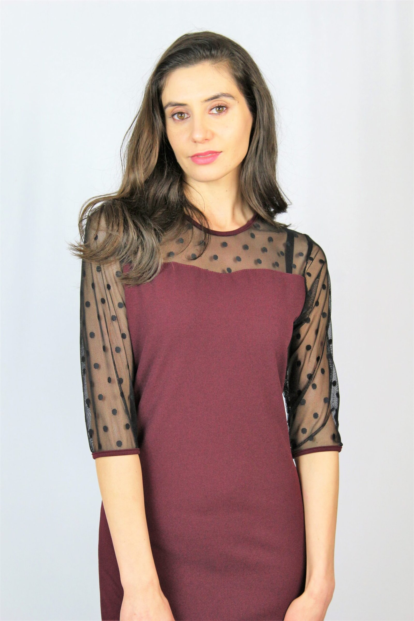 Права рокля с тюл точки бордо