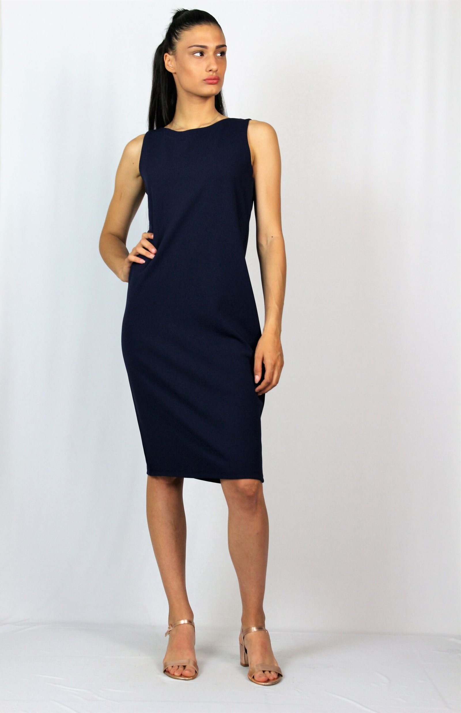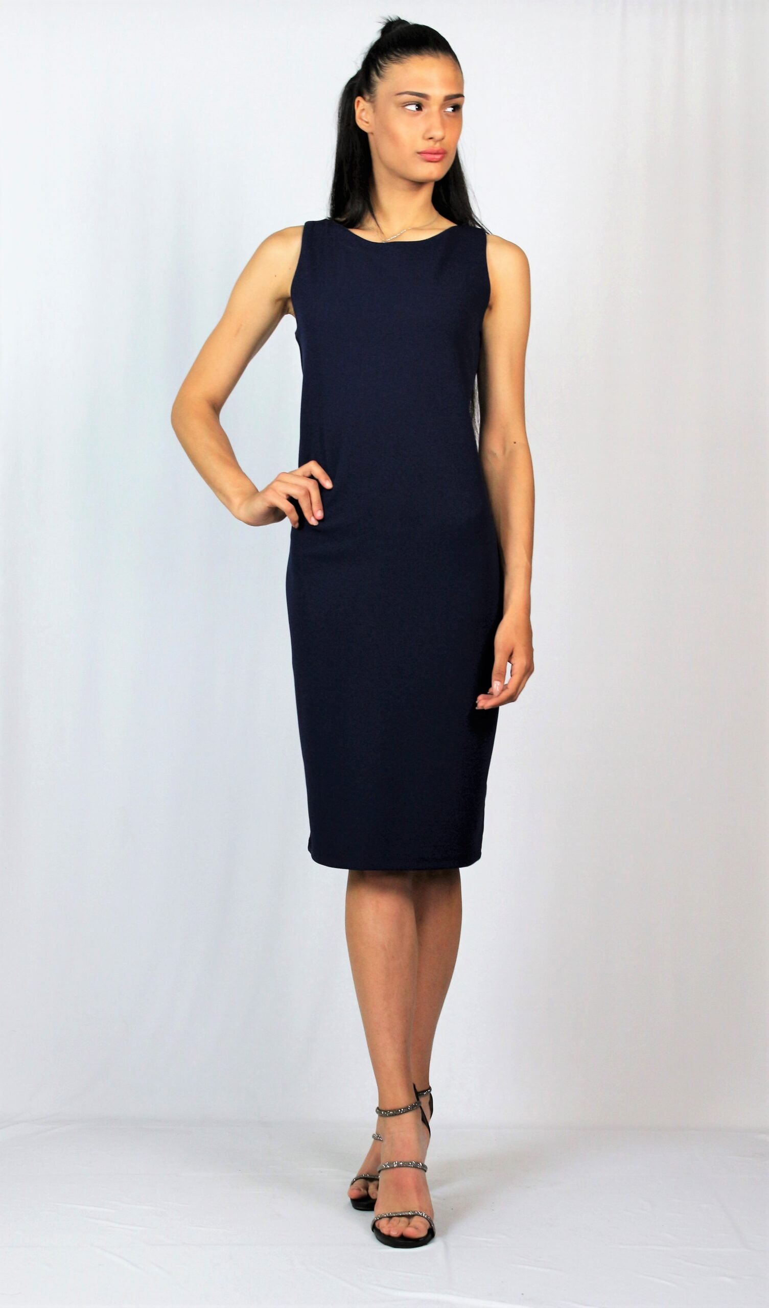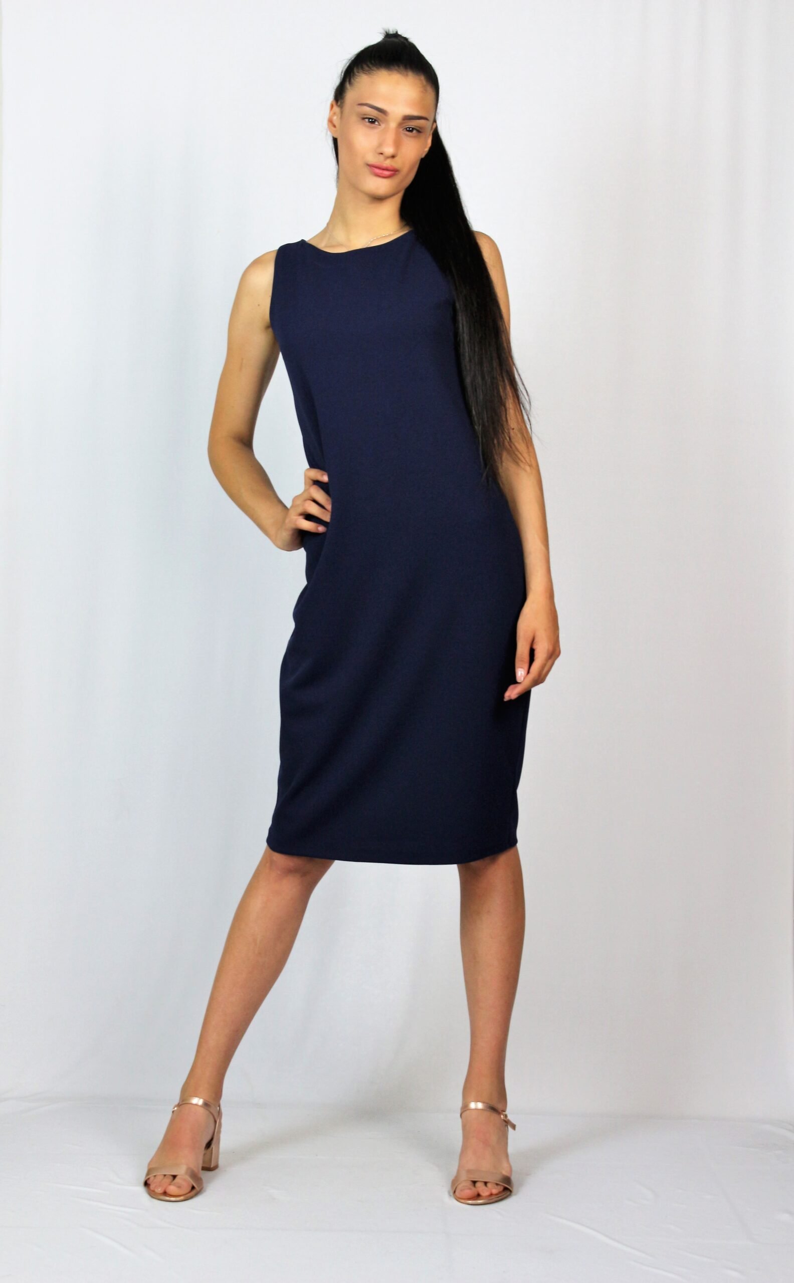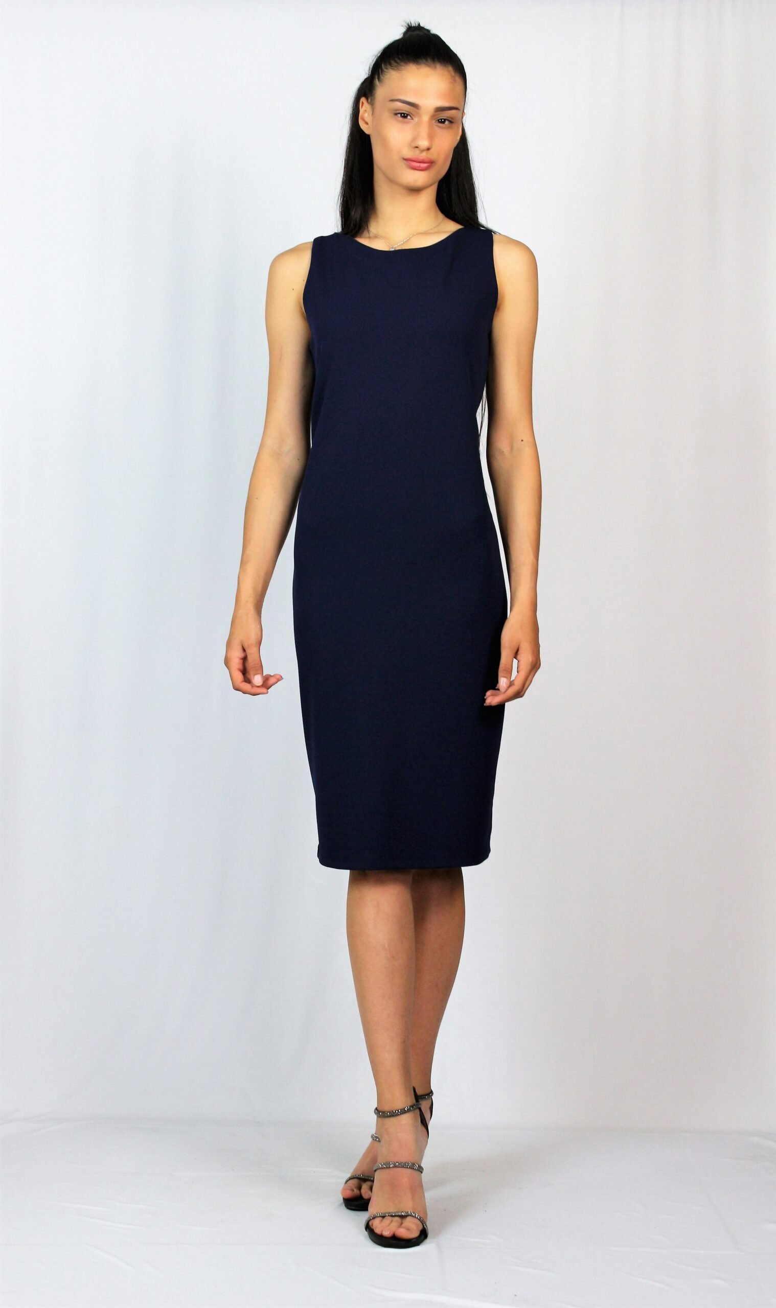 Рокля права изчистена кройка изработена от еластичен креп неопрен .