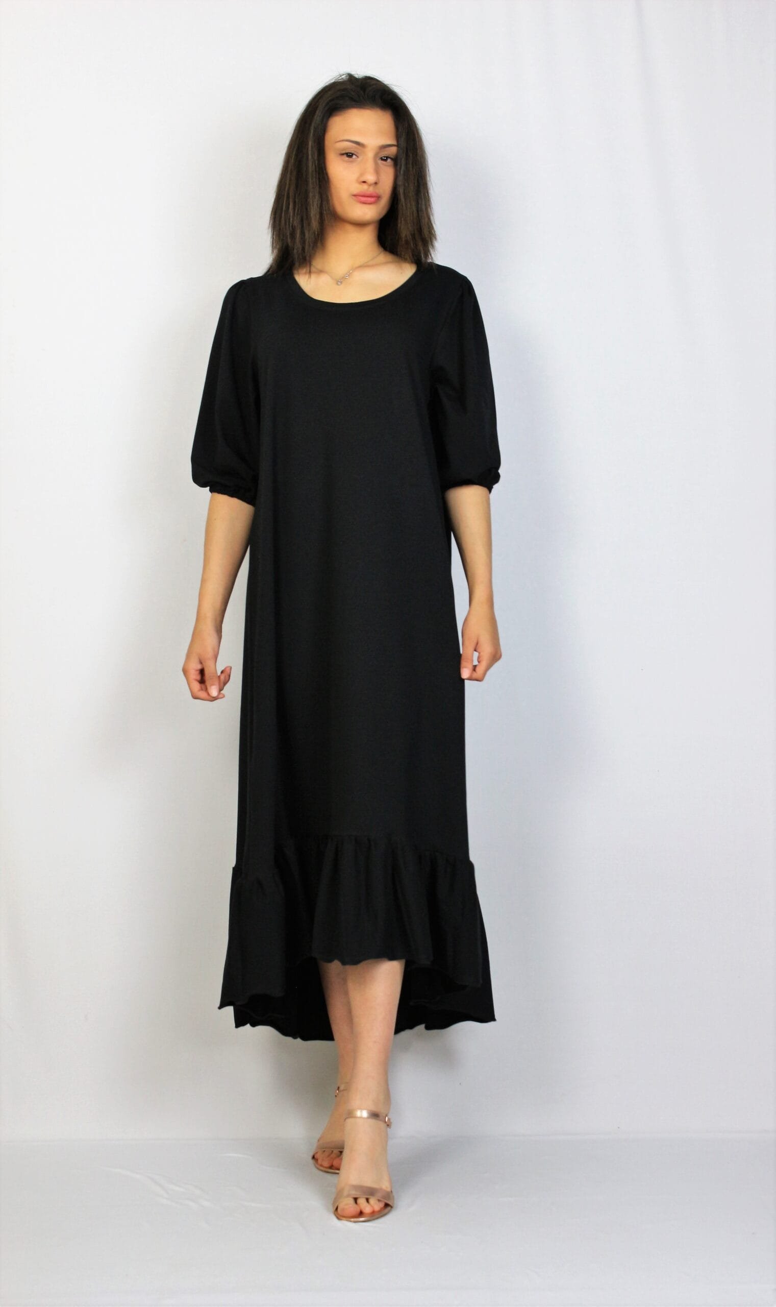 Права рокля с тюл точки черна