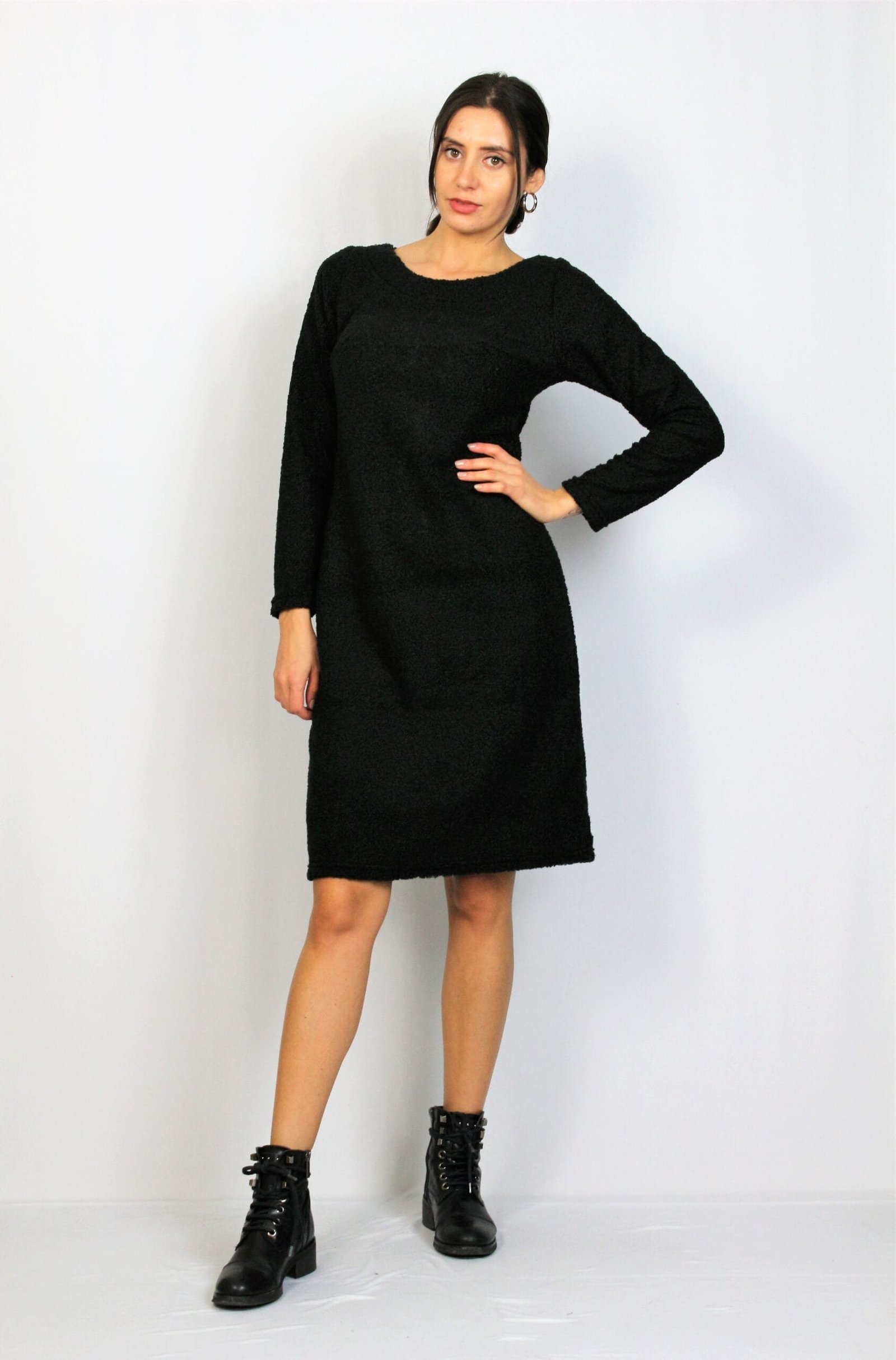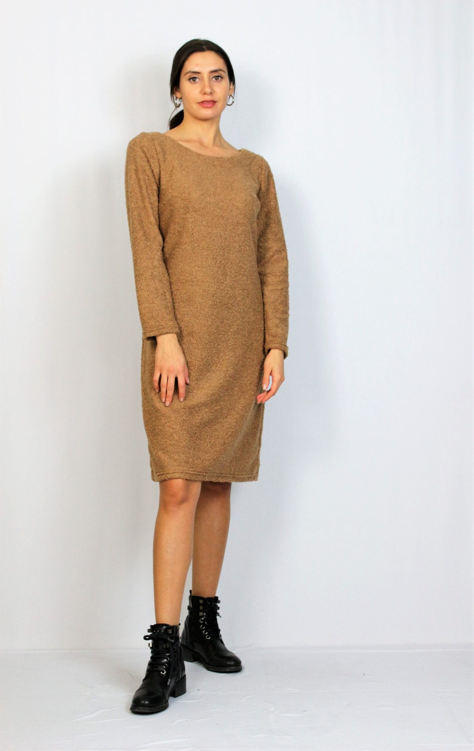 Рокля свободна кройка с дълъг ръкав и обло деколте . Подходяща за сезон есен-зима, мека и удобна за тялото.