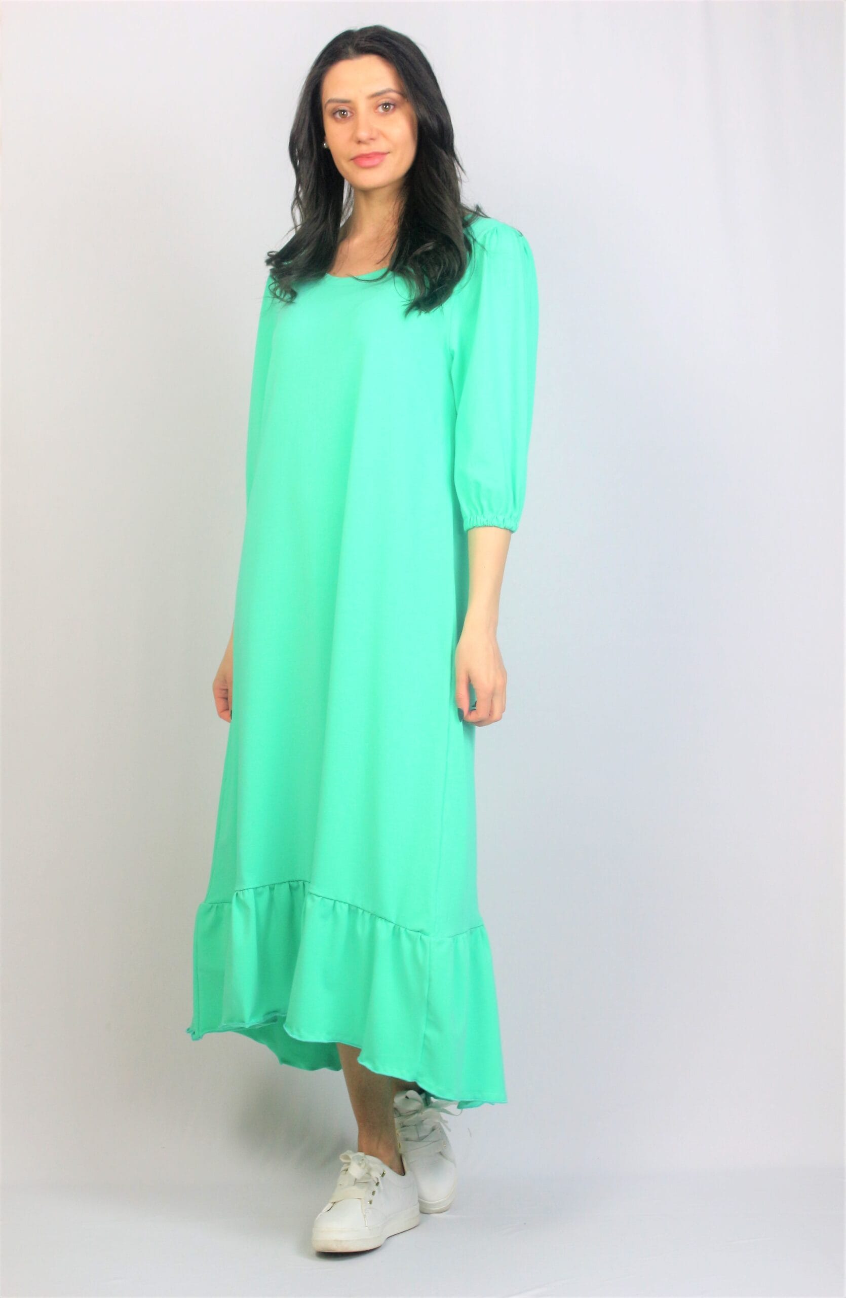 Рокля памук с къдра ментовозелена