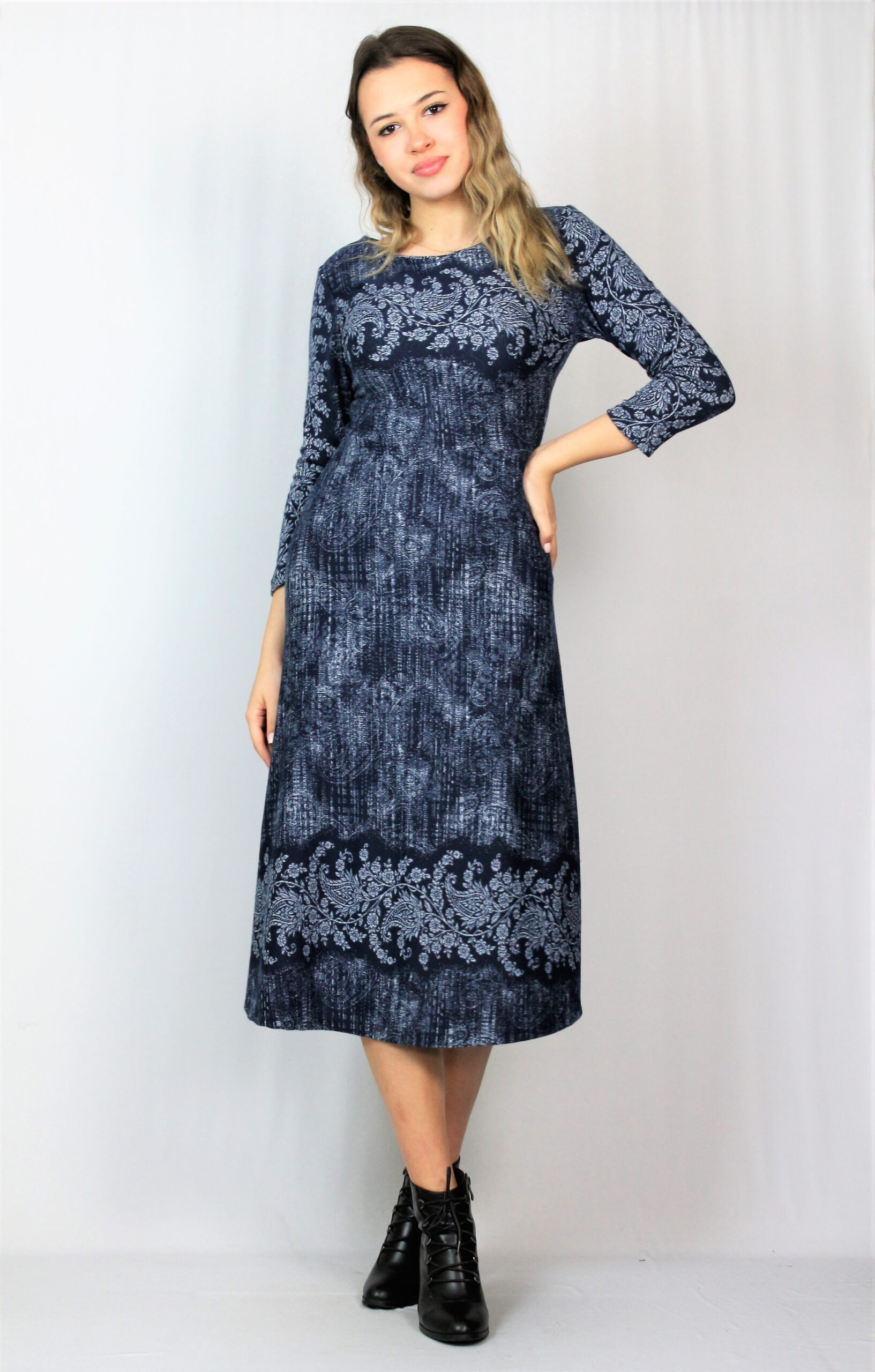 Рокля с бордюр тъмносиня