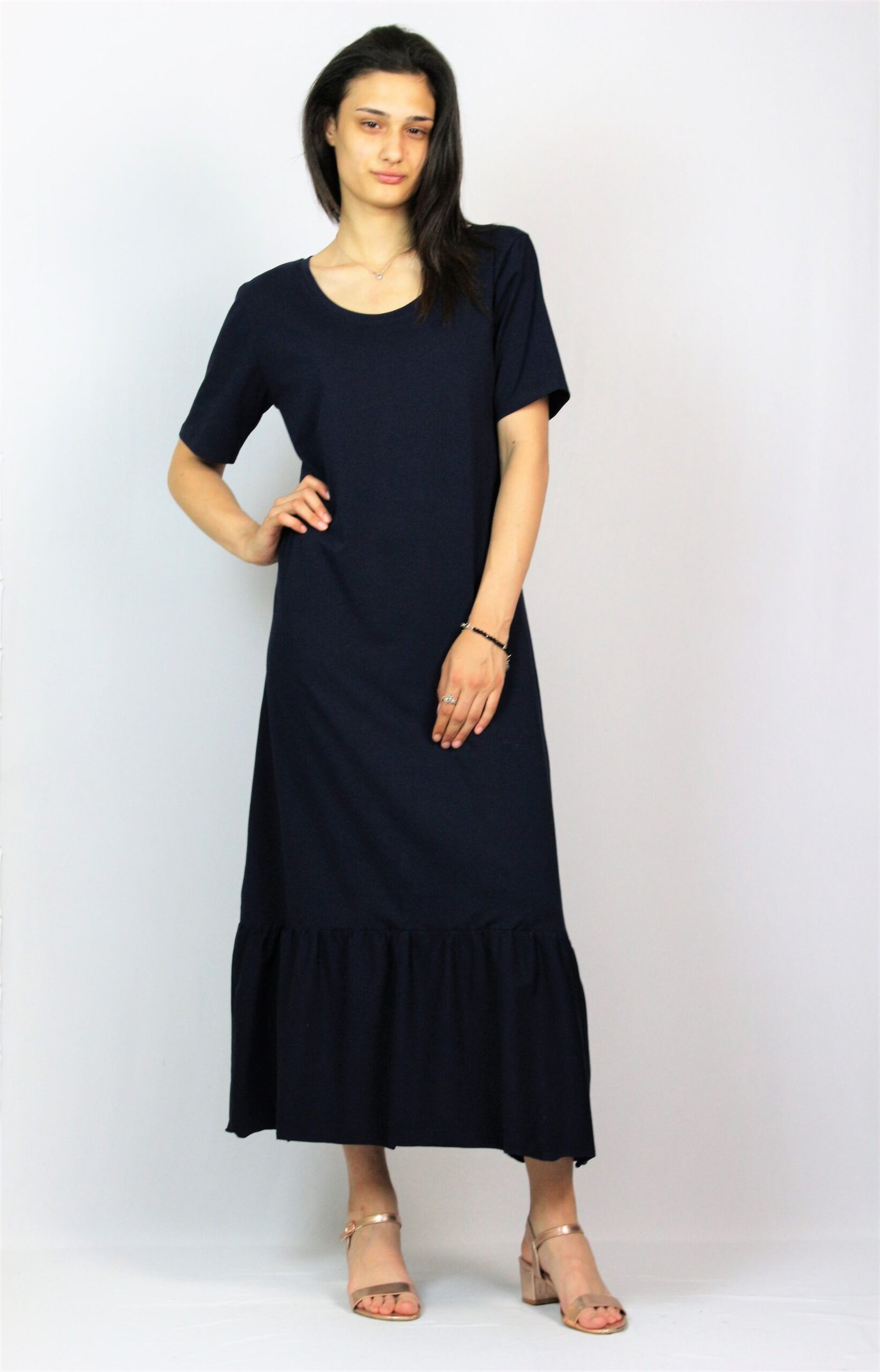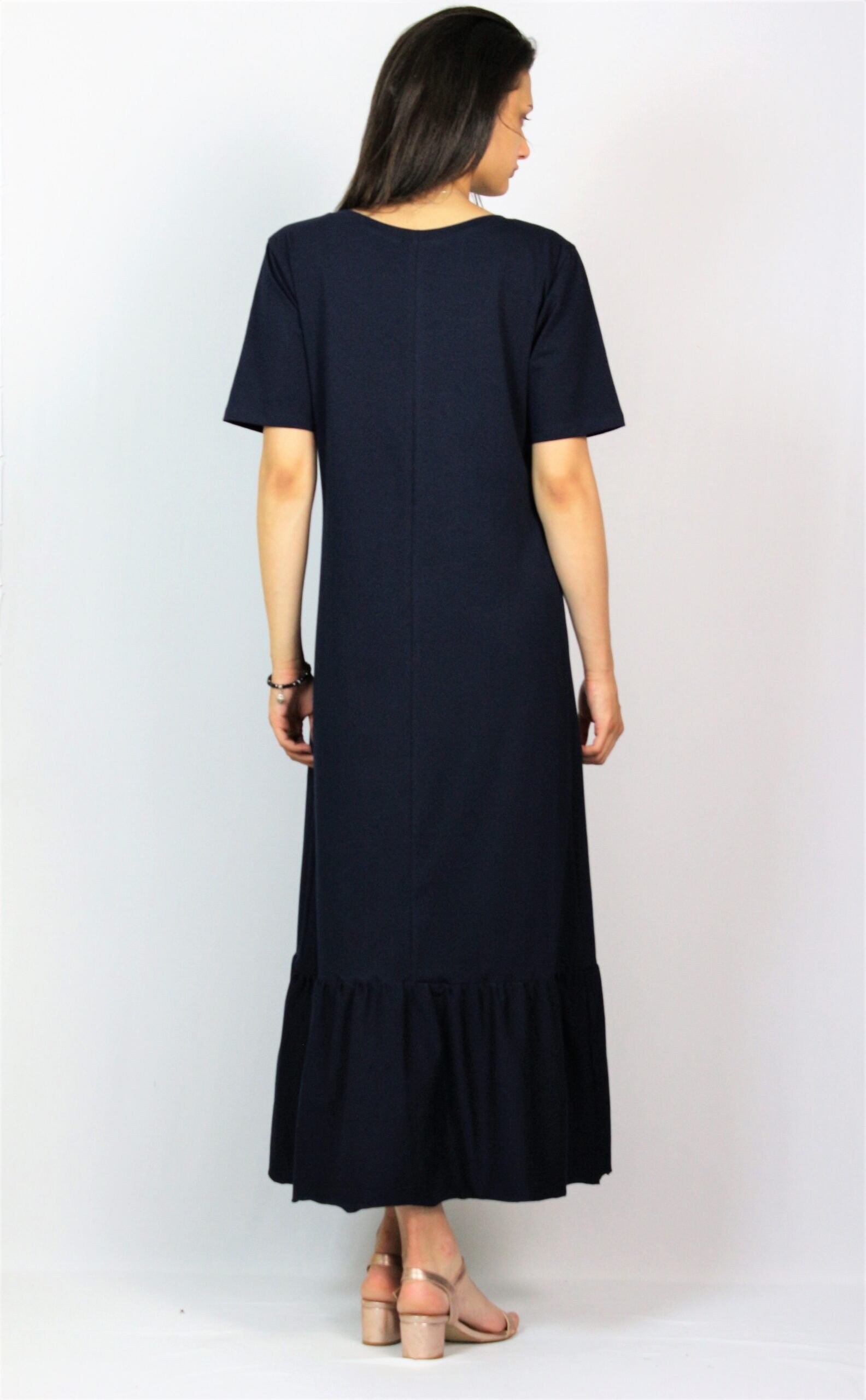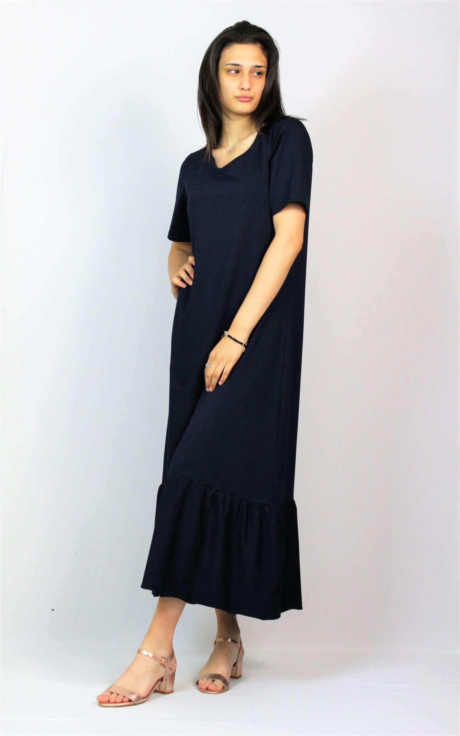 Рокля с къс ръкав и  къдра в долната част .Изработена от памучно трико.