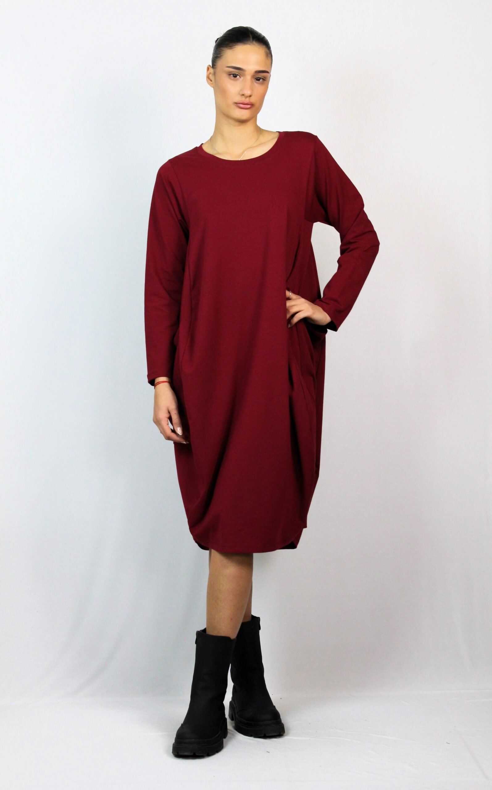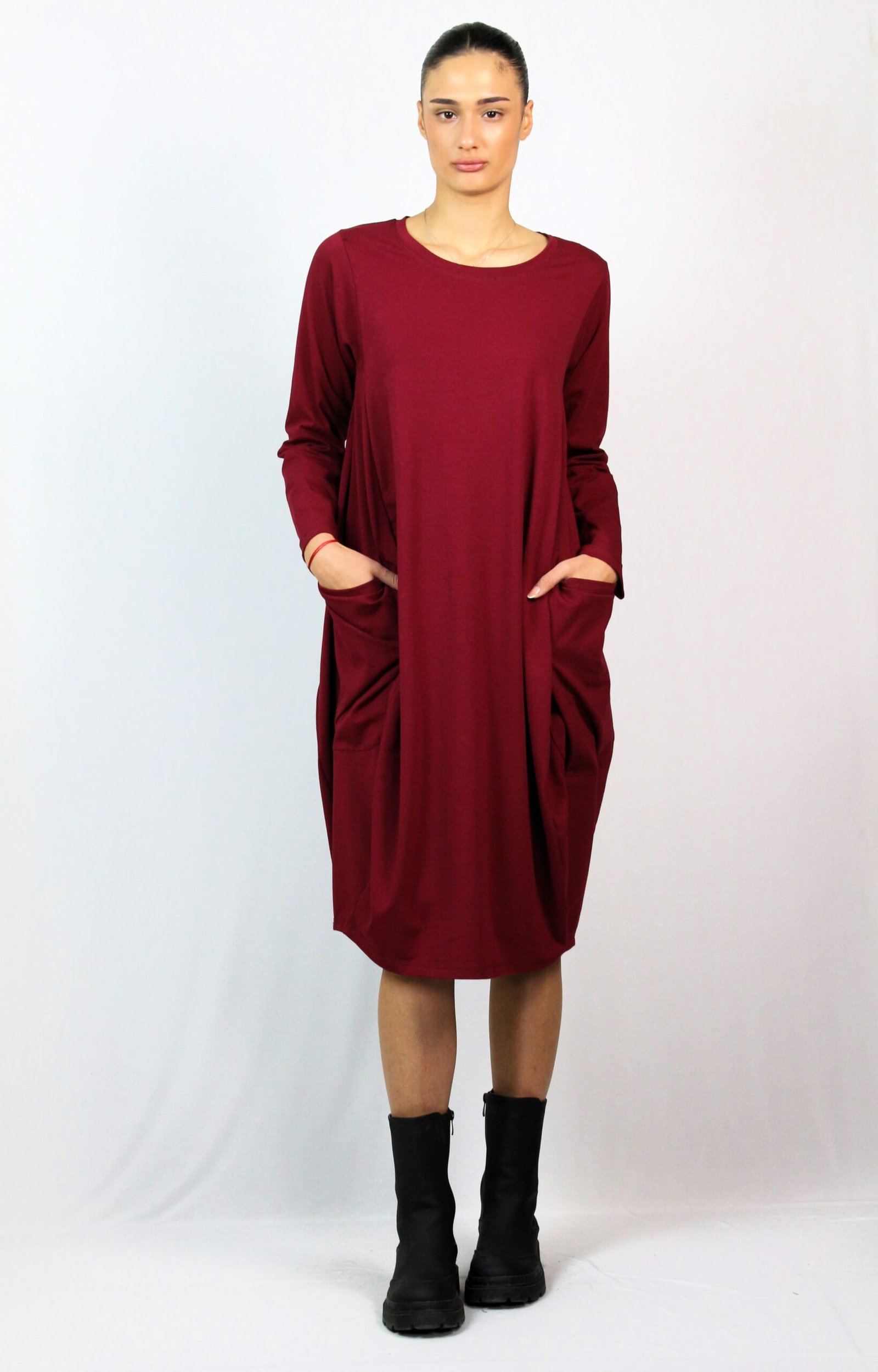 Рокля свободно падаща надолу ,тип балон с два джоба.Изработена от памучно трико с еластан.Широка и удобна за носене.