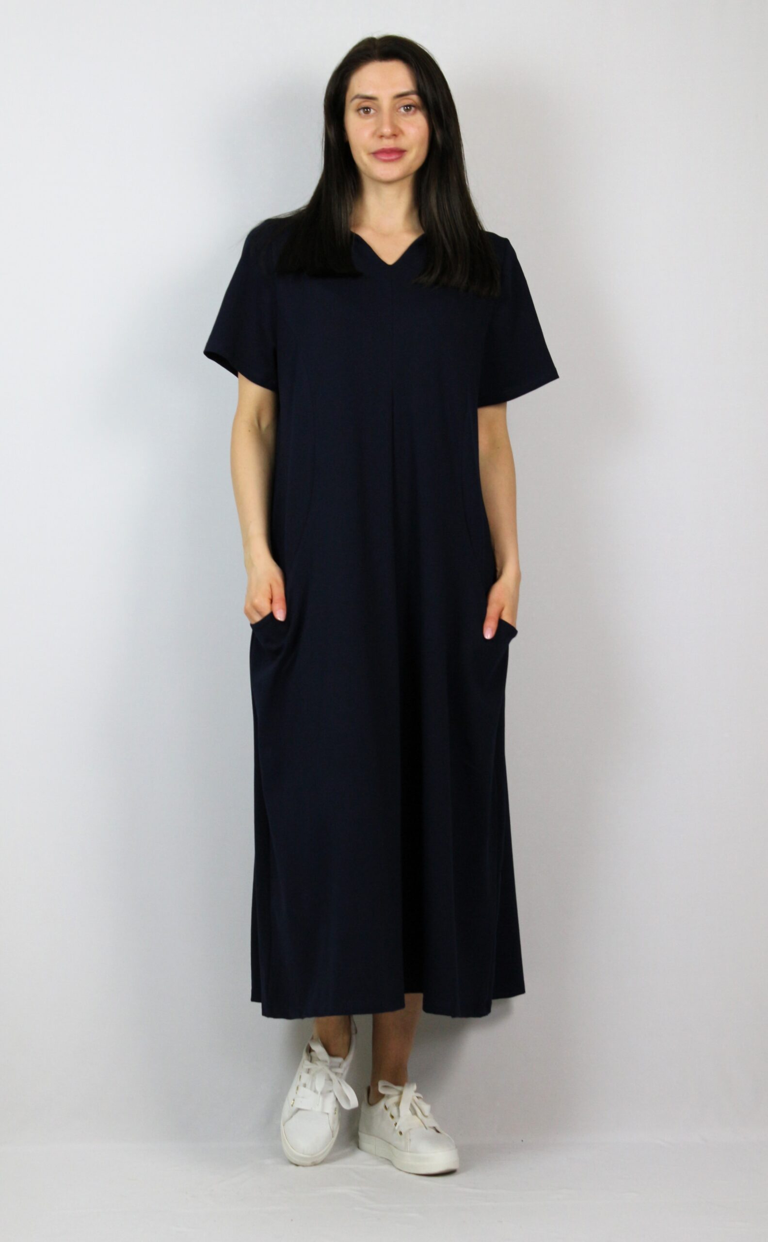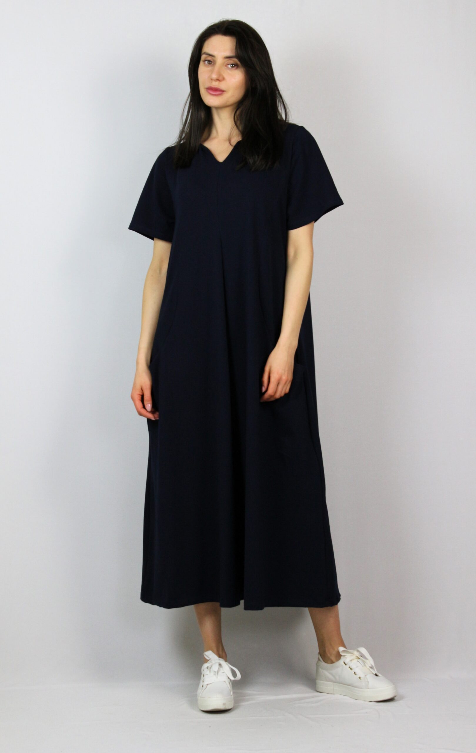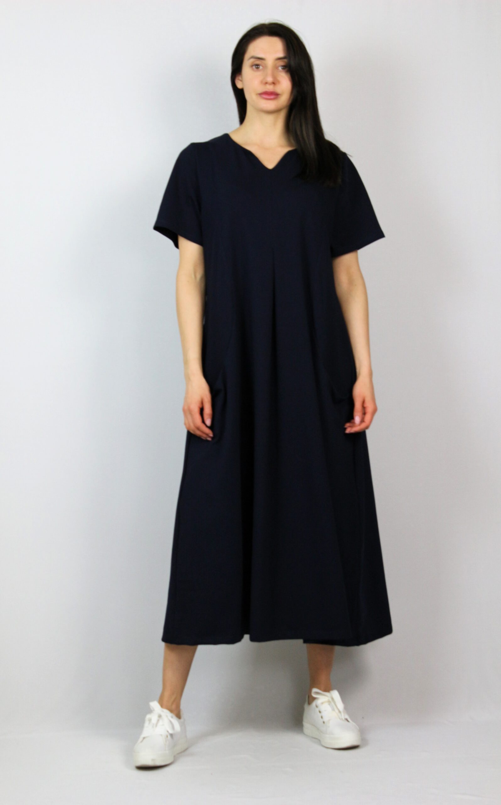 Свободна рокля с два вътрешни джоба от памучно трико.
