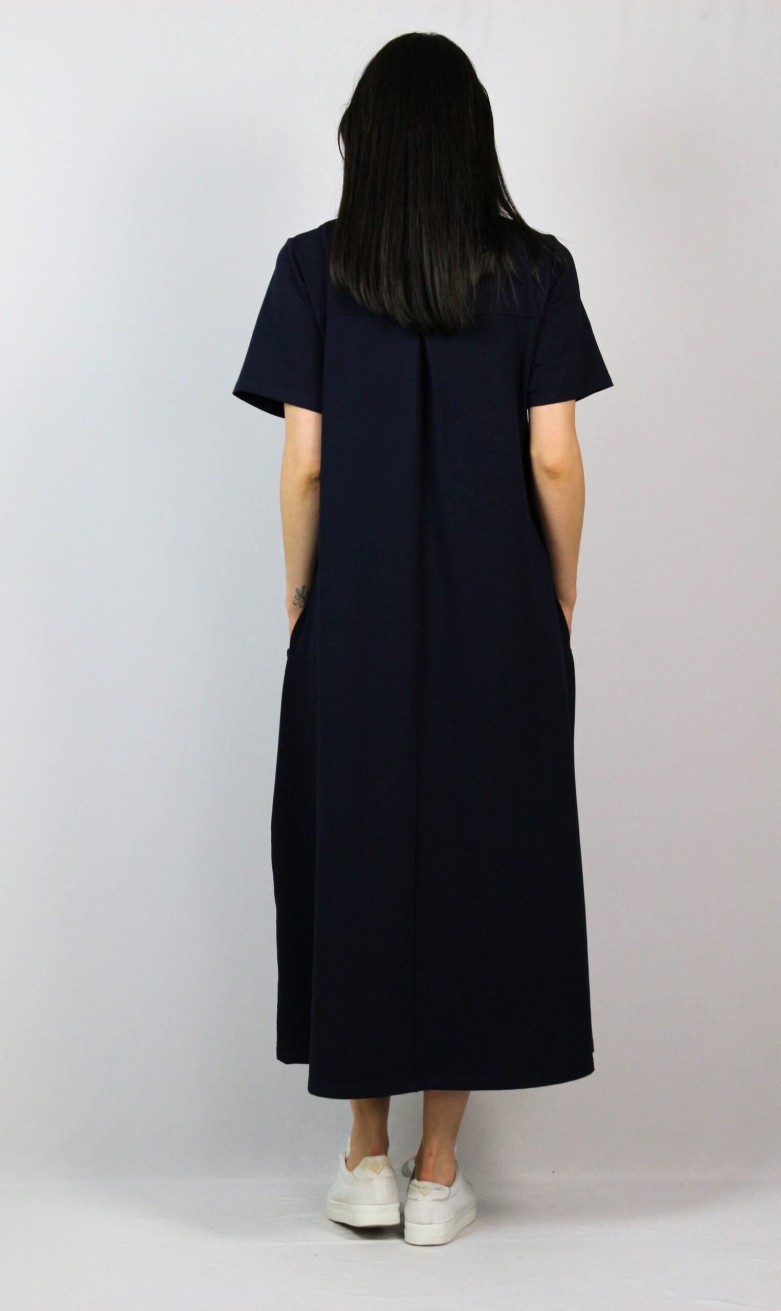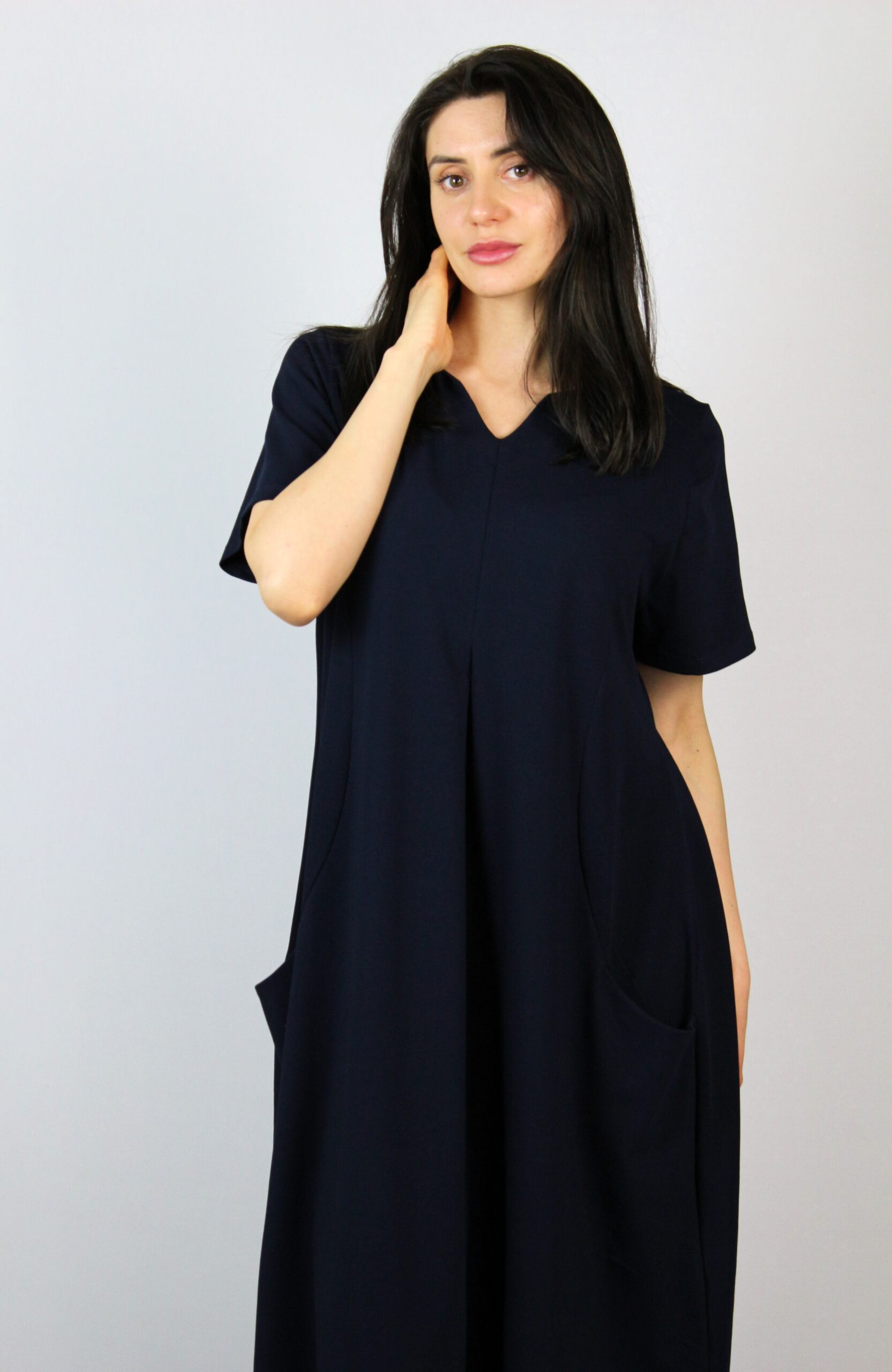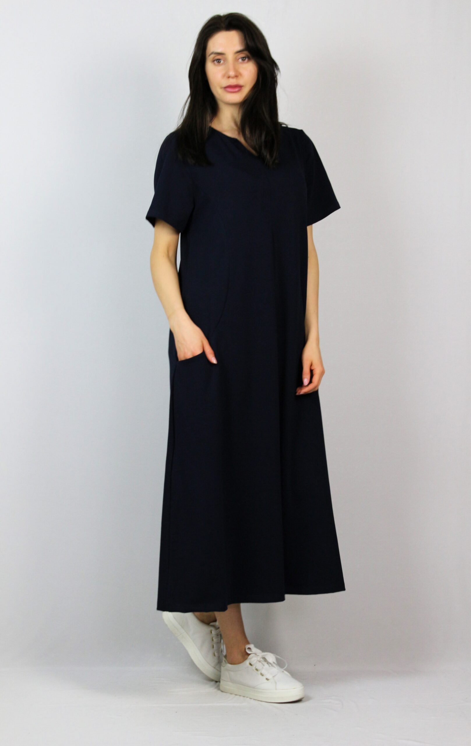Свободна рокля с два вътрешни джоба от памучно трико.