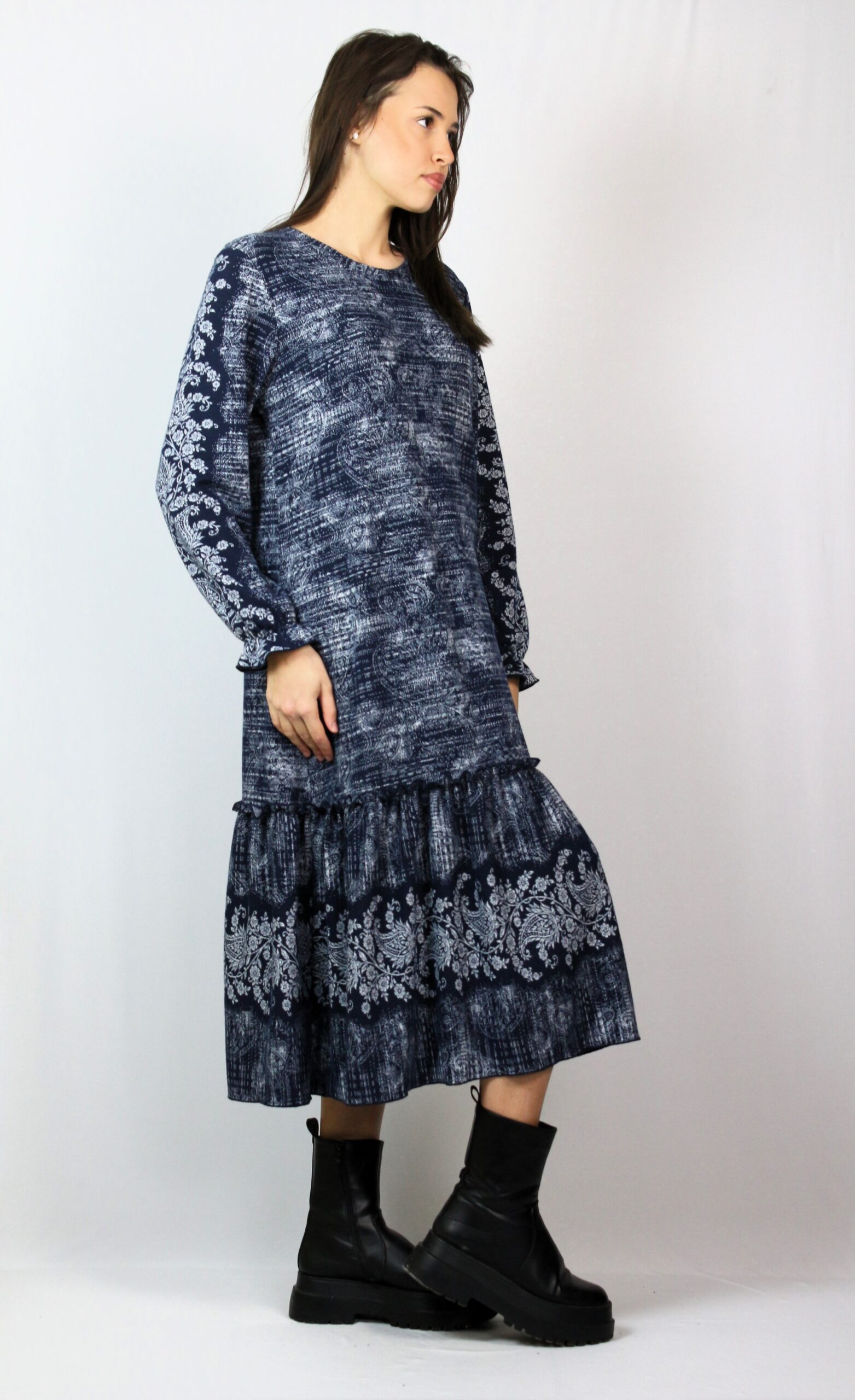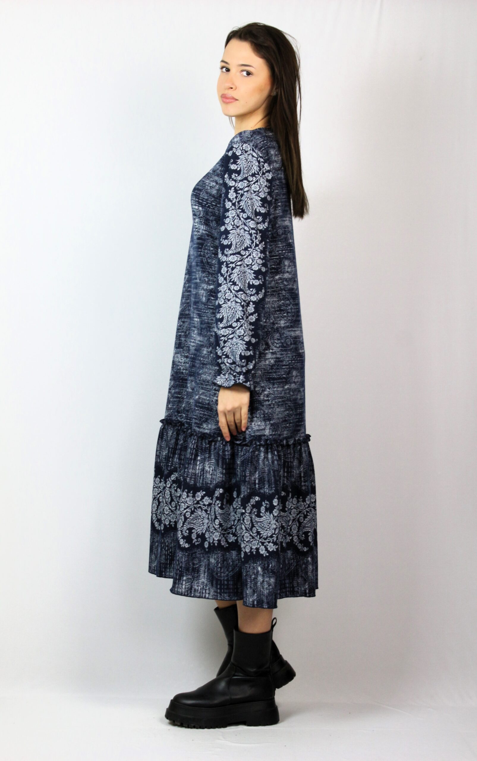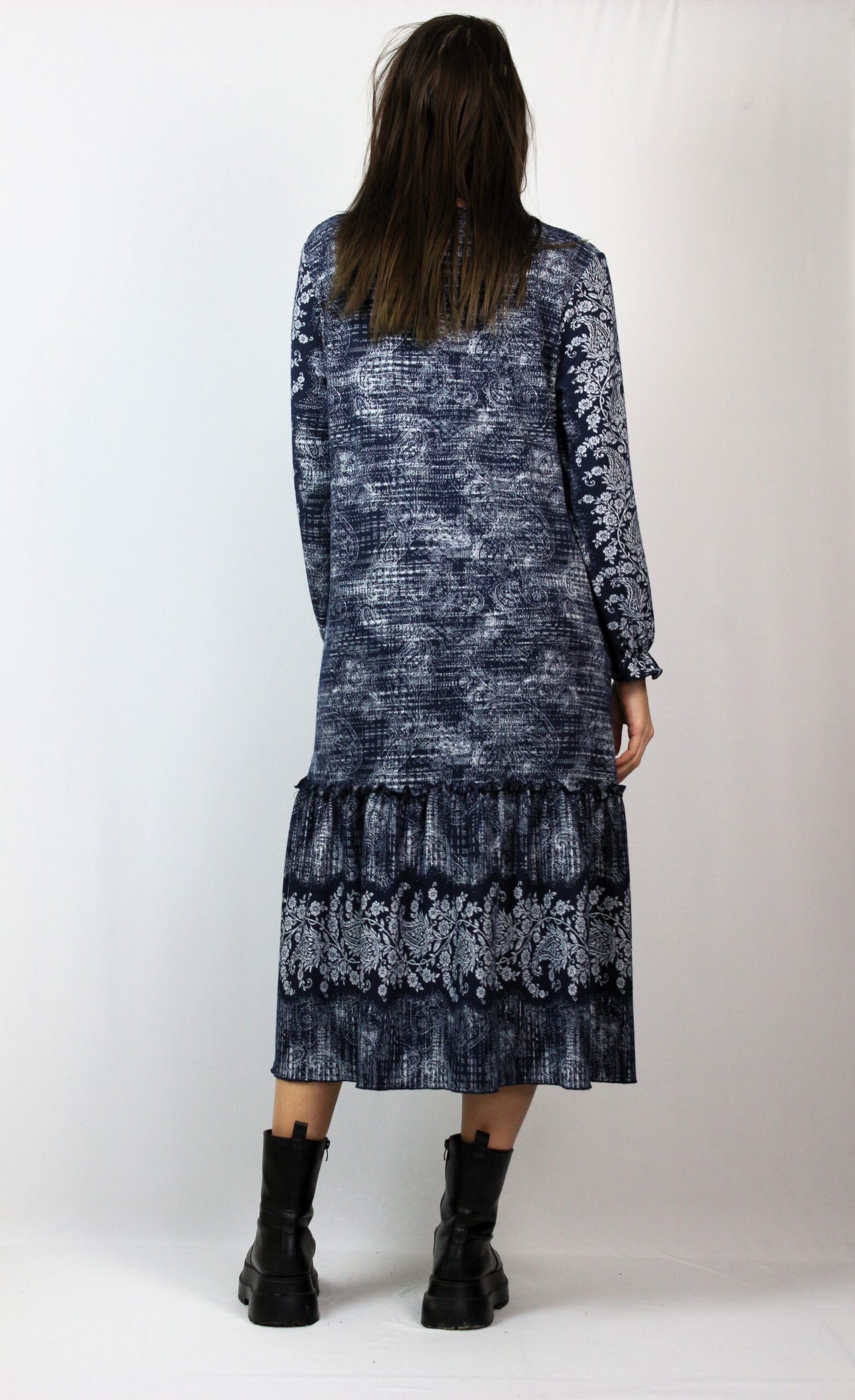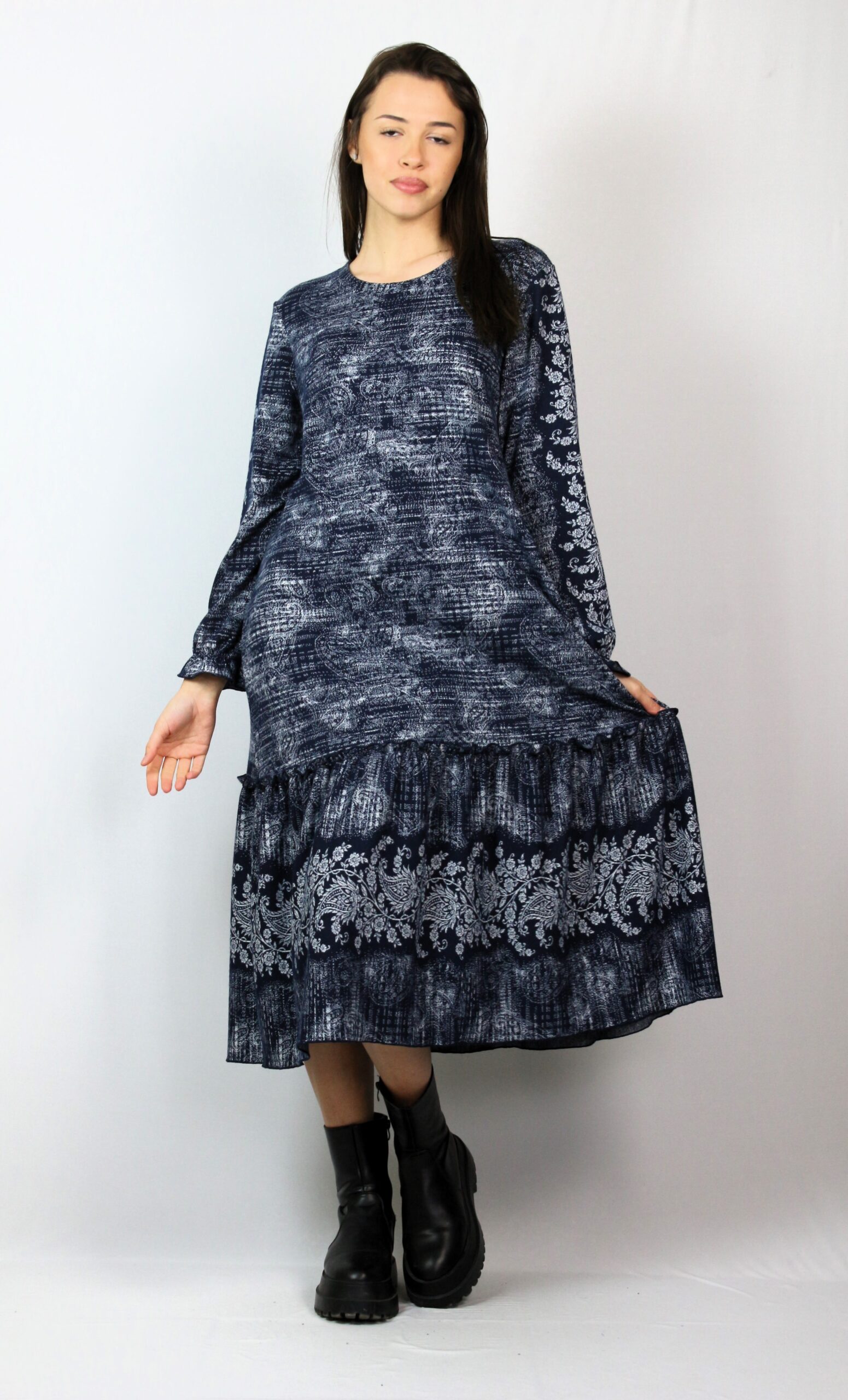 Свободно падаща рокляя с бордюр  в долната част и на ръкавите  ,мека и еластична материя ,подходяща за сезона.
