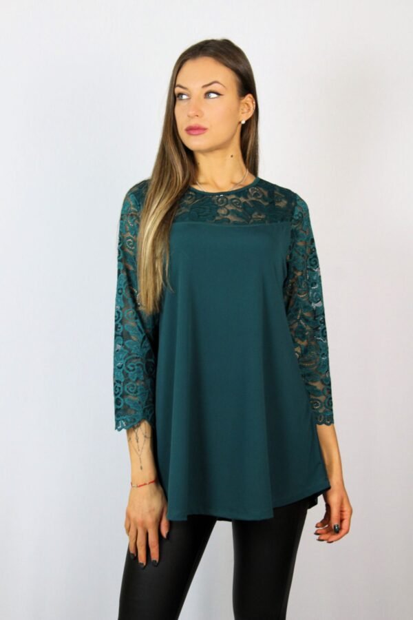 Туника комбинирана с дантела маслено зелена