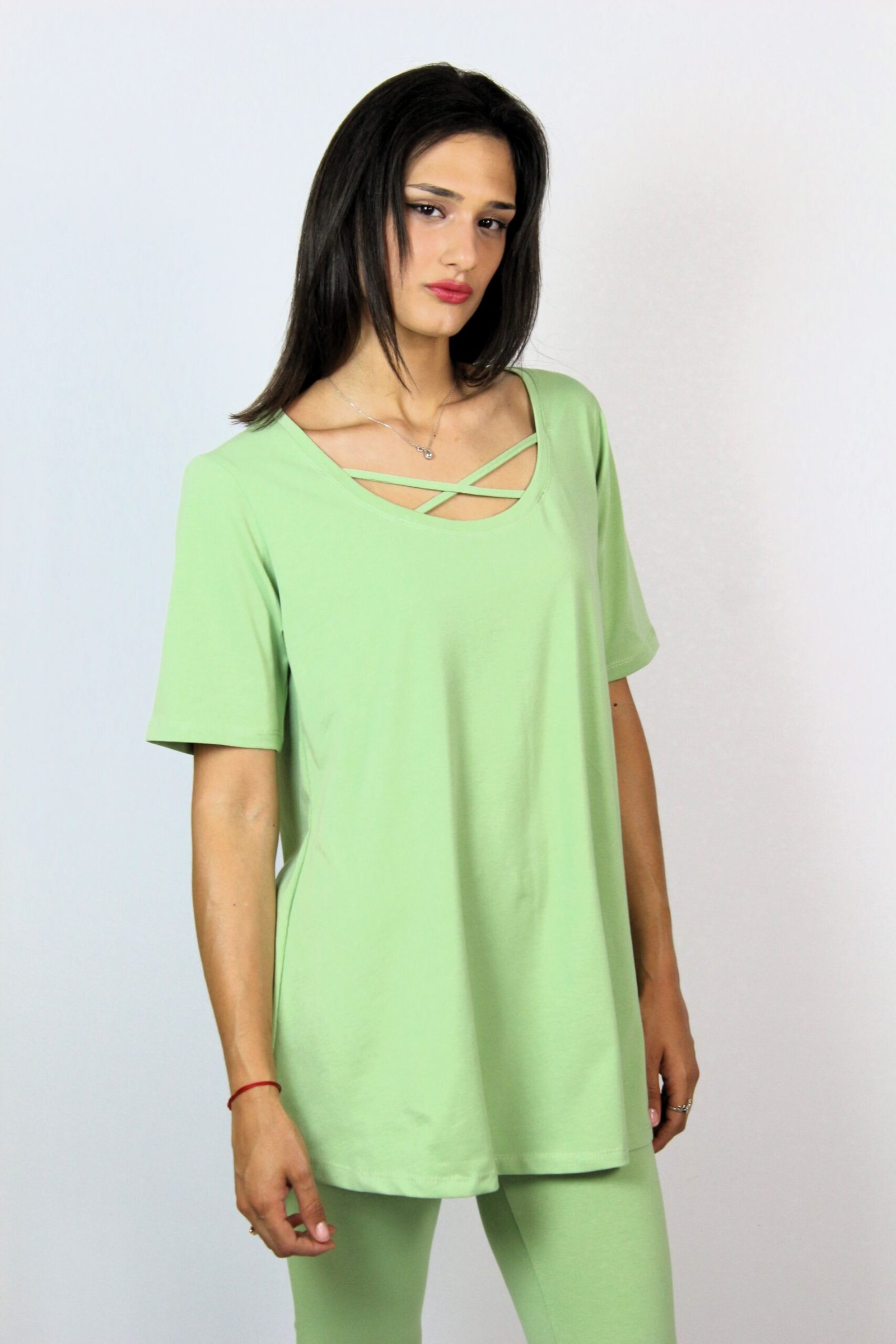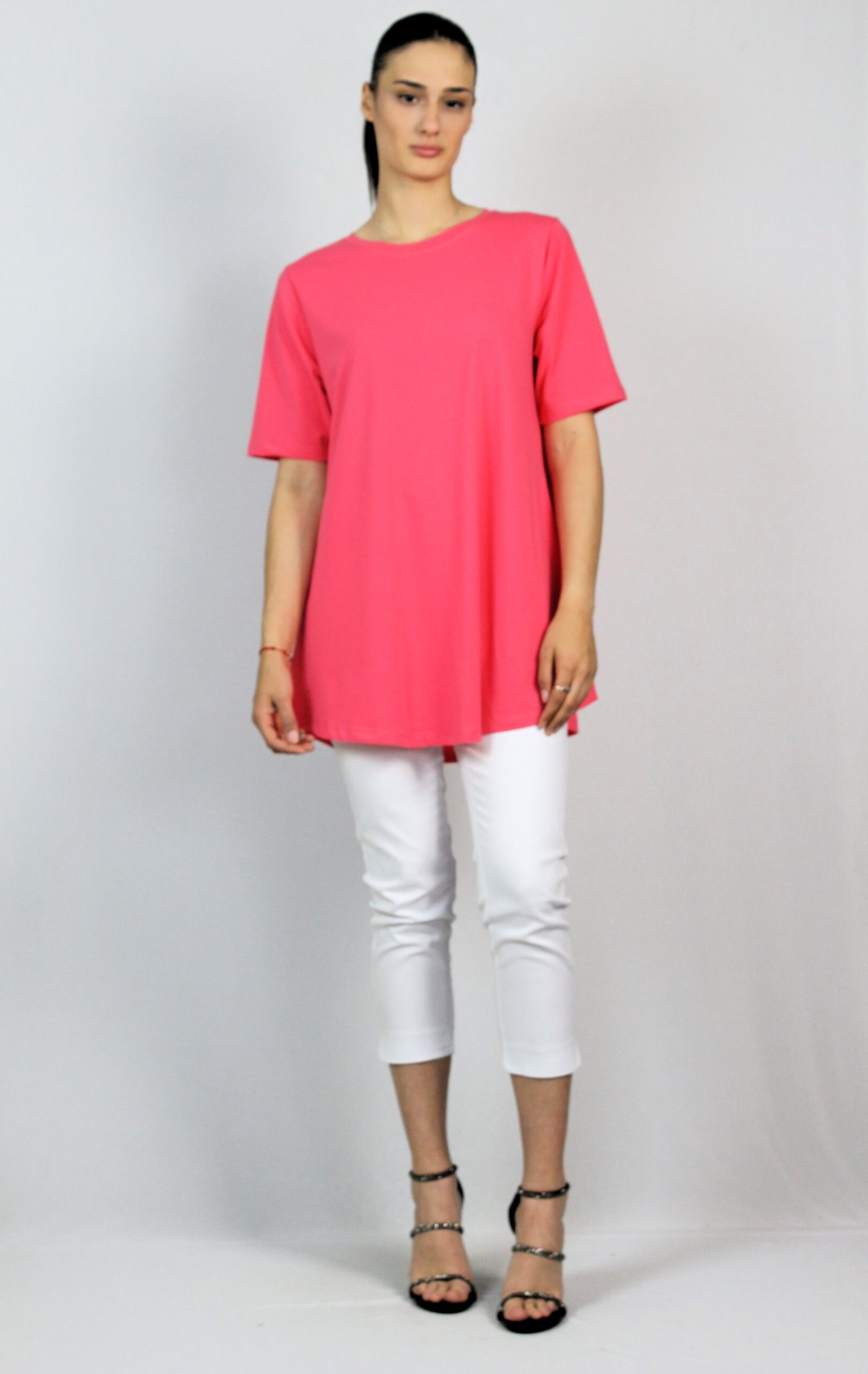 Туника свободно падаща надолу, разкроена кройка с къс ръкав . Изработена от висококачествено памучно