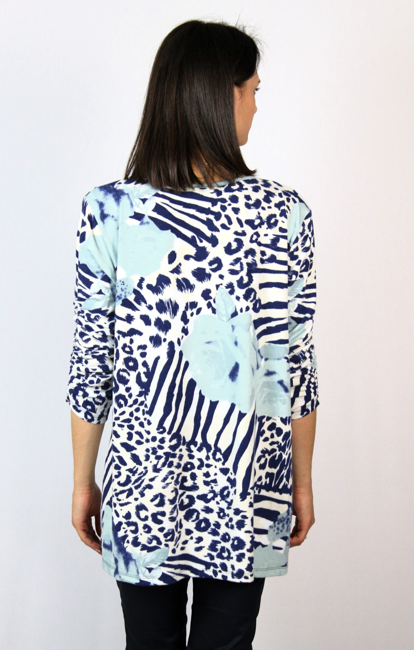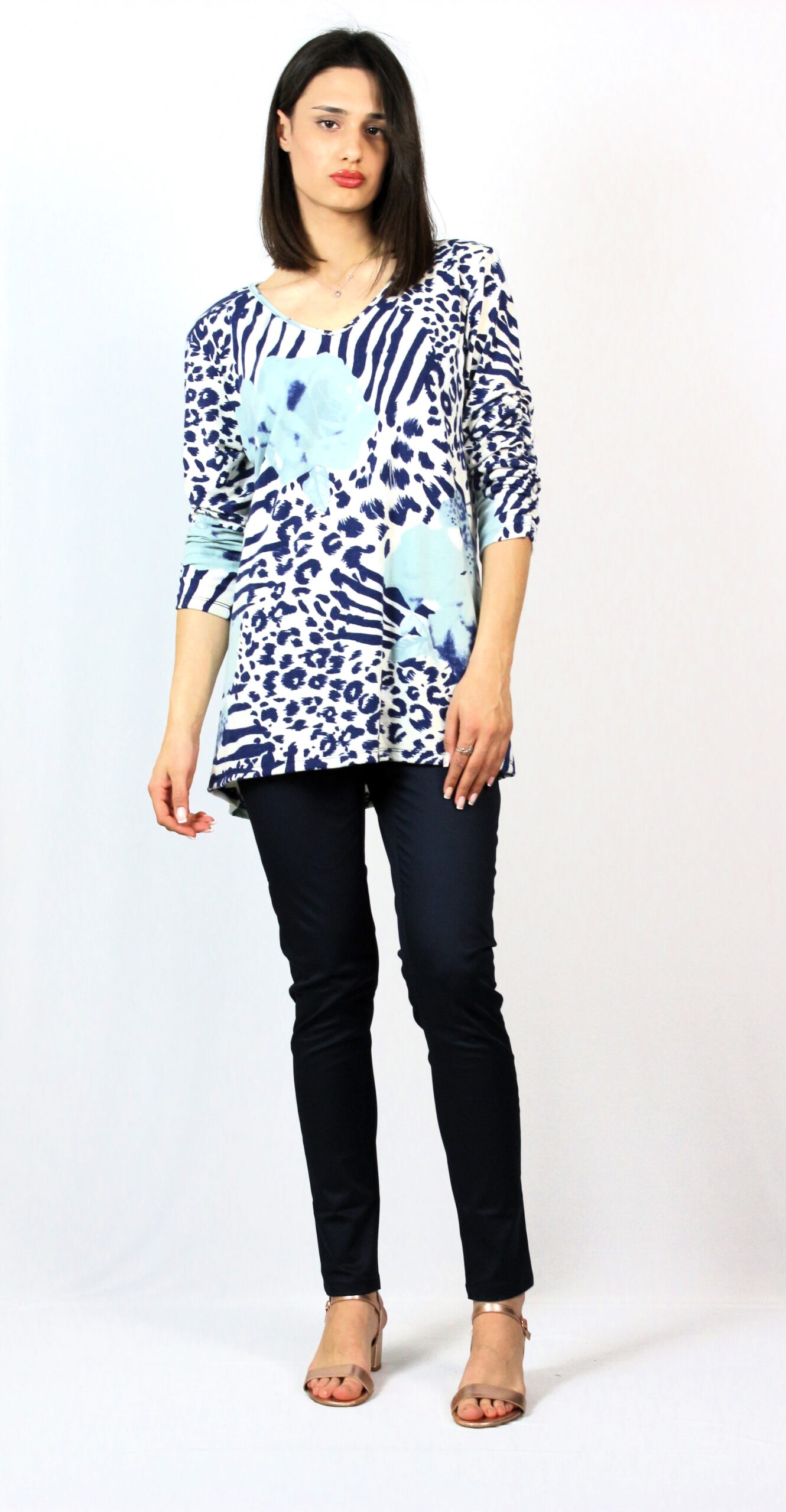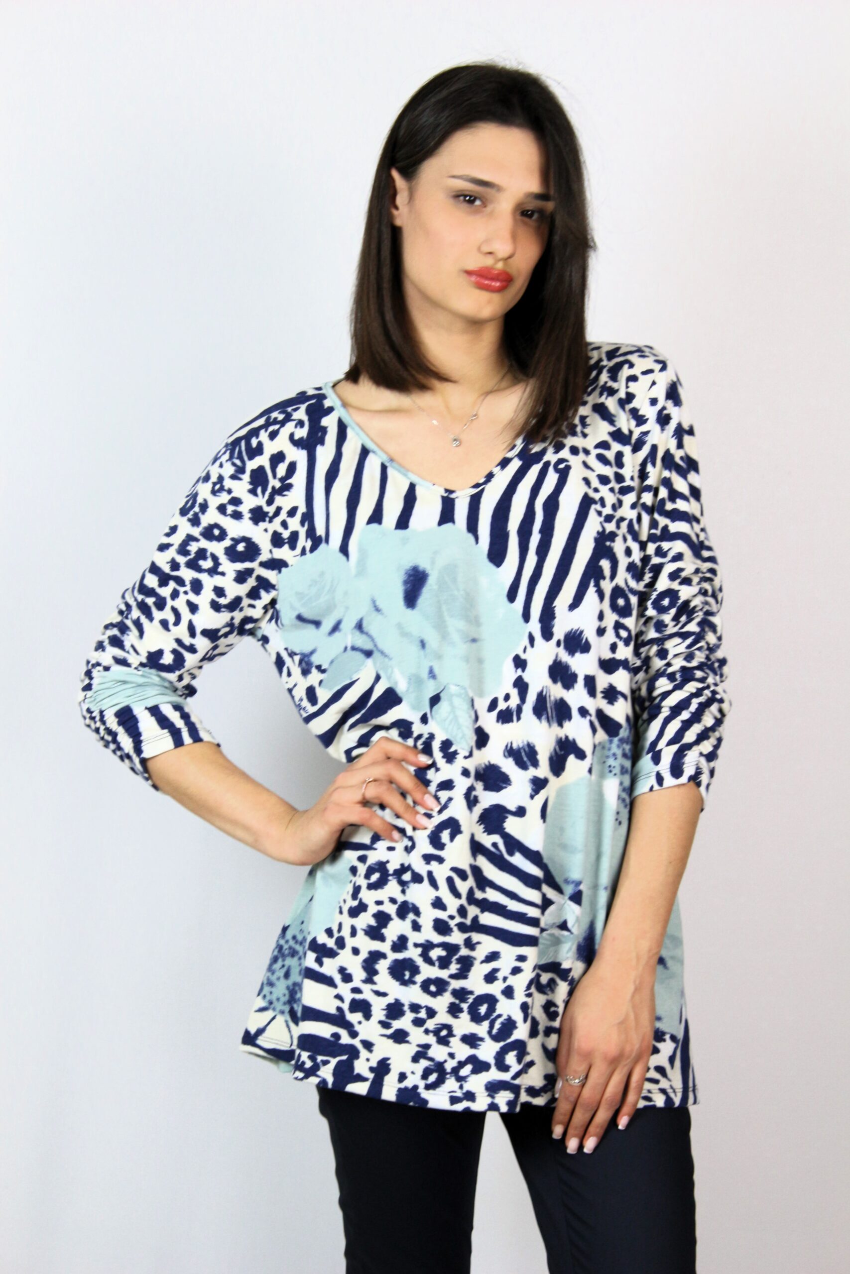 Туника свободно падаща надолу с набрани ръкави с ластик , изработена от вискозно еластично трико.