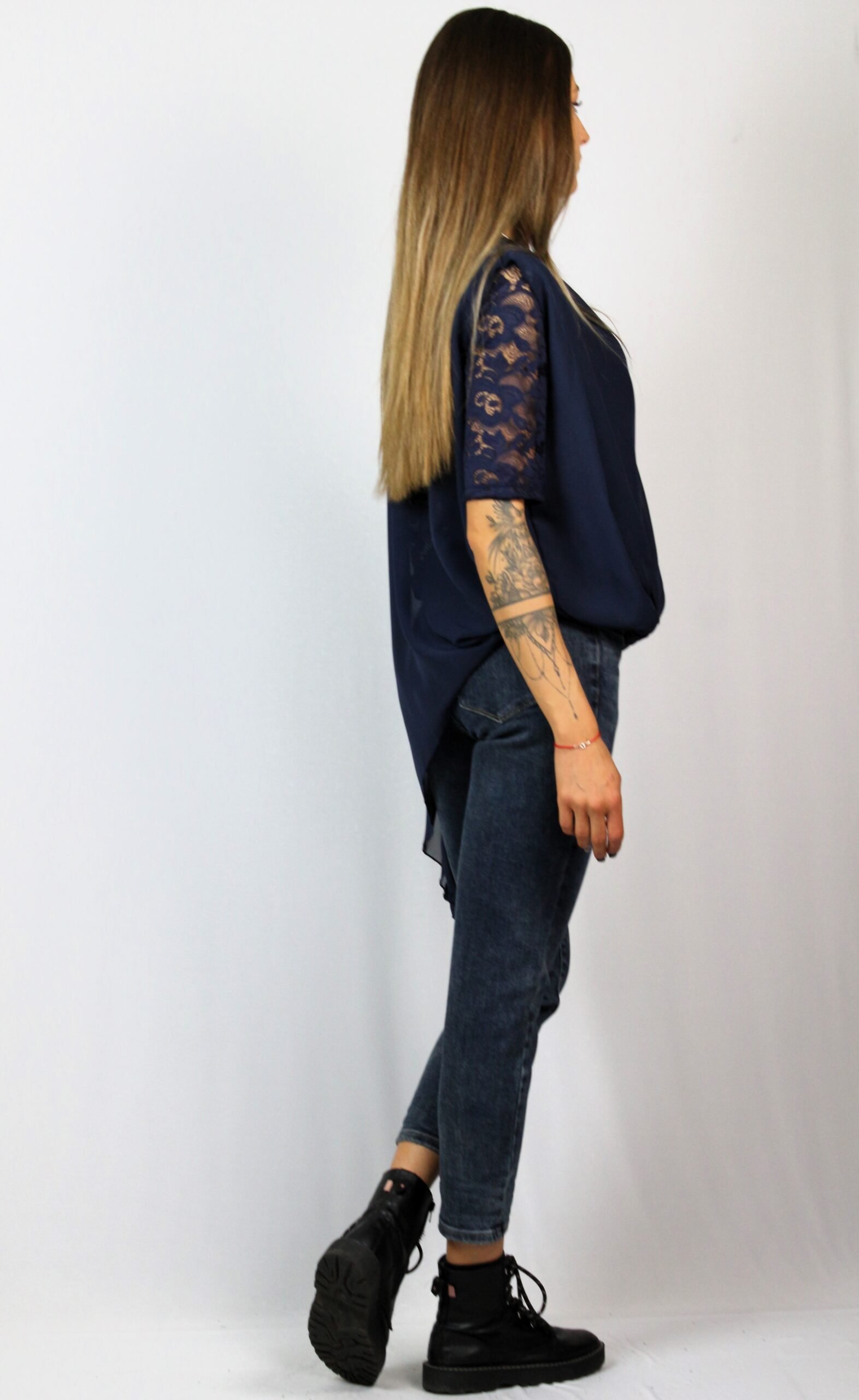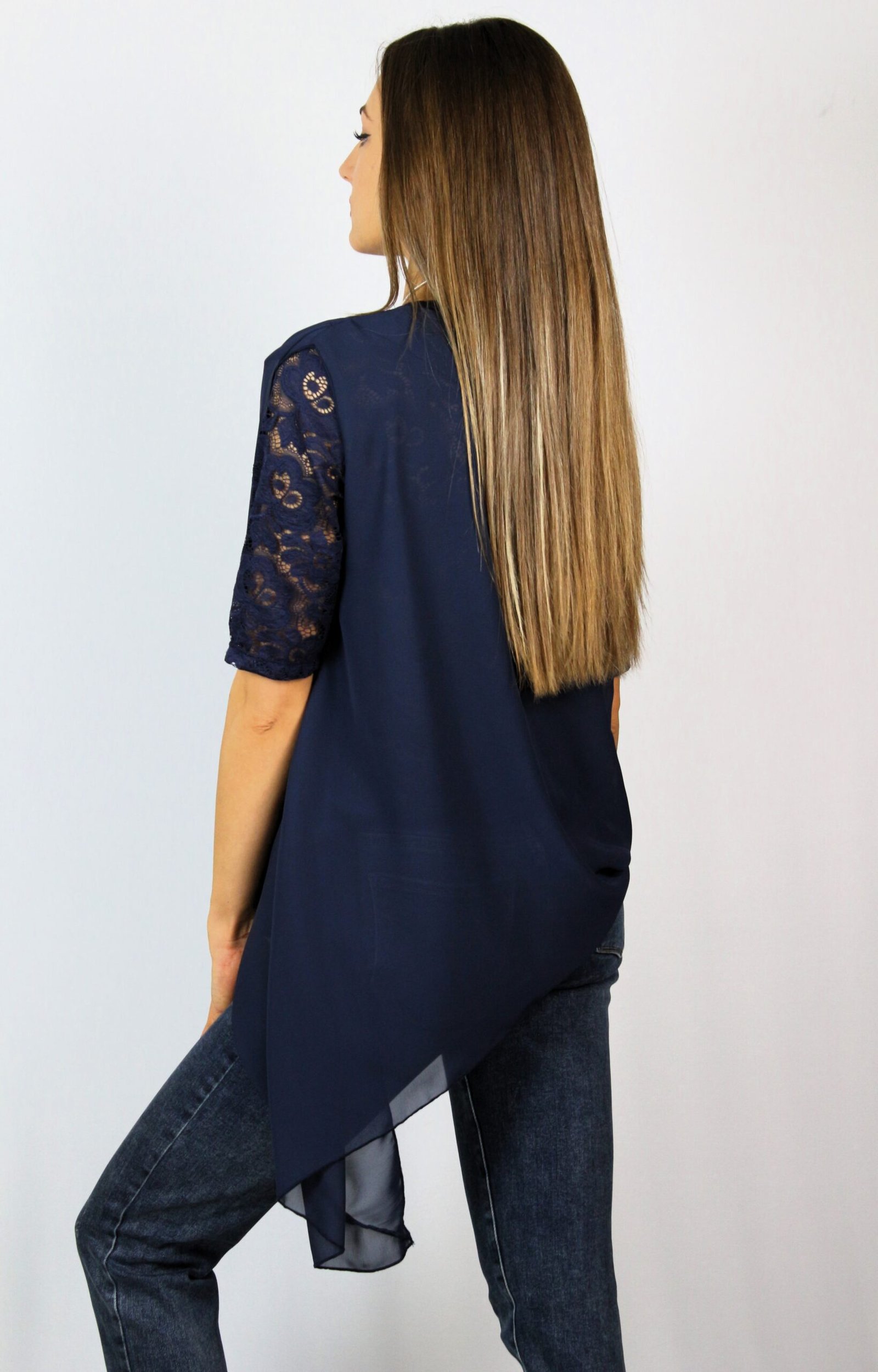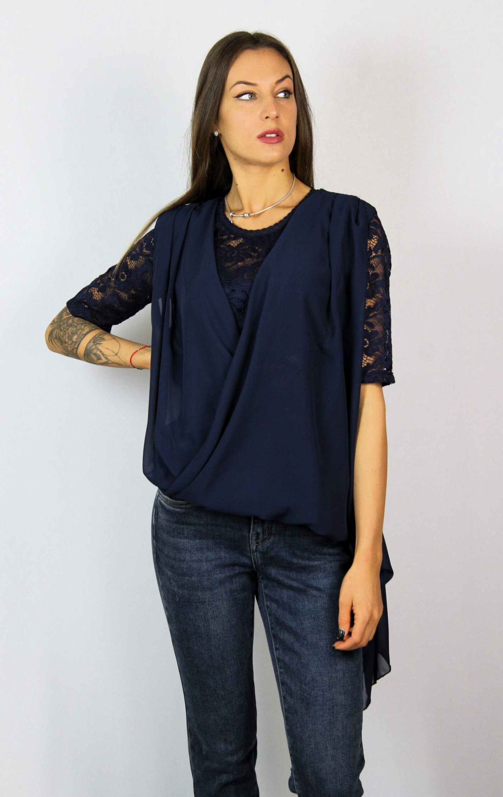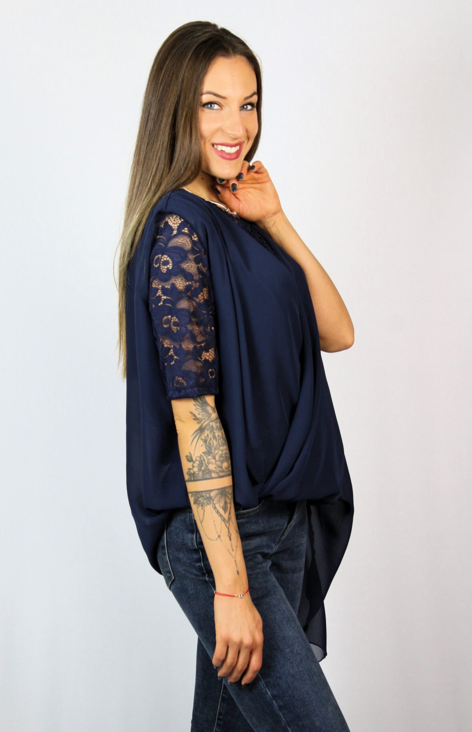 Туника шифон и дантела тъмносиня