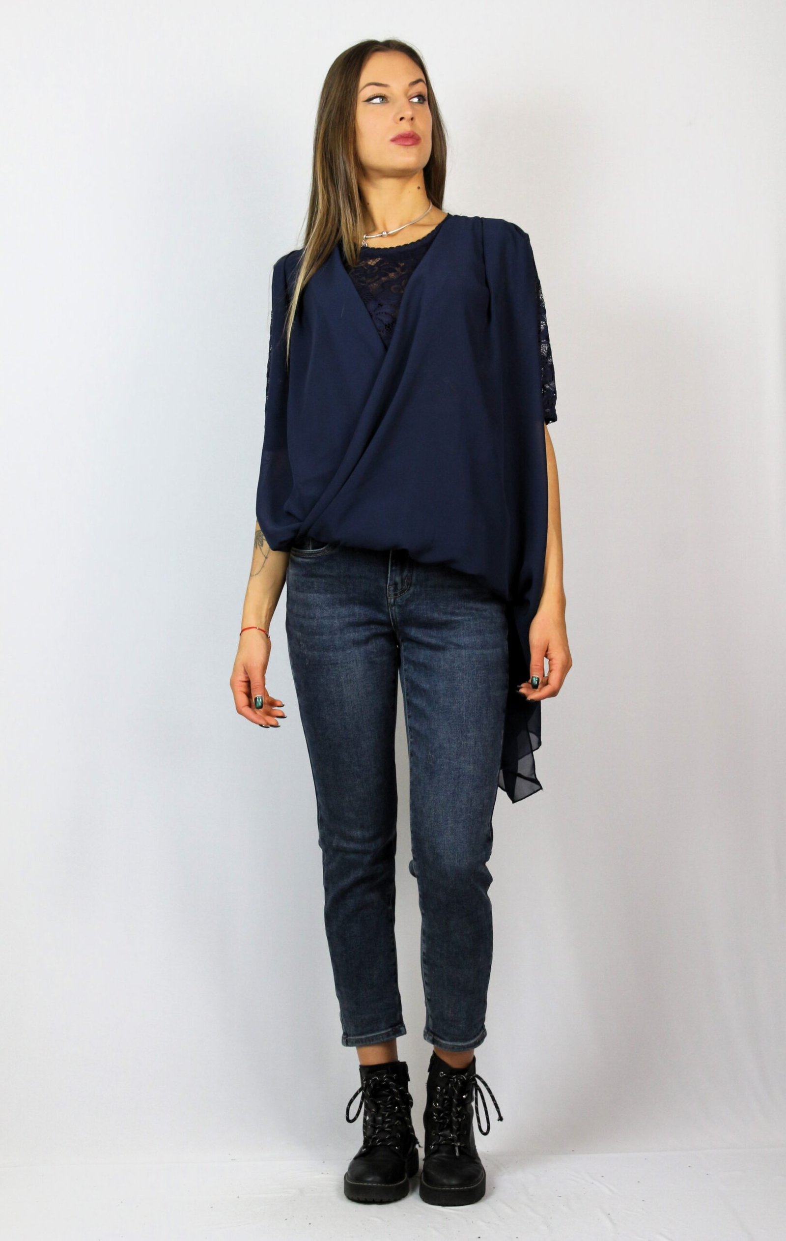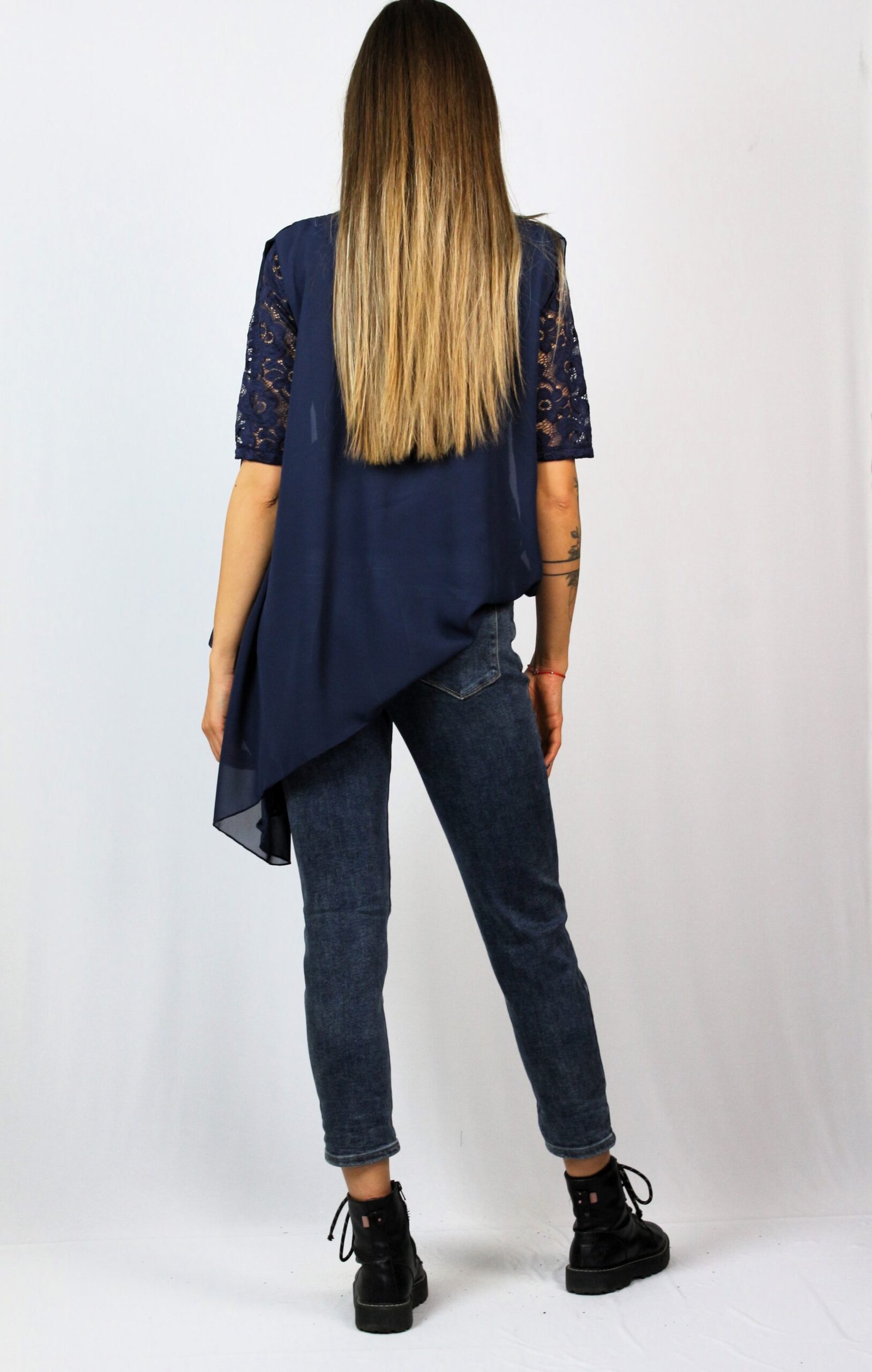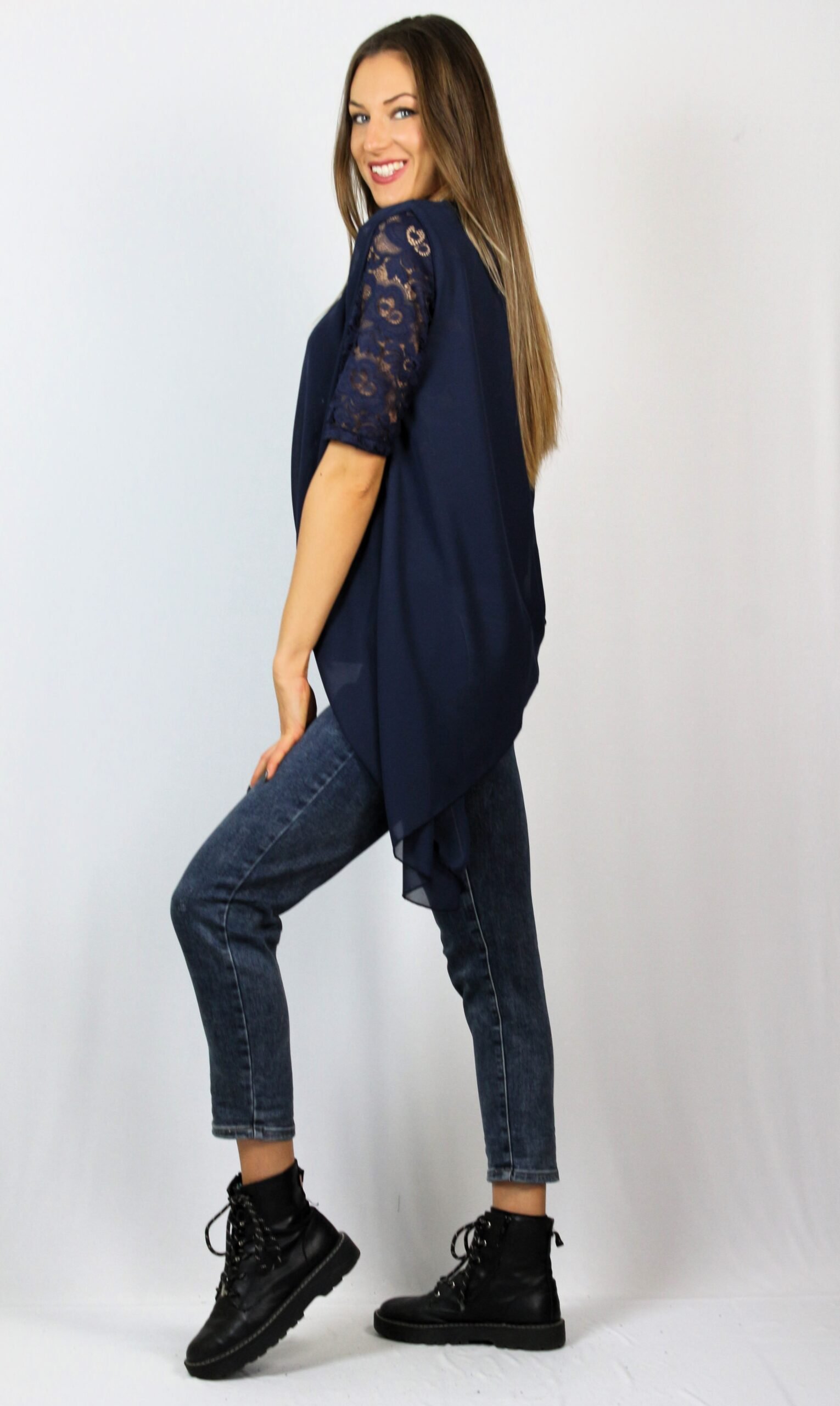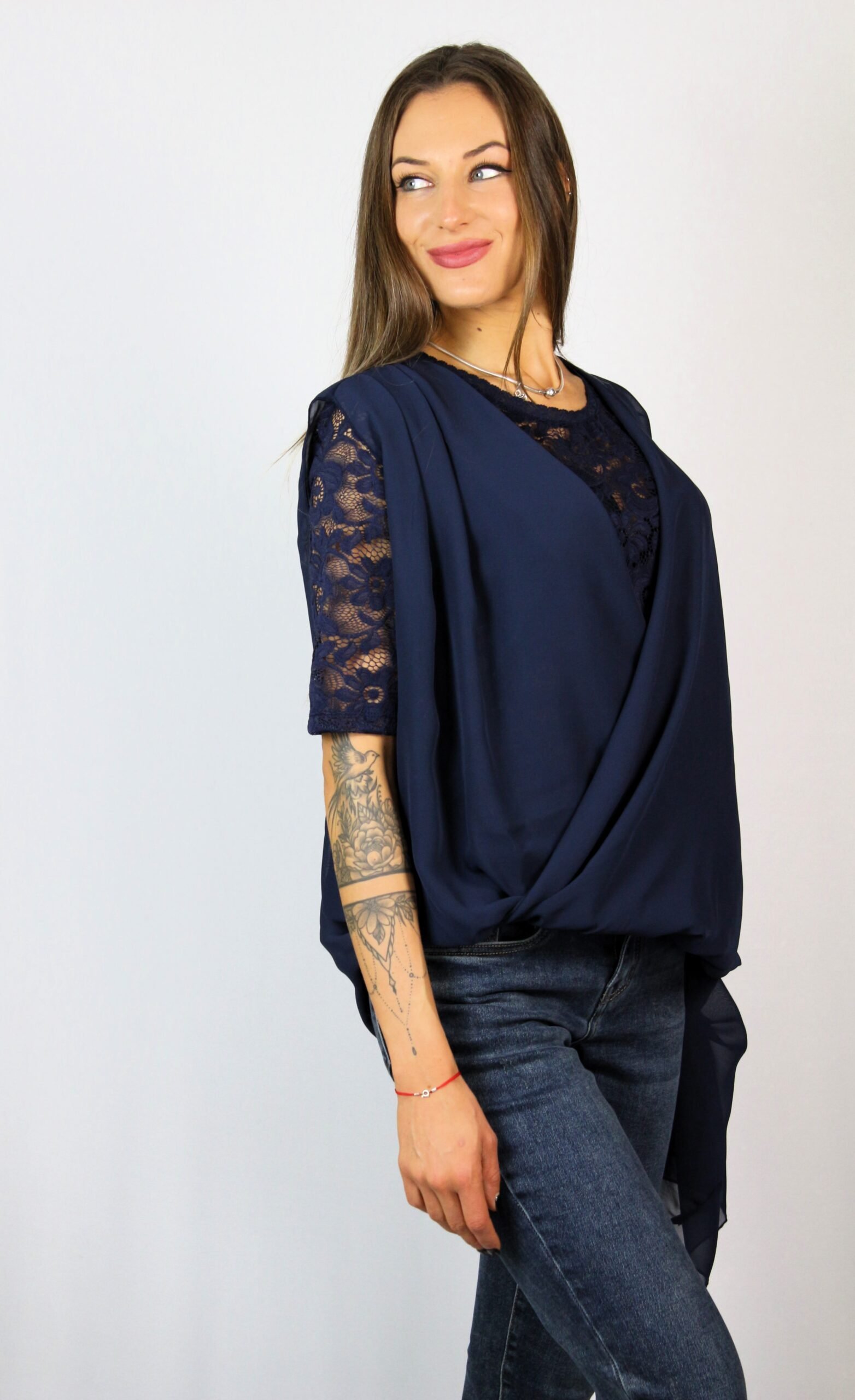 Туника шифон и дантела тъмносиня
