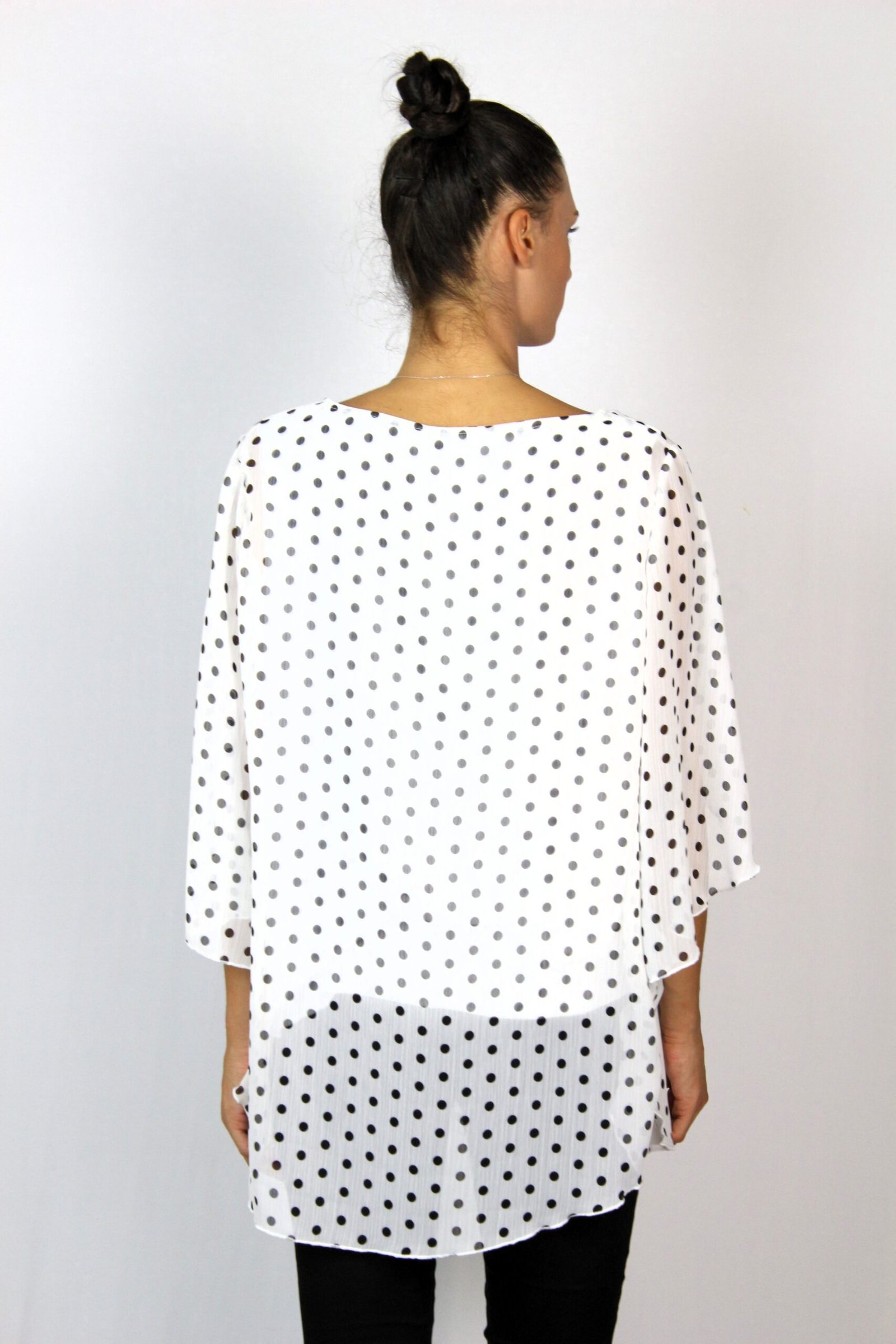Туника свободно падаща падолу с обло деколте и асиметричен ръкав. Има подплата.