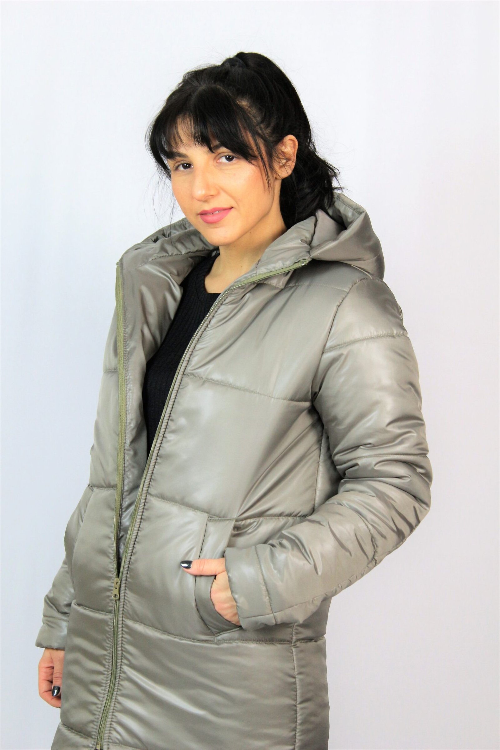Яке права кройка с два джоба , дълъг ръкав и качулка , която не се сваля. Тигелирано е с плътна силиконова вата , отвътре с хастар.